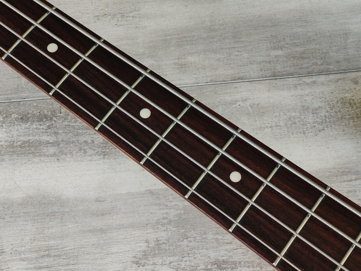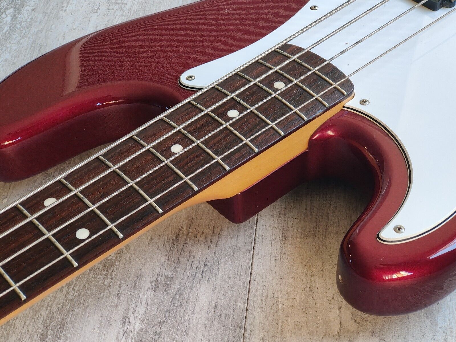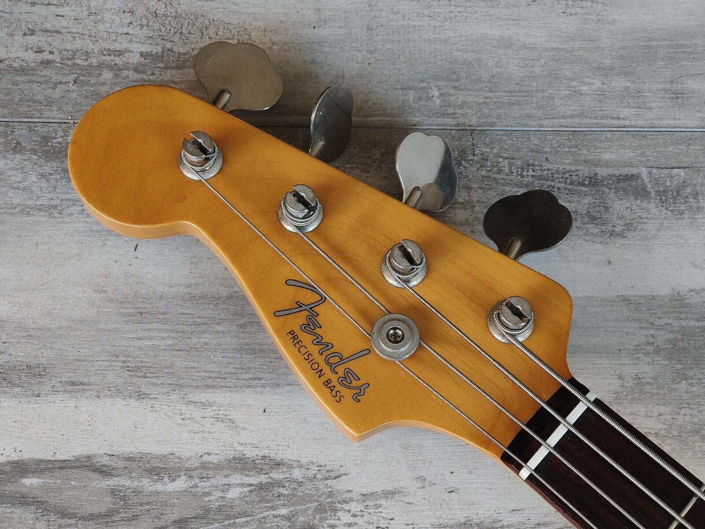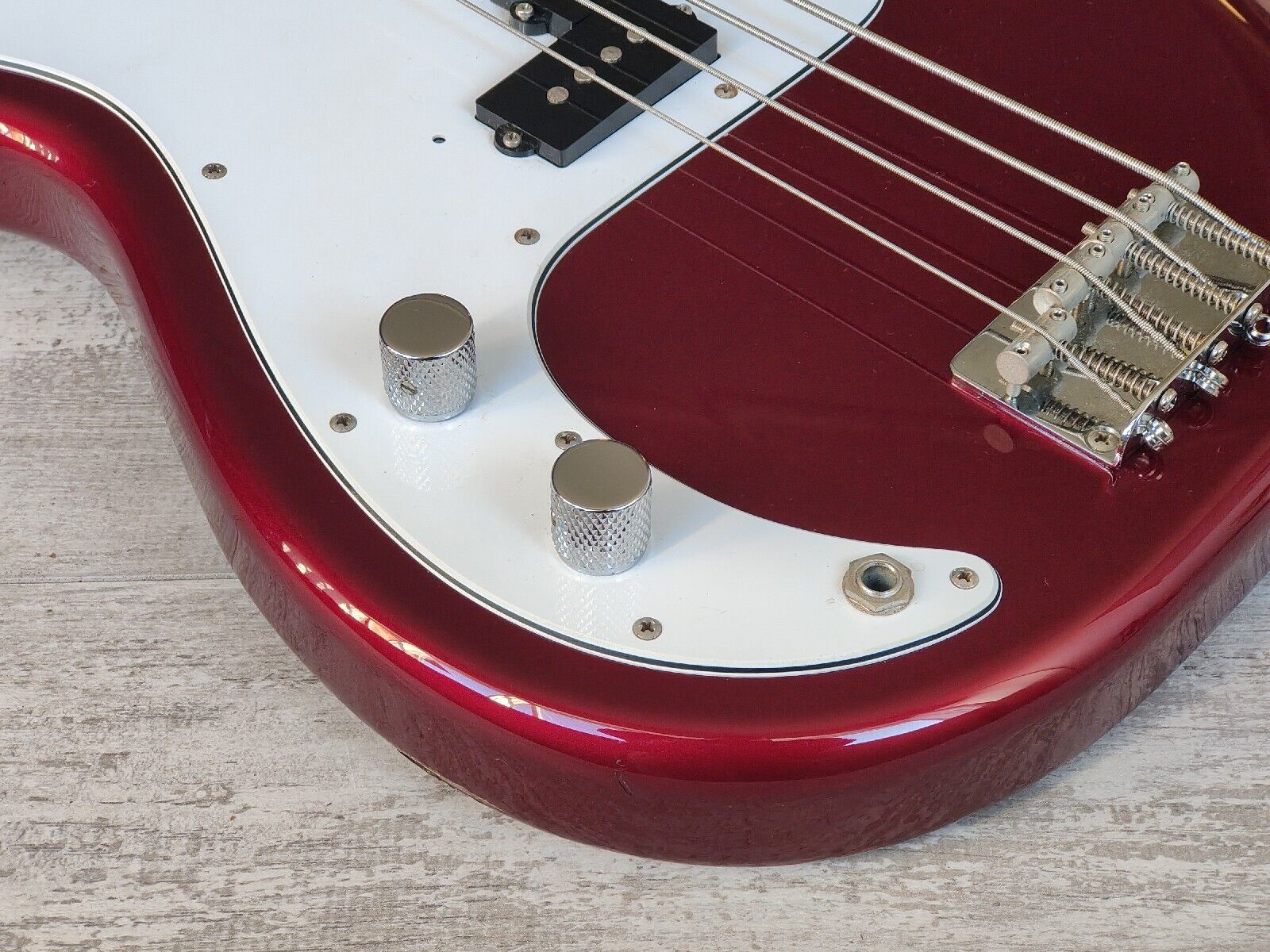 Made by the the Dyna Gakki factory in 2006, the PB62 is Fender Japan's reissue of the '62 model Precision Bass with a basswood body, maple neck and slab rosewood fingerboard (20 frets, 7.25" radius, 42mm nut width), it weighs 4kg's. Finished in a seldom seen "OCR" Old Candy Apple Red finish (even rarer as a Lefty!).