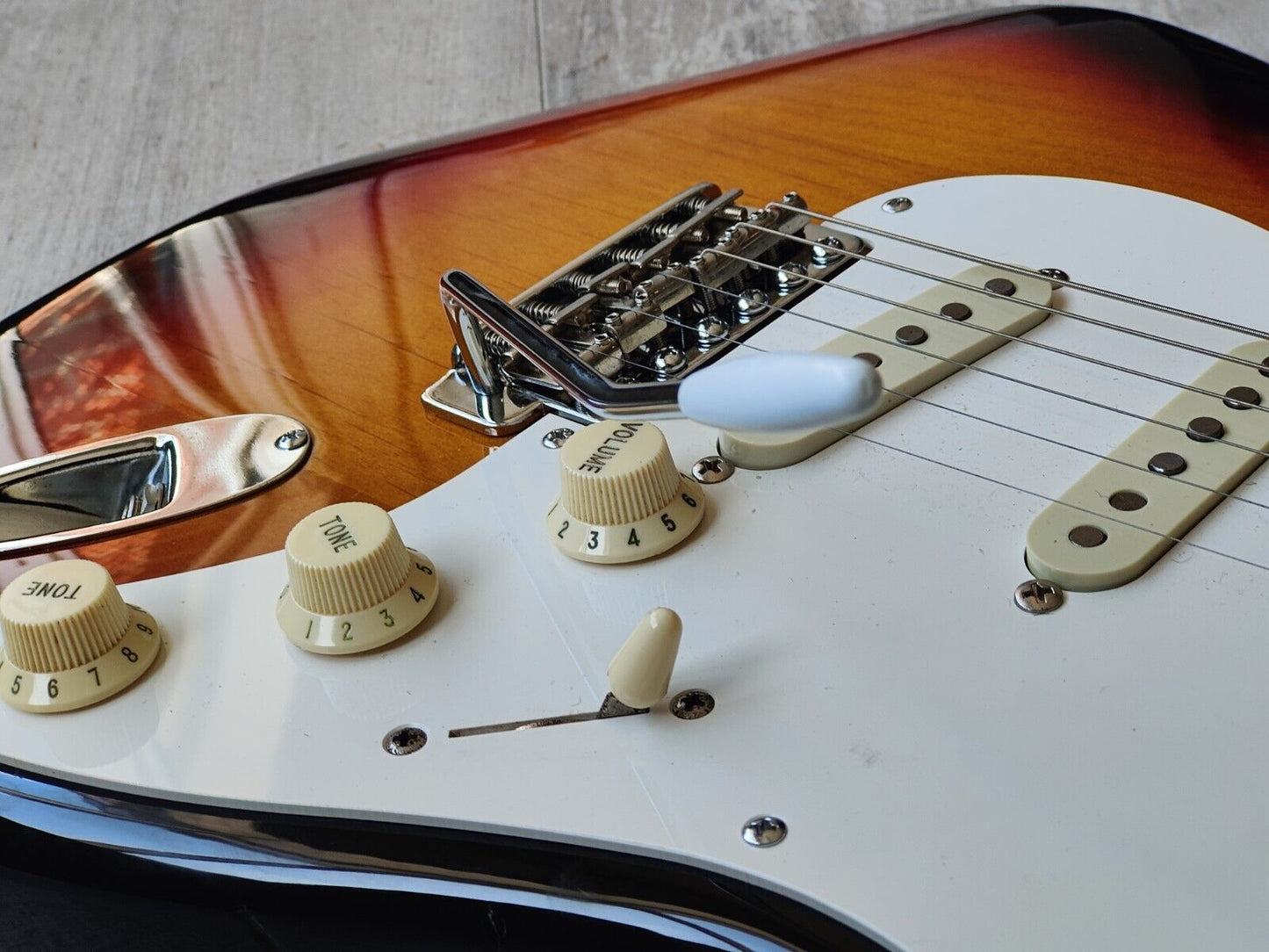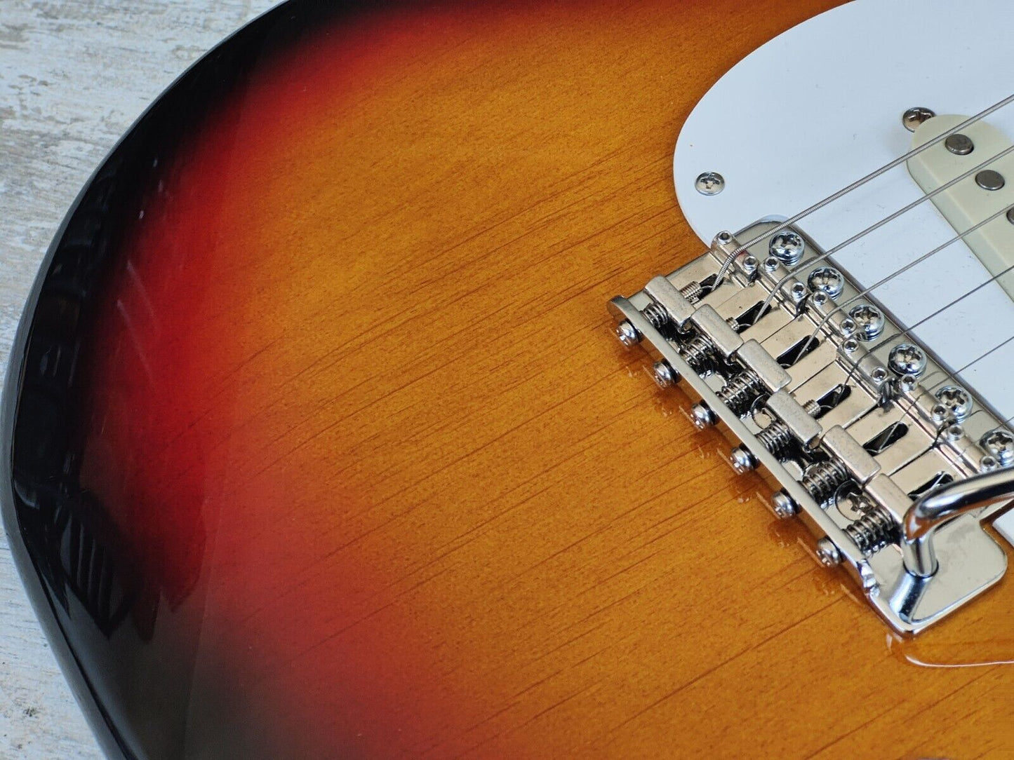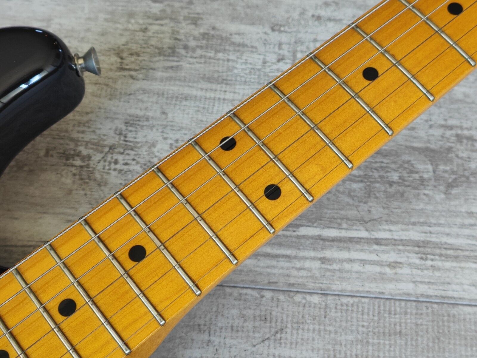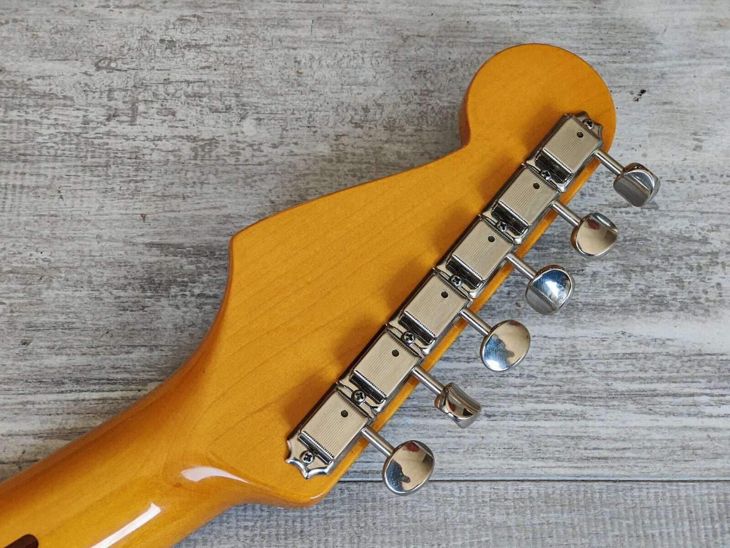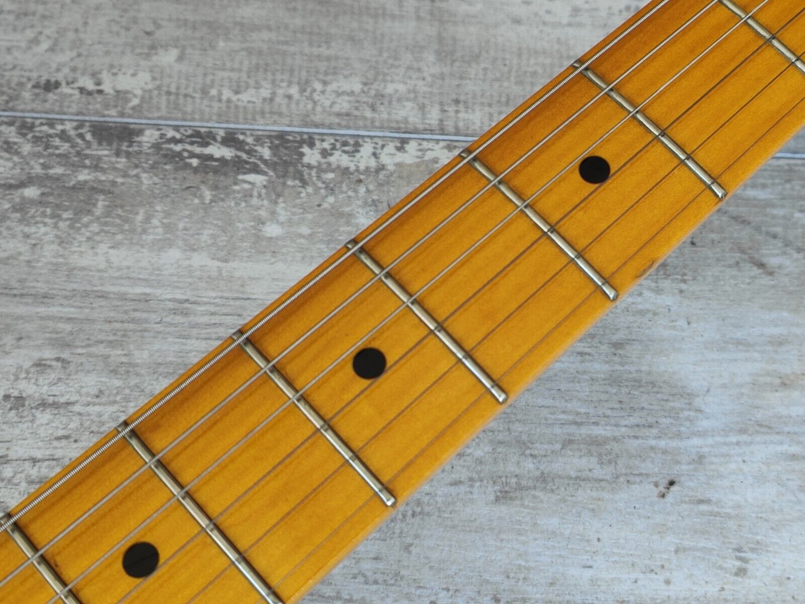 Made by the Tokai factory in 2006, the ST57-58US features a basswood body with a maple neck (slim C profile, 7.25" radius) and factory fitted Fender ST-Vintage USA alnico single coils, it weighs 3.6kg's.