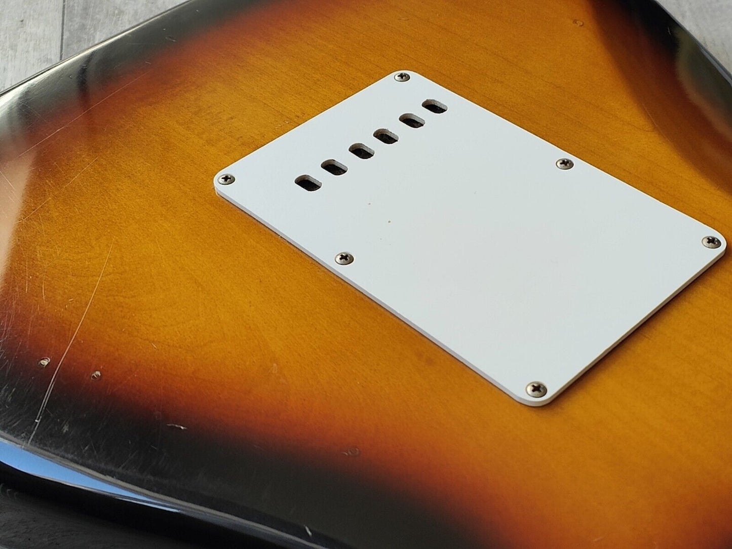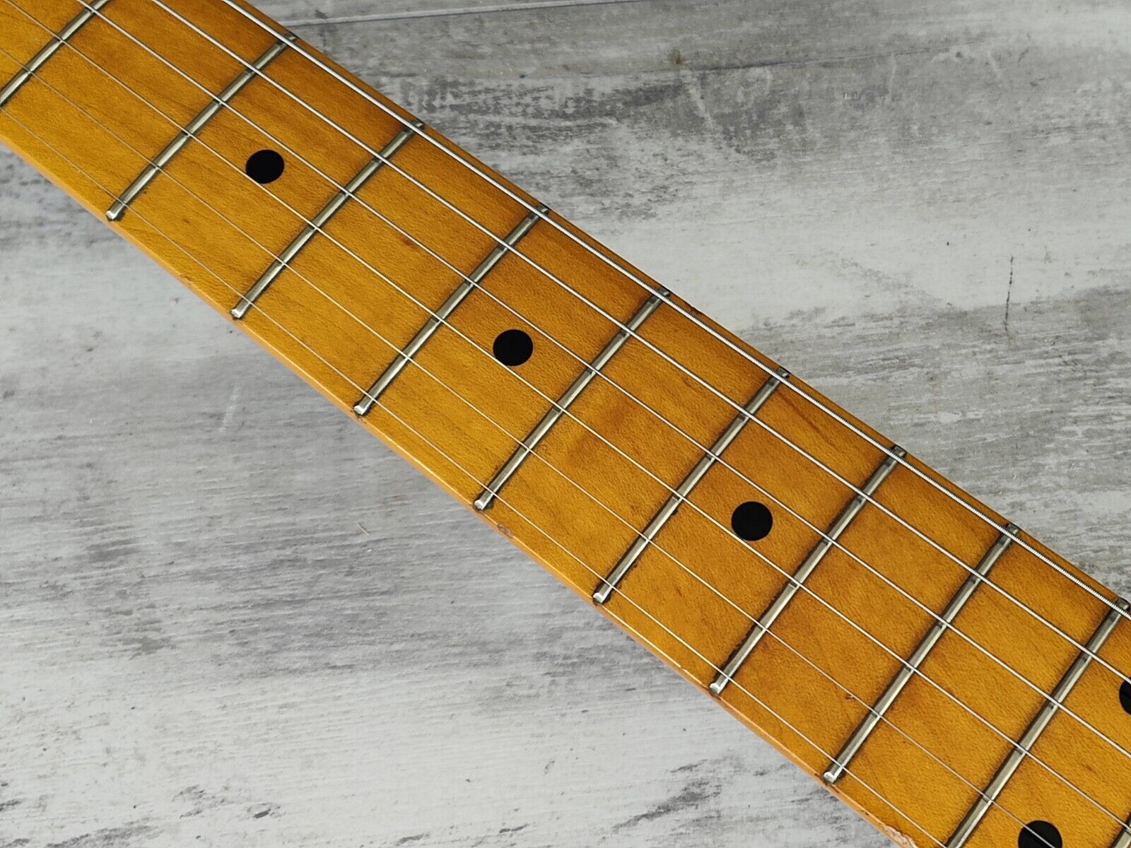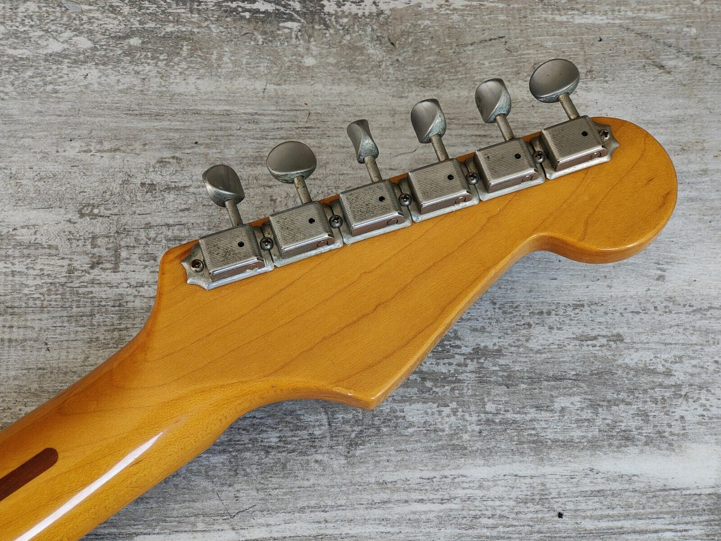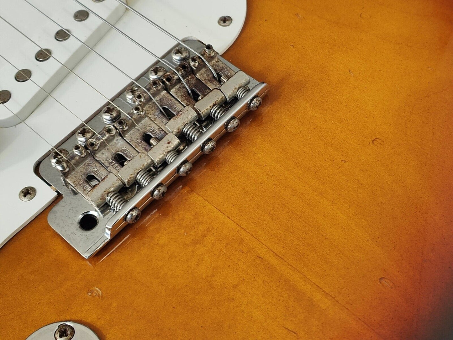 Made by the Tokai factory in the mid 2000's, the ST57-72L was one of Fender Japan's only Left Handed offerings. Basswood body with a sunburst finish bolted to a 21 fret maple neck (7.25" radius), Fender USA ST-VINTAGE factory pickups with a 5-way selector, vintage-style tuners and Fender stamped saddles, it weighs 3.8kg's.