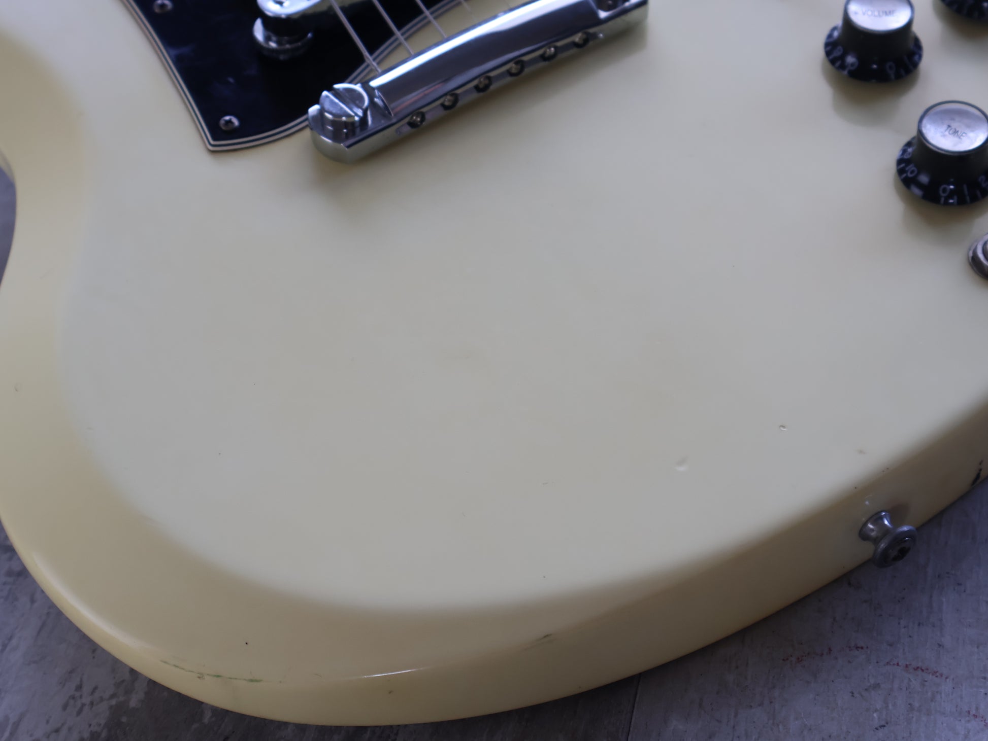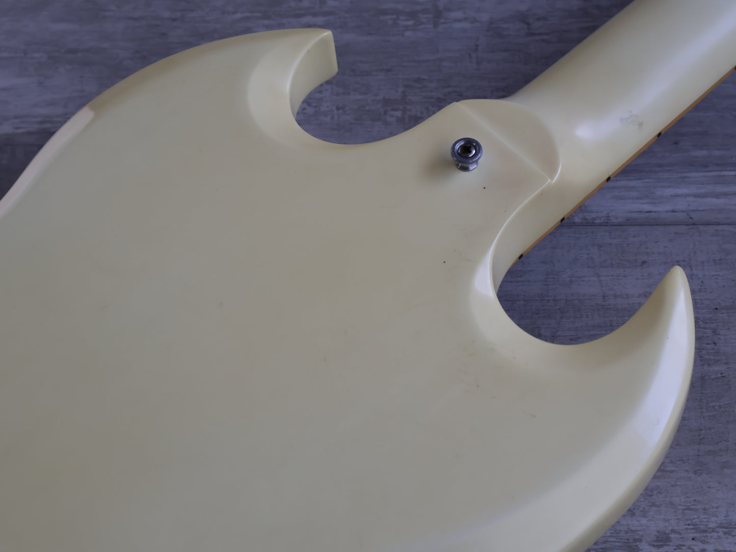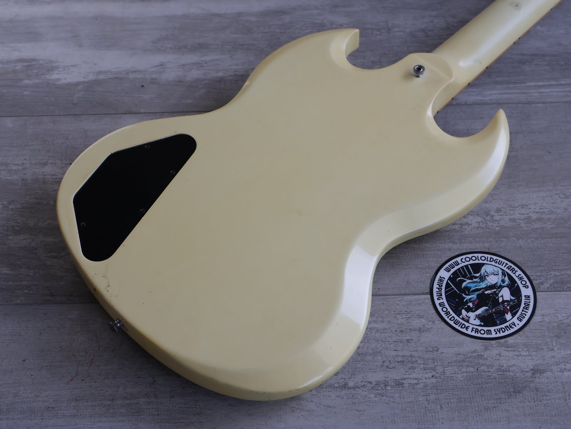Made in the USA in 2006, this is an SG Standard that was sold to the Japanese market in a non-catalog "Aspen White" finish. Good used condition as pictured with light signs of playwear and general use, restrung and recently serviced. There's a few dings on the back of the neck that a previous owner filled and sanded back so they're reasonably smooth and not overly noticeable when playing. Plenty of life in the frets with a straight neck and fully functional truss, no breaks or repairs to the headstock or neck joint. Weighs 3.2kg's.