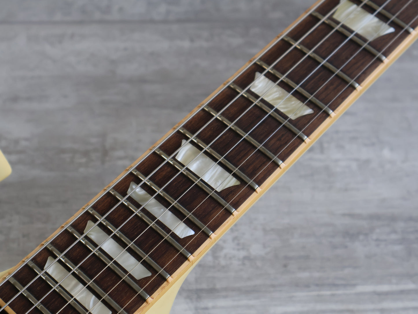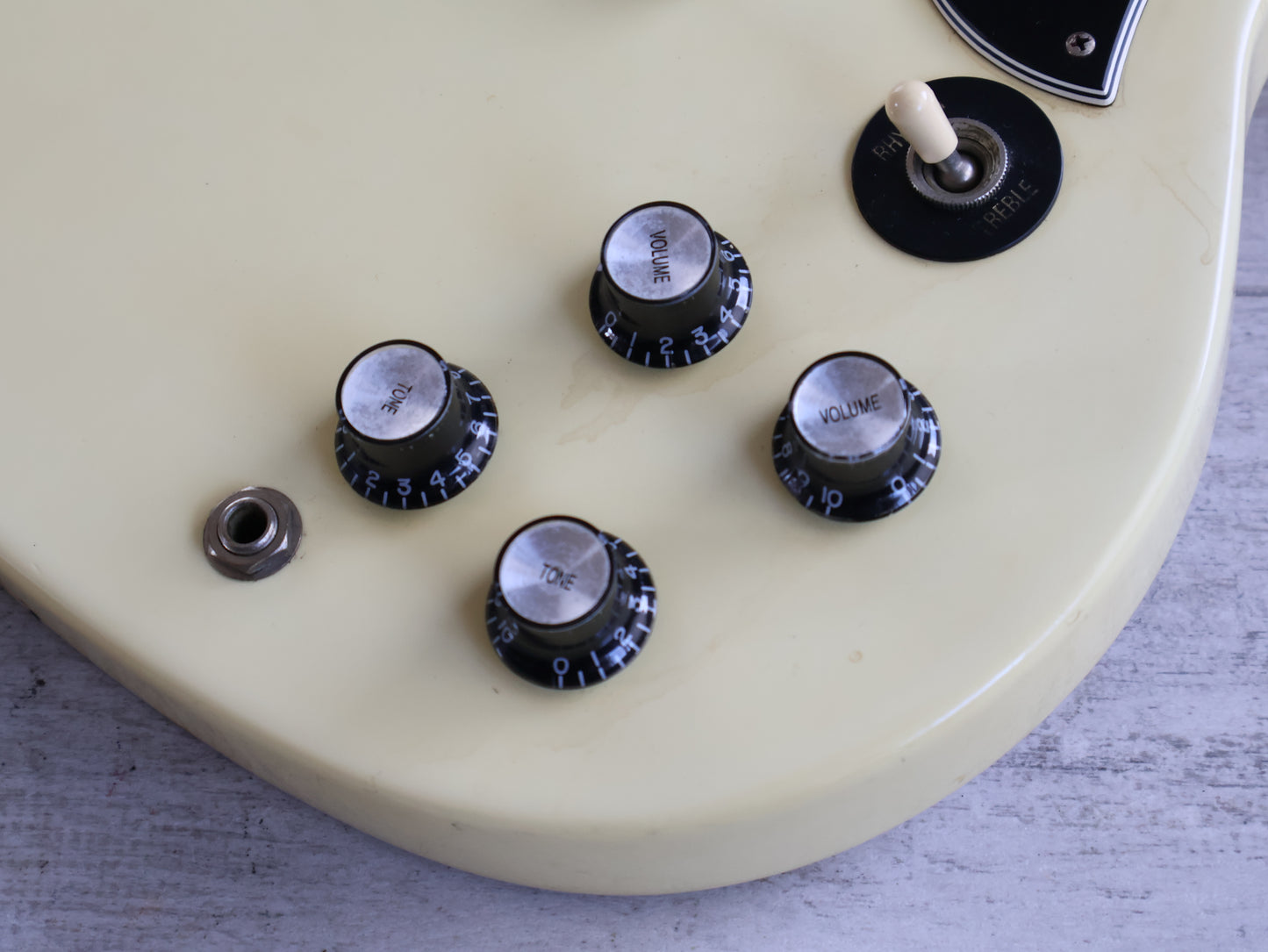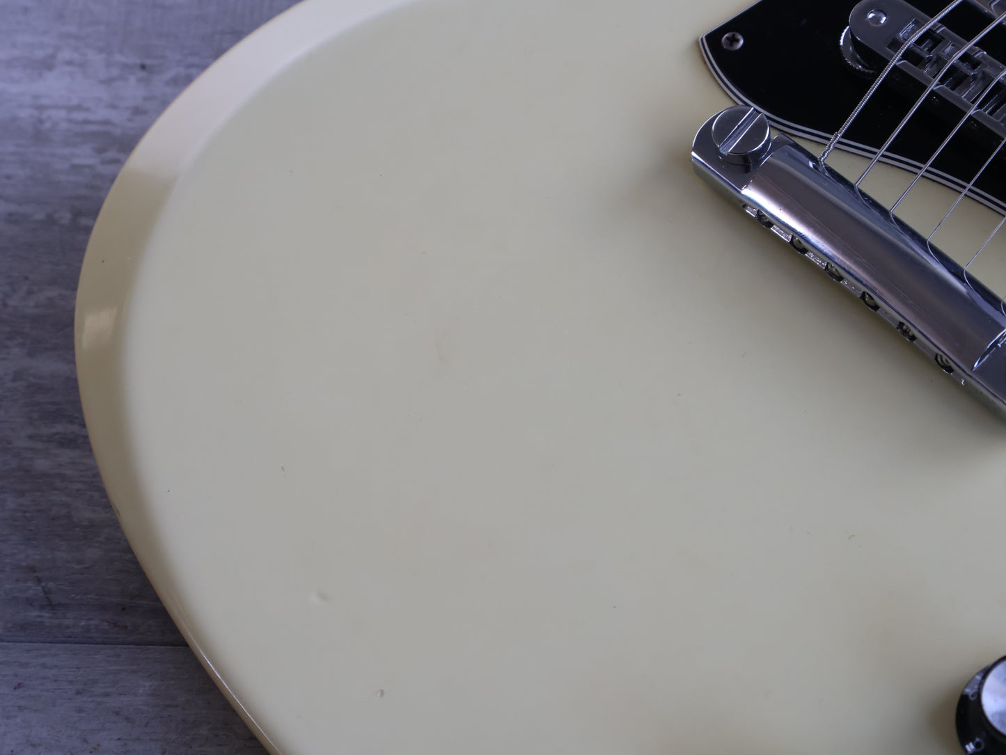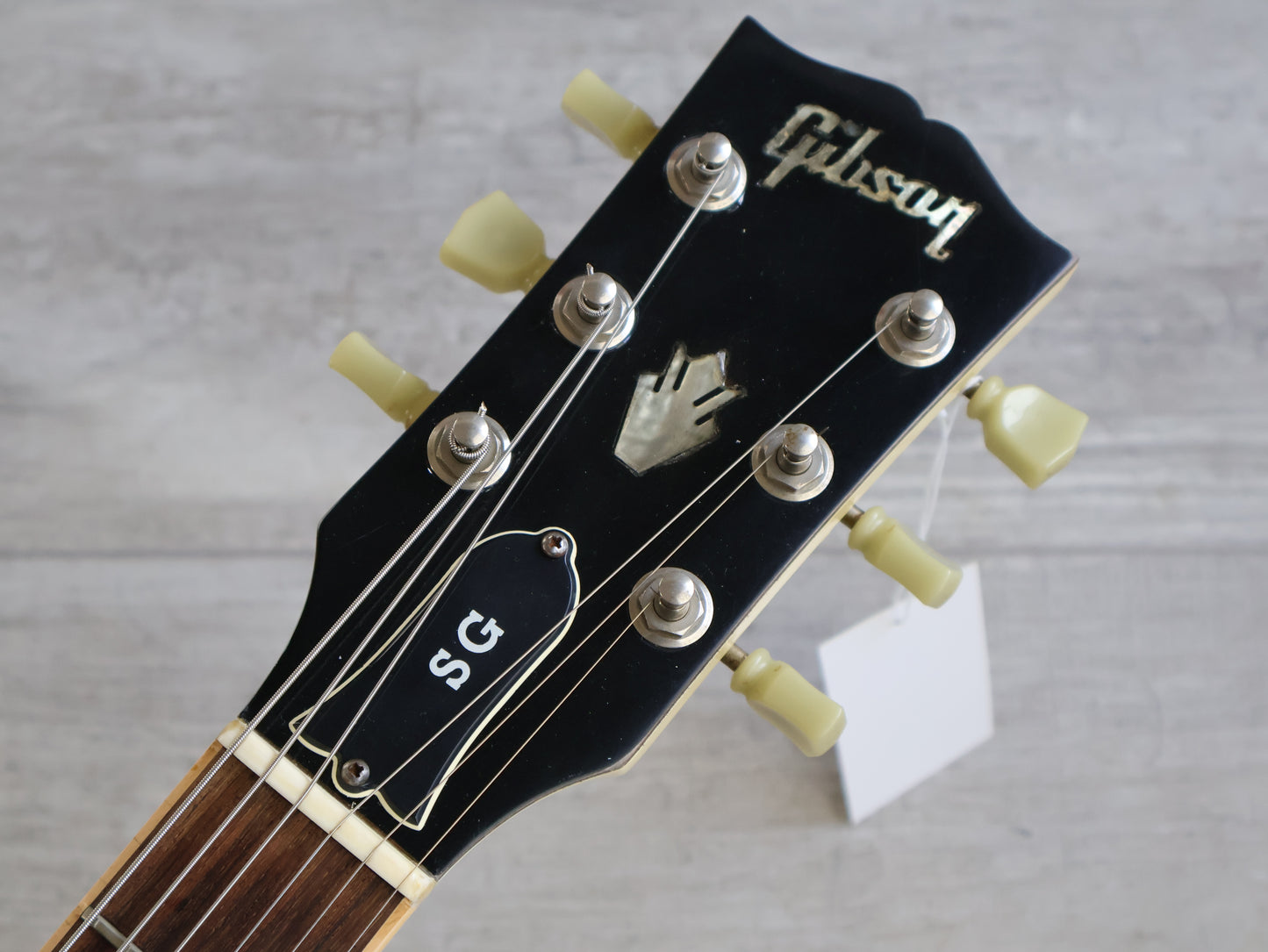 Made in the USA in 2006, this is an SG Standard that was sold to the Japanese market in a non-catalog "Aspen White" finish. Good used condition as pictured with light signs of playwear and general use, restrung and recently serviced. There's a few dings on the back of the neck that a previous owner filled and sanded back so they're reasonably smooth and not overly noticeable when playing. Plenty of life in the frets with a straight neck and fully functional truss, no breaks or repairs to the headstock or neck joint. Weighs 3.2kg's.