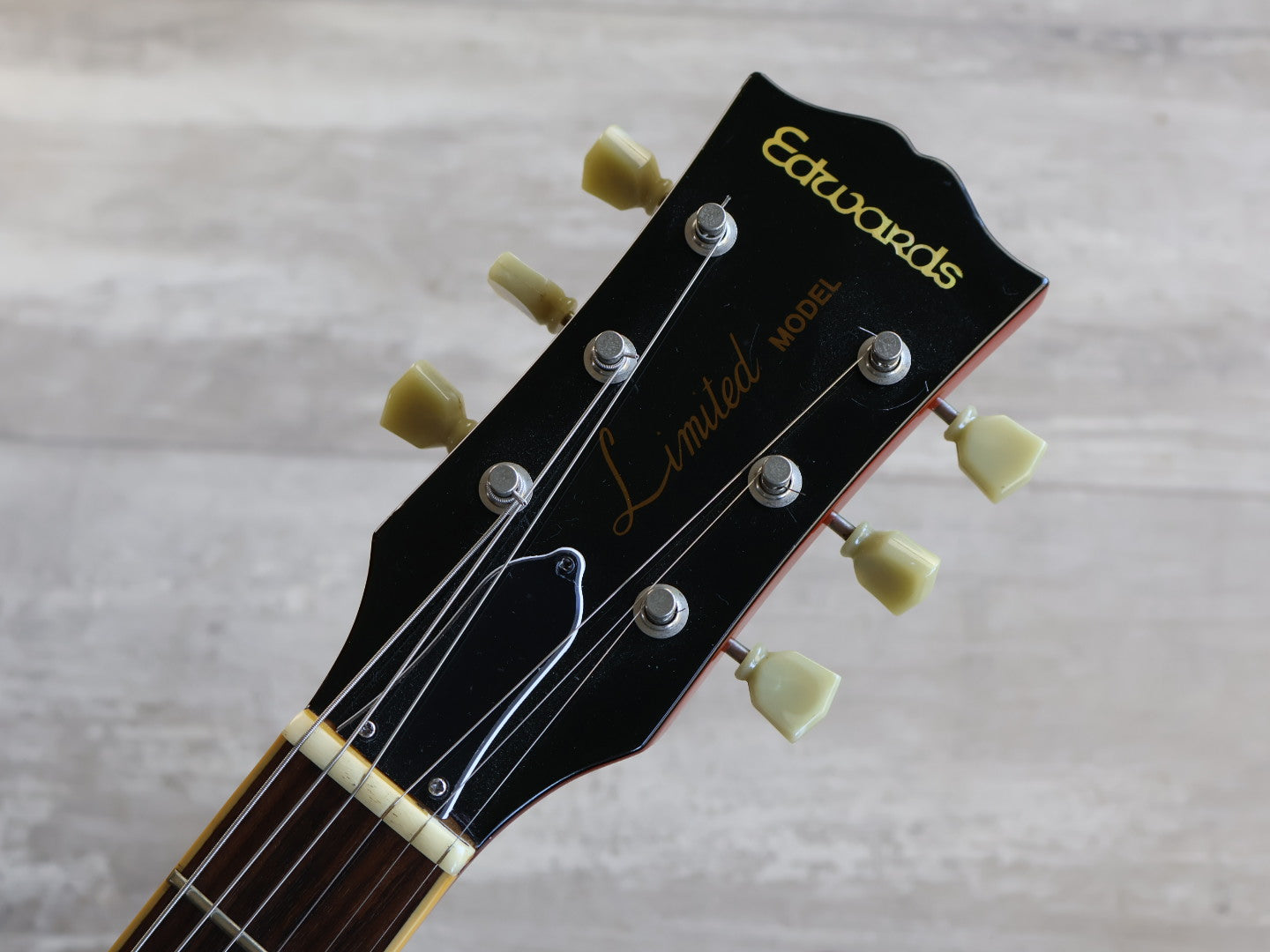 Wearing the famed Edwards LTS "Lacquer Taste" finish (essentially a thin nitro layer over a poly base coat for a smooth, satin feel), it's built with a mahogany body with a solid maple top (laminate flame), slim 60's mahogany neck with a rosewood fingerboard (43mm nut, 12" radius) and weighs 3.5kg's. Factory loaded with a pair of Seymour Duncan SH-1n/4 pickups (with the covers removed) and Gotoh hardware. Loaded with an aftermarket wiring harness as pictured with CTS pots and treble bleed.