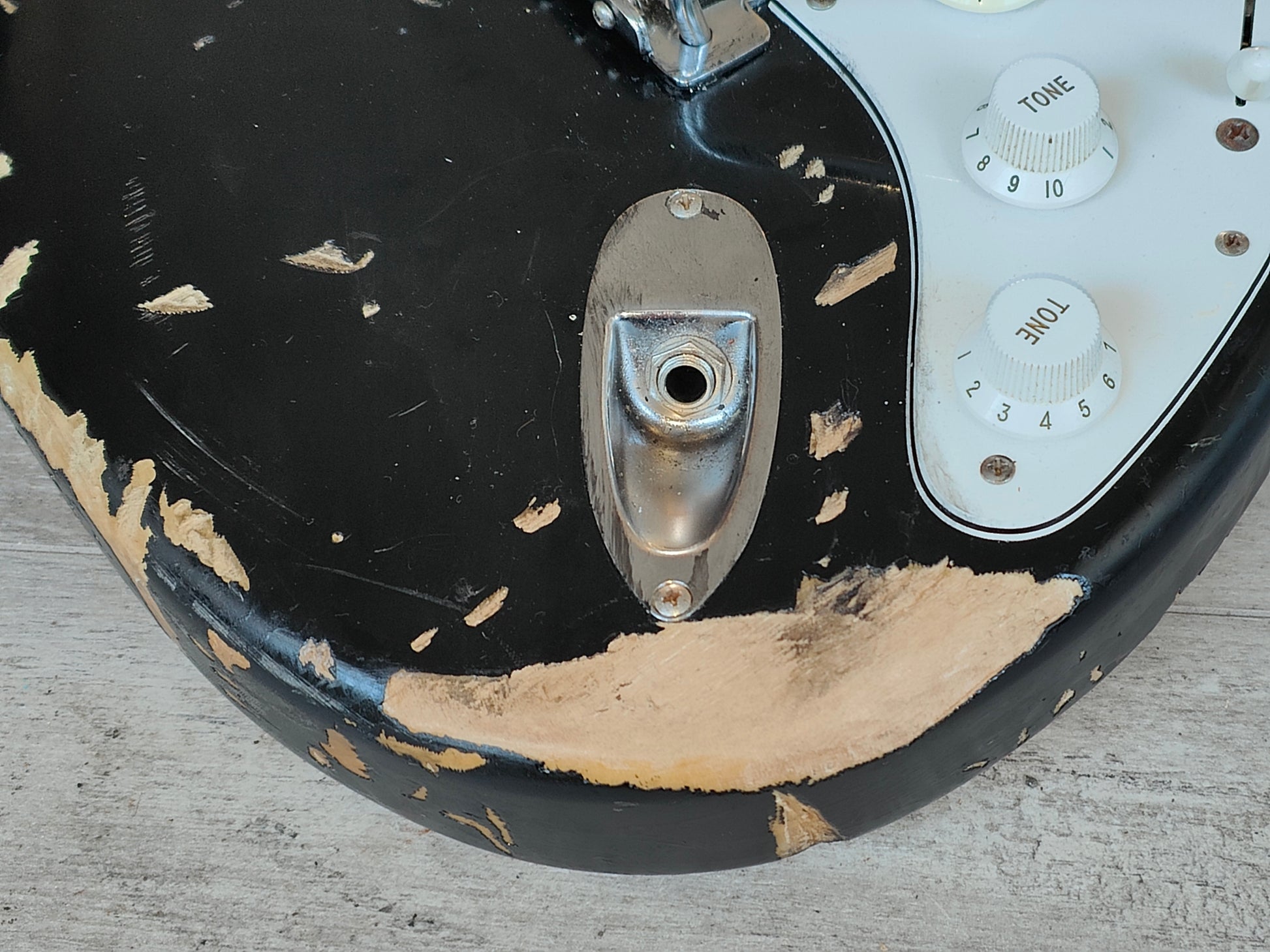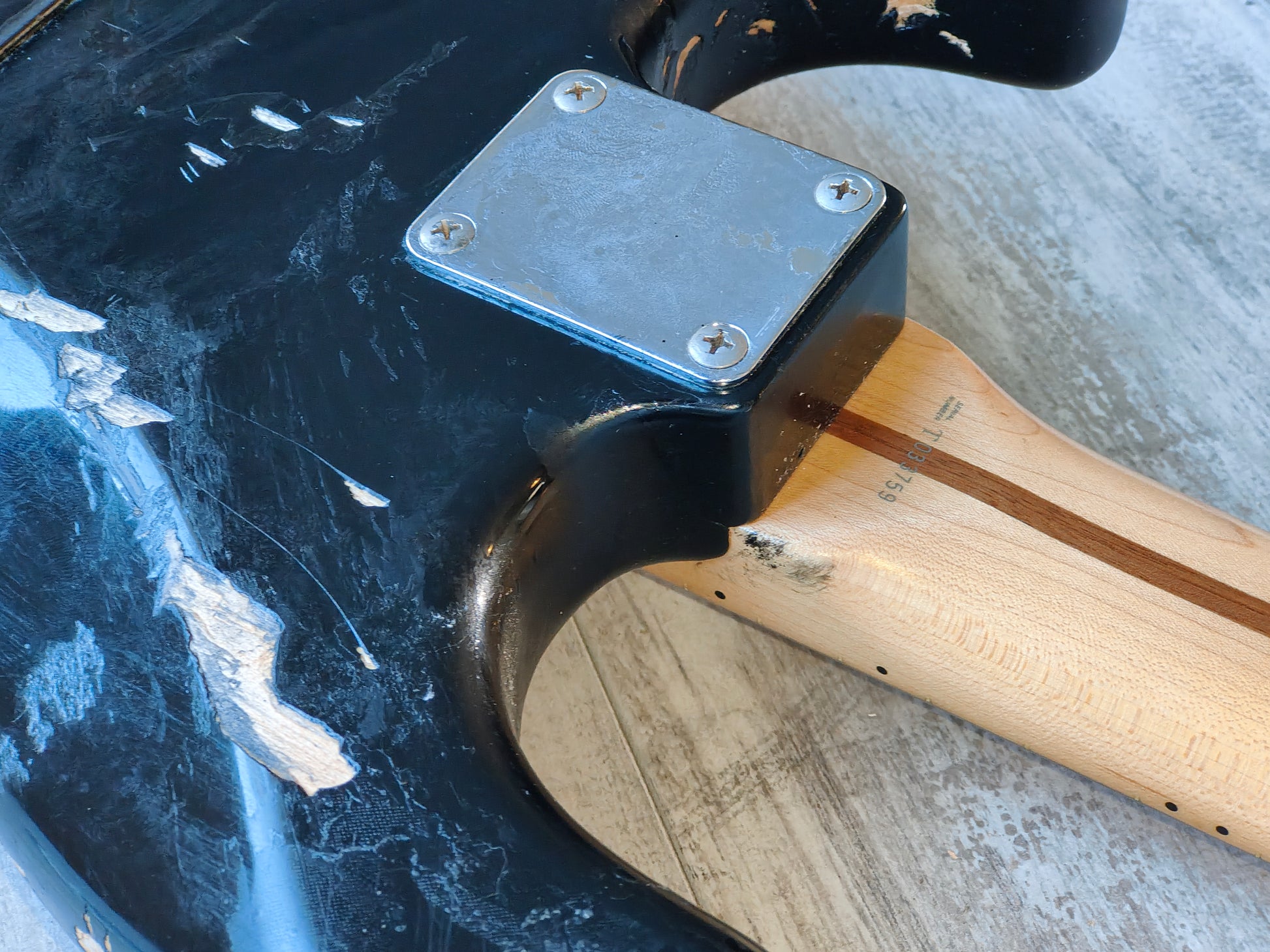 Heavily used/relic condition, the frets have some light wear but were polished prior to listing and play well, the truss was adjusted and the neck is straight. This one came to us with heavy strings on it and is tuned to D standard, contact us for a quote on setting it back up with a lighter gauge.