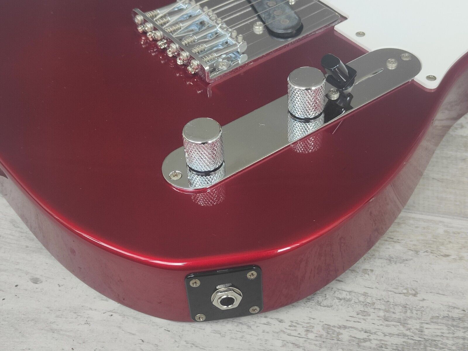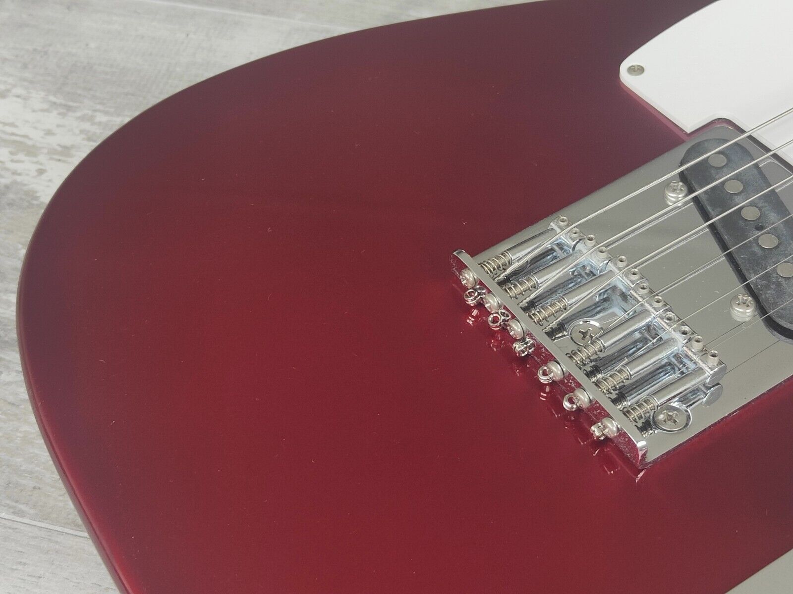 Made in 2007, this Fender TL-STD was the Japanese made version of a American Standard. 21 frets on a rosewood fingerboard with a satin maple neck with a basswood body that wears a Candy Apple Red finish, it weighs 3.4kg's. Fender Japan pickups with Gotoh tuners and a toploader bridge.