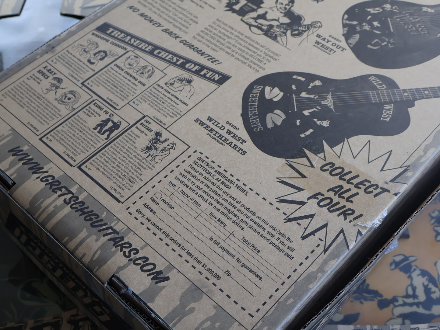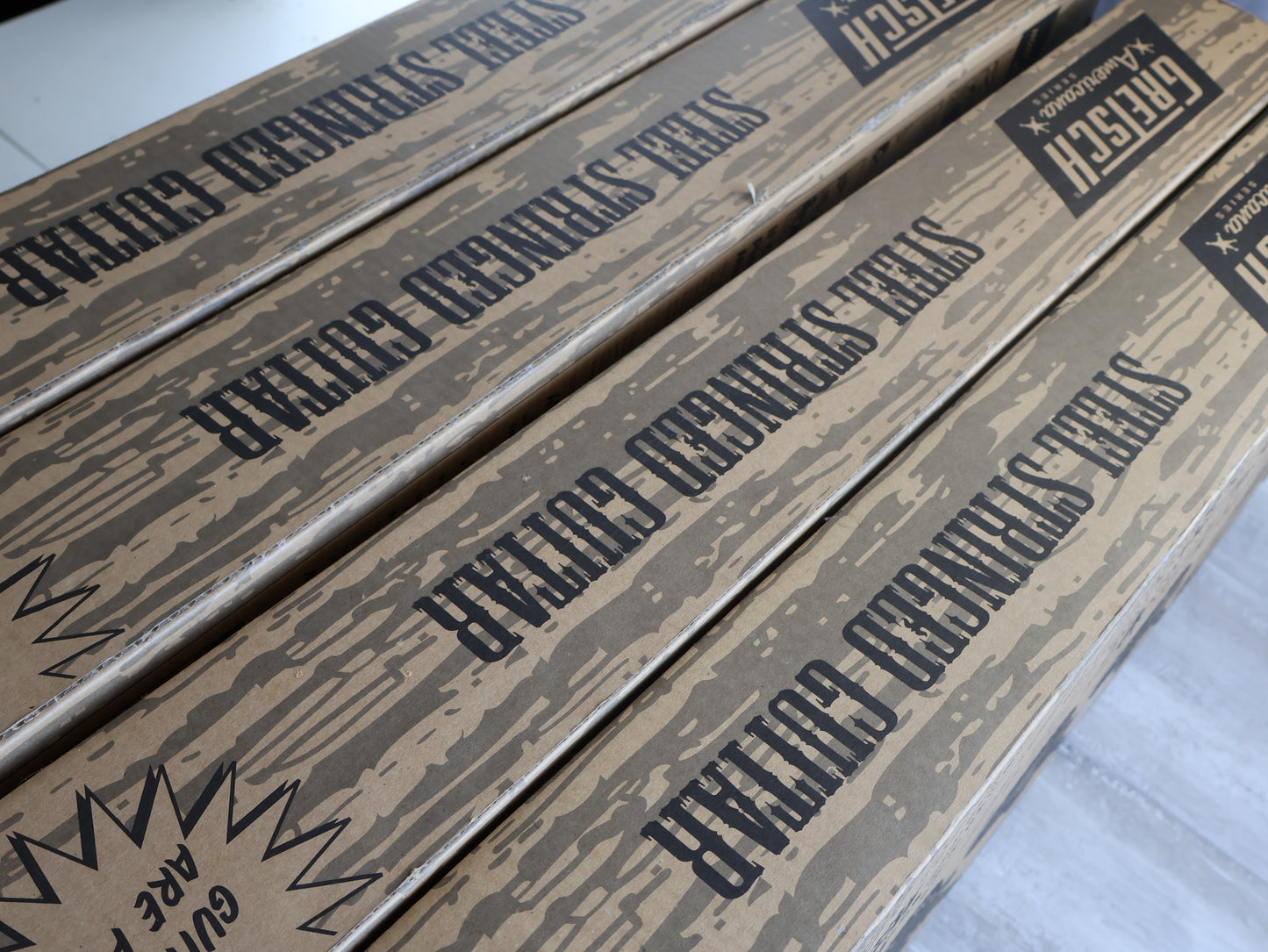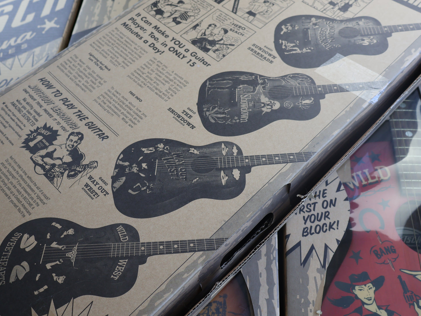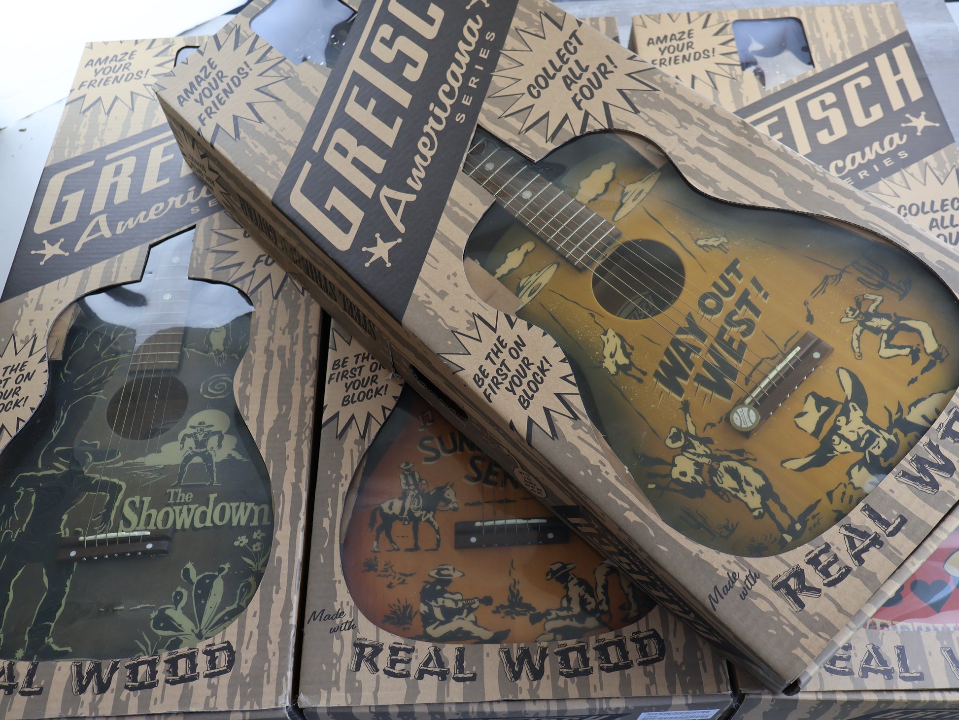 A very limited edition run of acoustics made by Gretsch in 2007, this is a complete set of Americana Series G4500's still in their original display boxes! Formerly owned by a recording studio and used for display purposes, the boxes show a little wear but the guitars themselves are virtually un-played and in great condition. An incredibly cool instant collection for any collector!
