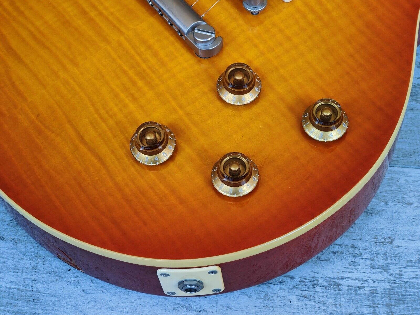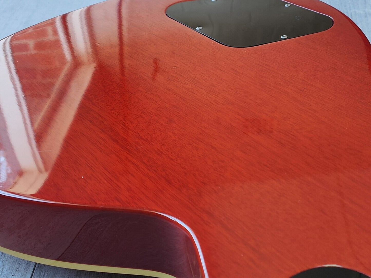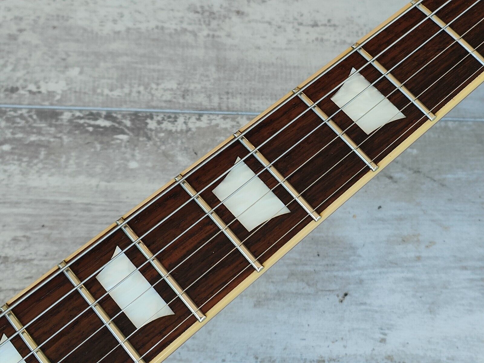 Made in Japan by Edwards in 2008, the E-LP-85SD is a super classy Les Paul from the more modern era of Japanese guitars. The 85SD model wears a poly Cherry Sunburst finish (with no pickguard) on a mahogany body with a laminate maple flame top, a slim 60's style mahogany neck with a rosewood fingerboard (43mm nut, 12" radius), it weighs 3.5kg's. Factory loaded with a pair of Seymour Duncan SH-1n/4 pickups and Gotoh hardware.