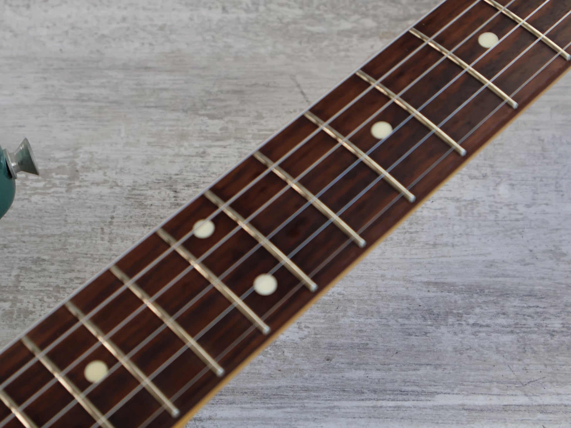 Japanese made in 2008, this is a modern '62 reissue Stratocaster from Fender that's factory loaded with Texas Special USA pickups. Alder body with a vibrant Ocean Turquoise Metallic finish, slim C maple neck with a 21 fret rosewood fingerboard (7.25" radius), it weighs 3.8kg's.