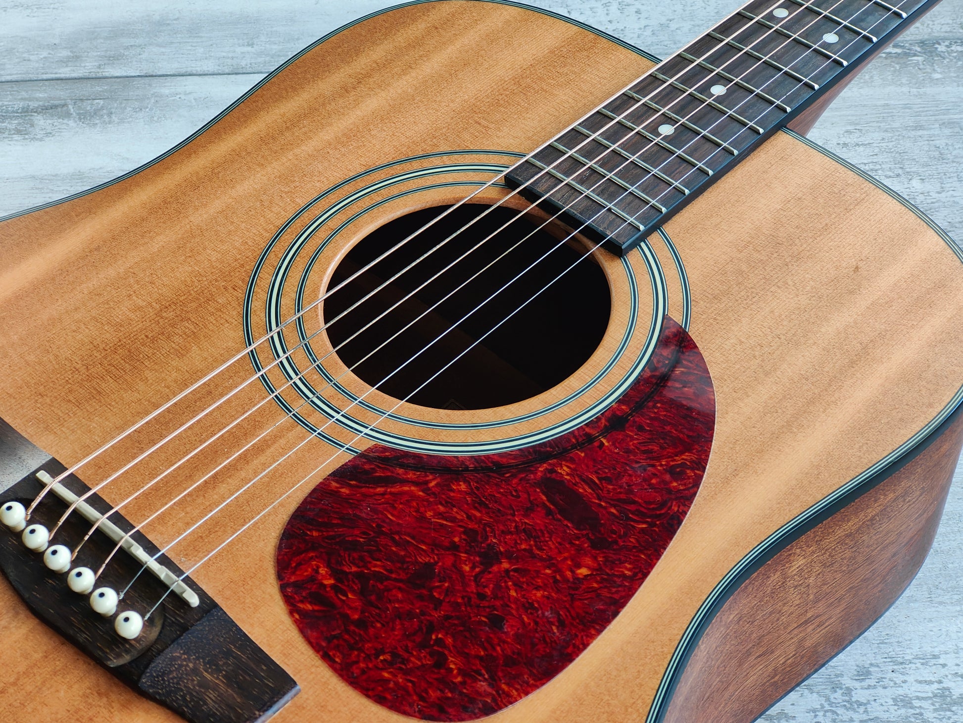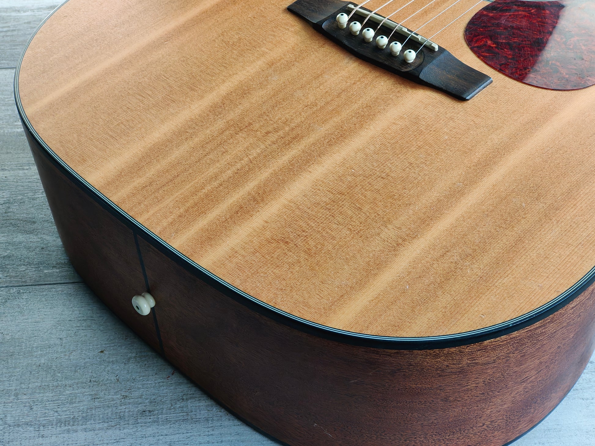 As Cort’s homage to the great vintage acoustic guitars, the Earth Series represents the look, sound, feel and playability of those fine instruments with uncompromising quality and excellent value. The Earth60 features the golden standard of acoustic guitars: Solid spruce top. Together with mahogany back and sides, this wood combination delivers the time-tested, signature bright yet full sounding tone that players all around love and desire, while the full-sized dreadnought body offers full body output and plenty of projection.