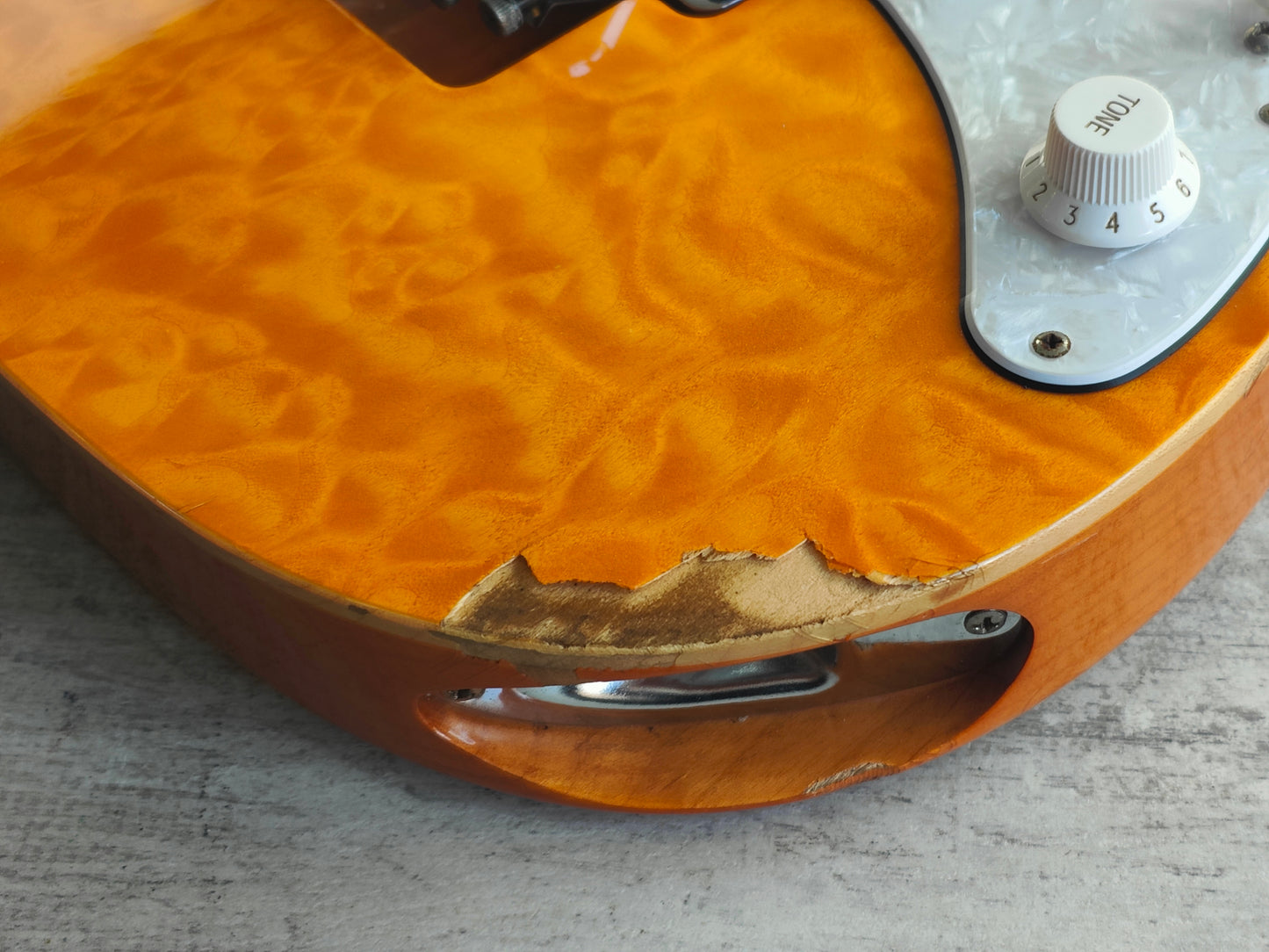 Good used condition with a few notable dings as pictured. One strap button has been moved. It's a players grade guitar with a straight neck, shiny frets and a smooth low action.