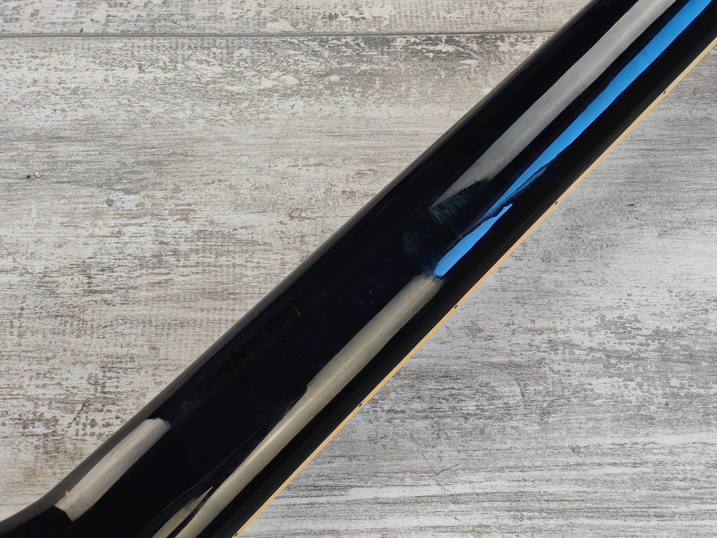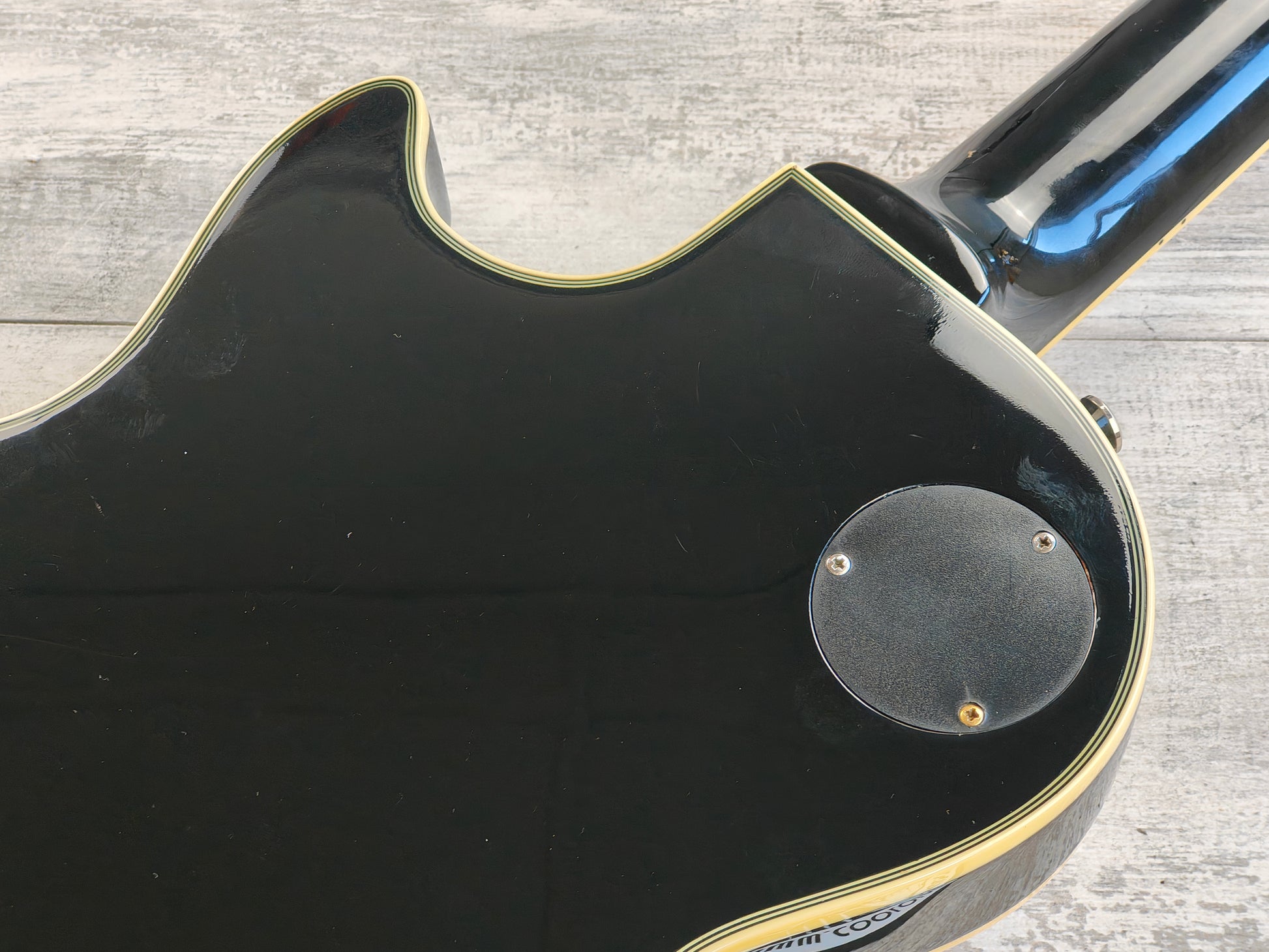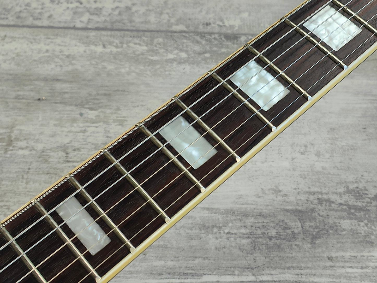 Chinese made in 2009 by the Qingdao factory, (an exclusively Epiphone factory that's considered a notch above most), this is your classic Les Paul Custom with a mahogany body, 60's profile neck and a classic rosewood fingerboard with block inlays, weighs 4.1kg's. Looks to be all original with Grover tuners and three Epiphone branded pickups.