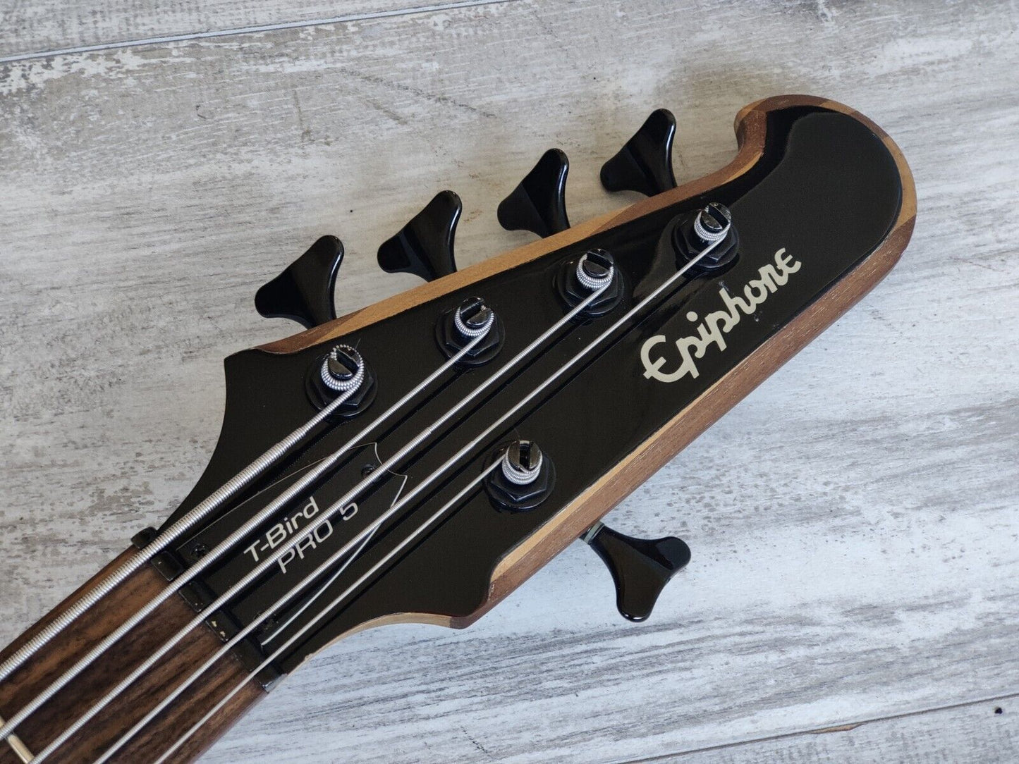 The Epiphone Thunderbird Pro V 5-String Electric Bass builds on the illustrious history of the Thunderbird Bass. This new take on the distinctively shaped rock and roll bass combines traditional design elements with new technology at a price any bassist can afford.