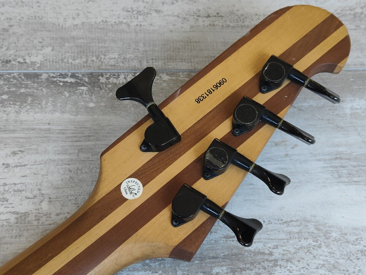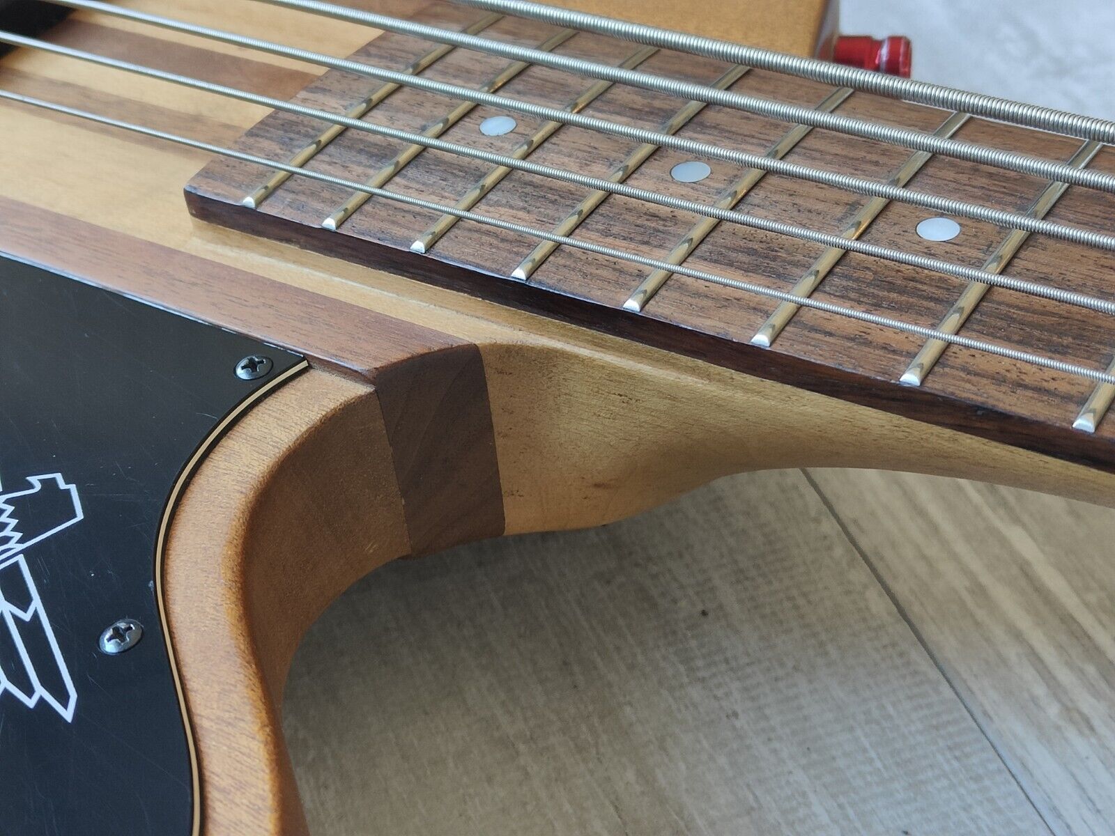 Good used condition as pictured standard signs of cosmetic wear and tear, given a full professional setup/service prior to listing. Frets are shiny and the truss adjusts as it should, the neck is straight and plays nicely. Had the 9v preamp removed before it arrived with us so it's now a passive bass. Weighs 4.3kg's.