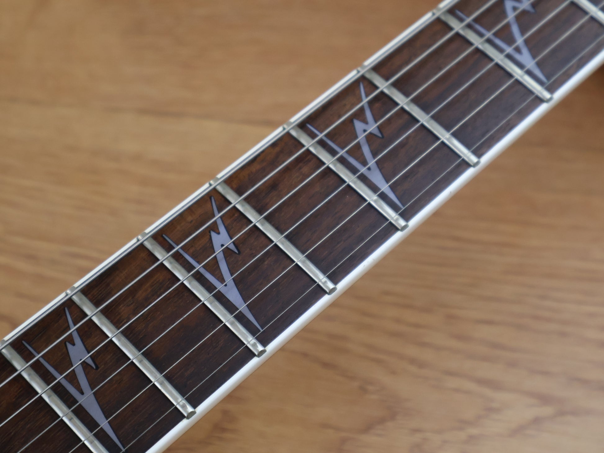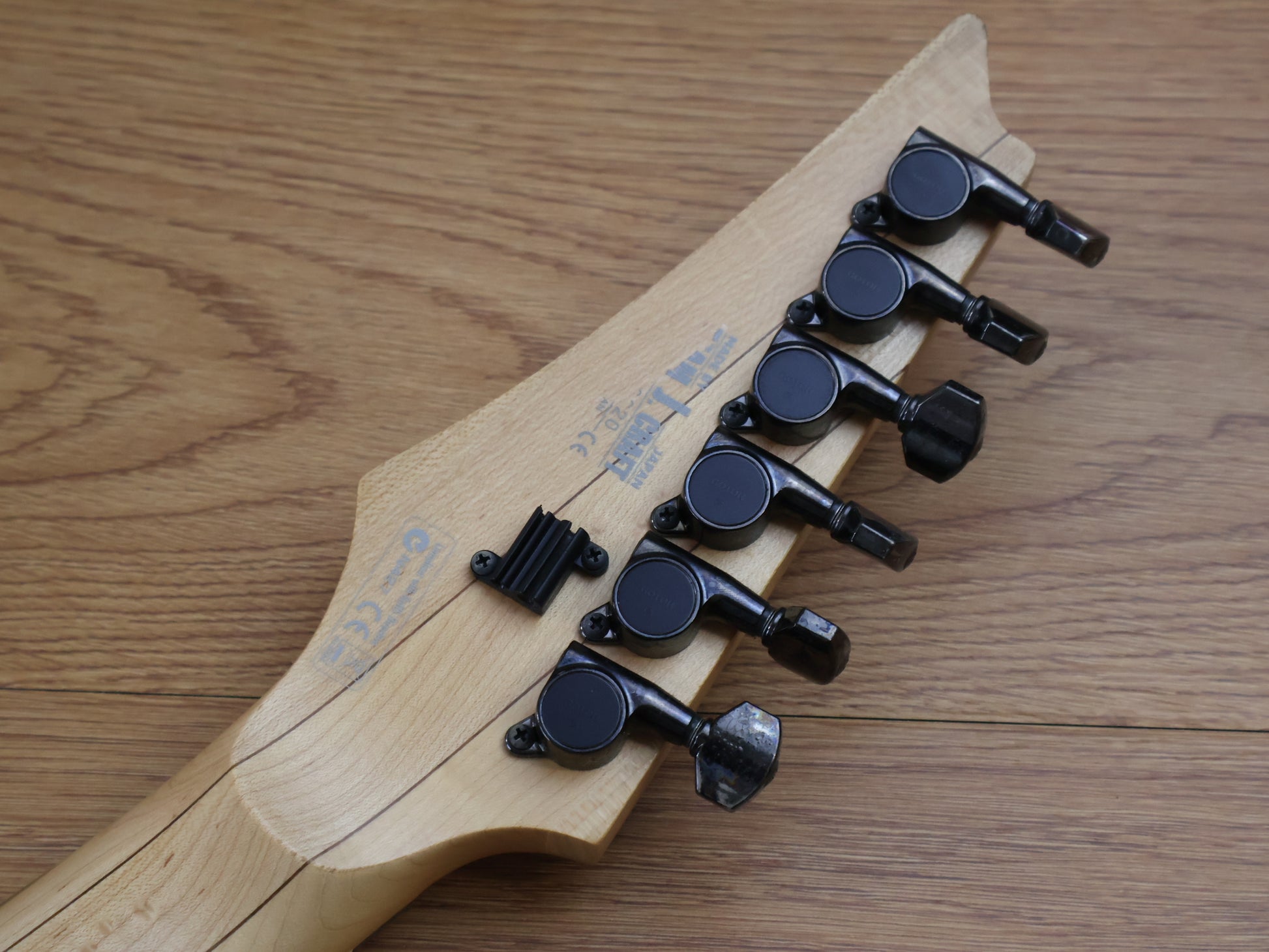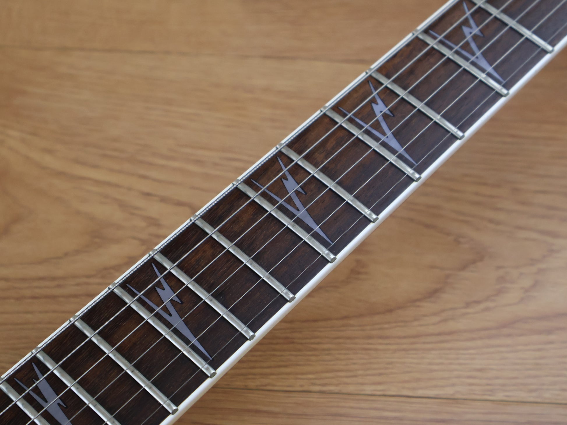 The RG2520ZE features a basswood body bolted to a maple and walnut neck with a 24-fret bound rosewood fingerboard with wedge (or ghost) sharktooth position markers. Components include dual EMG 81/85 active humbuckers, an Edge Zero double locking tremolo bridge and Gotoh tuning machines.