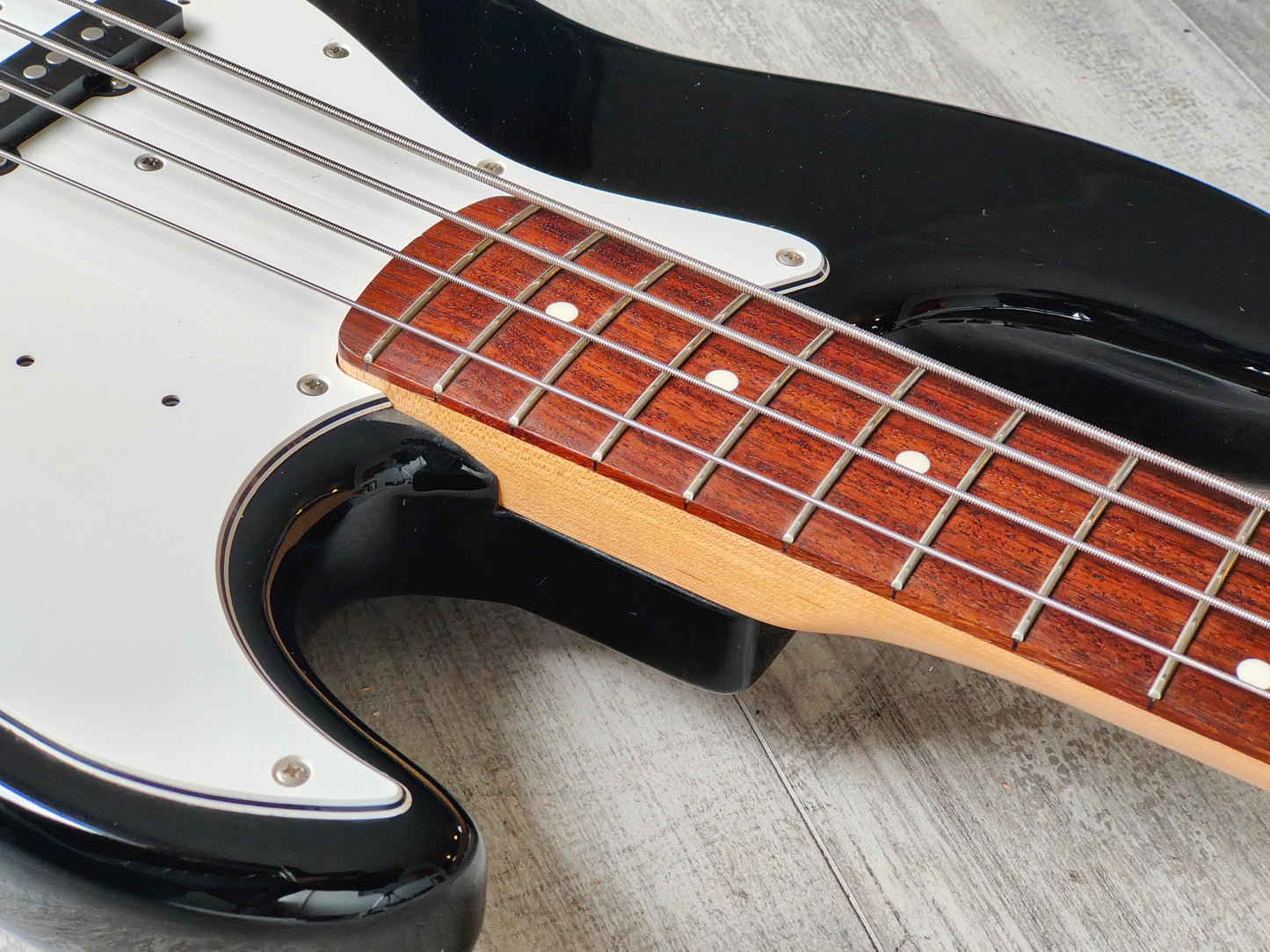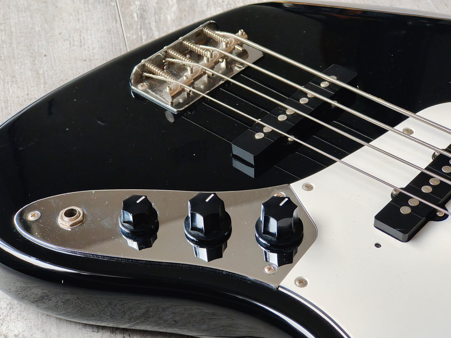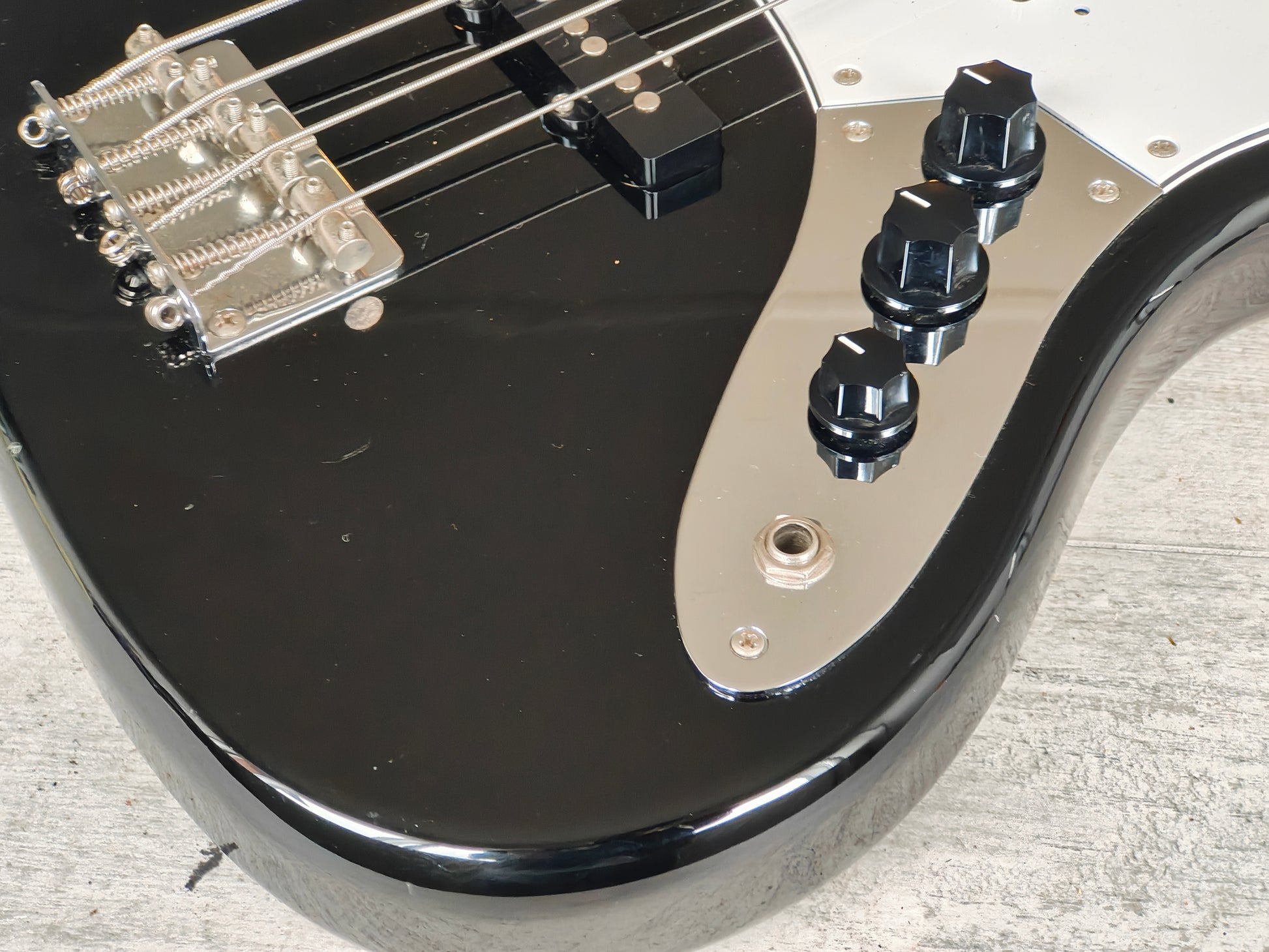 Made in Japan in 2010, this is the Japanese version of the American Standard Jazz Bass. Gloss black finish on a basswood body with a maple neck and rosewood fingerboard (39mm nut width), it weighs just over 4kg’s.