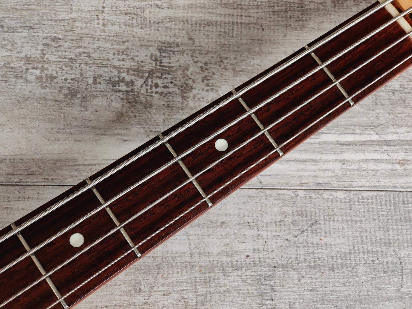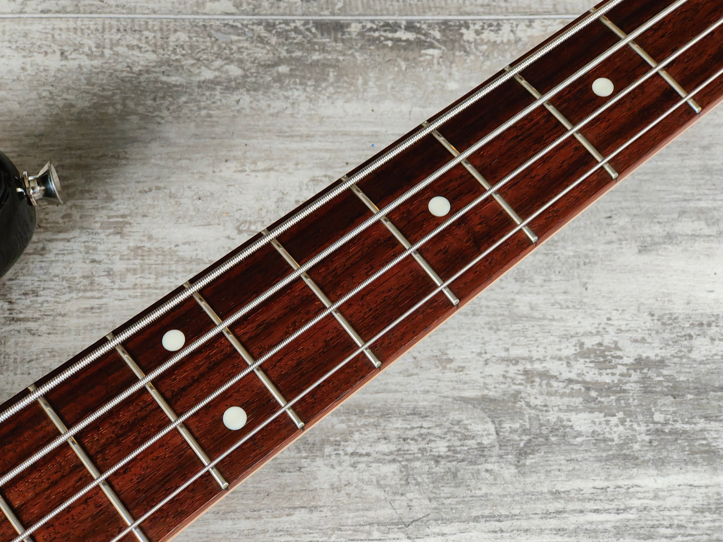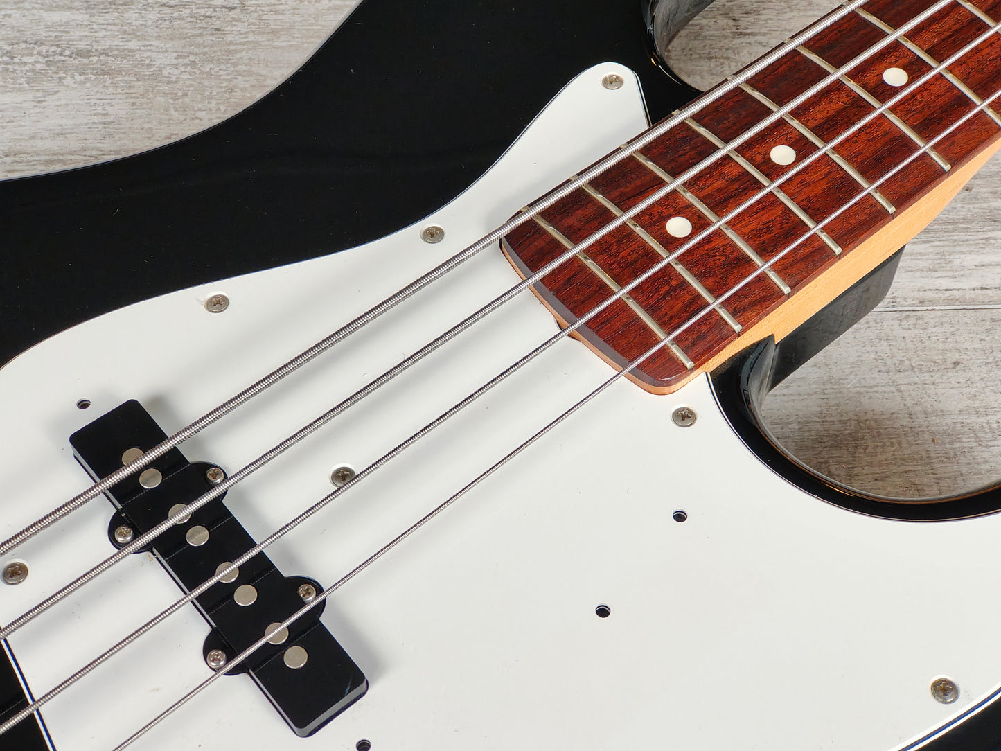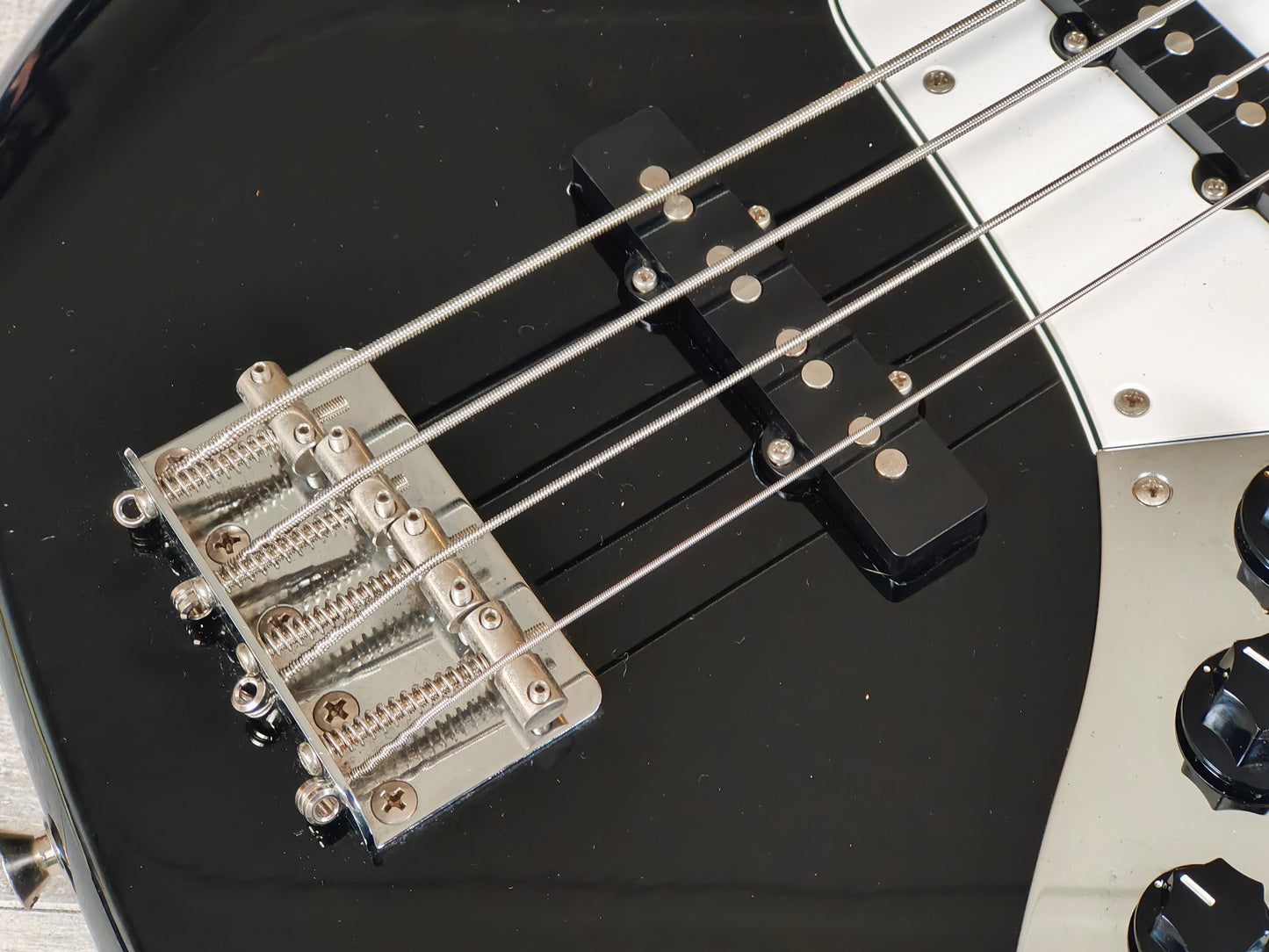 Made in Japan in 2010, this is the Japanese version of the American Standard Jazz Bass. Gloss black finish on a basswood body with a maple neck and rosewood fingerboard (39mm nut width), it weighs just over 4kg’s.
