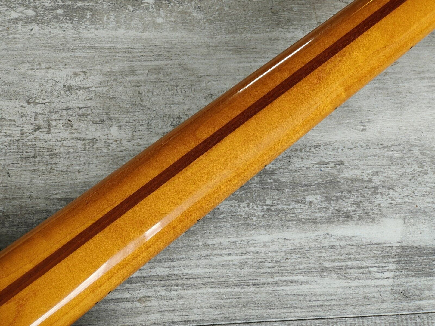 Basswood body with a maple neck shaped with the classic '57 slim C neck profile (7.25" radius, 43mm nut, 648mm scale length), it weighs 3.6kg's. Loaded with the original Japanese single coils controlled by a 5-way pickup selector.