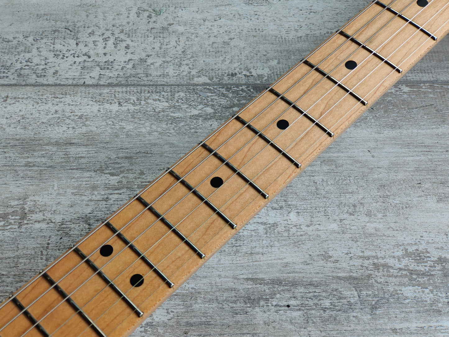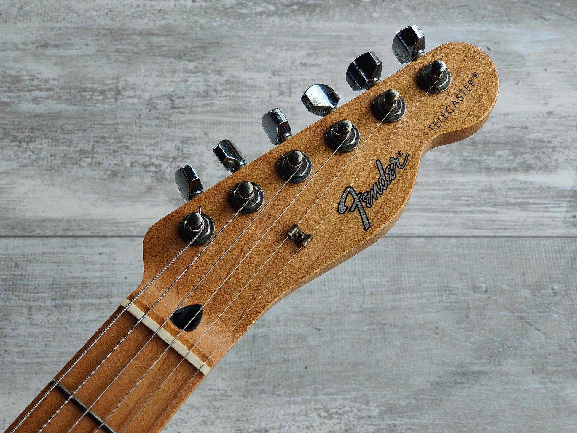 Made in Japan in 2010, this Fender TL-STD was the Japanese version of a American Standard. 21 frets on a maple neck with a basswood body that wears a glossy blonde finish, it weighs 3.5kg's. Fender Japan pickups with Gotoh tuners and a toploader bridge.