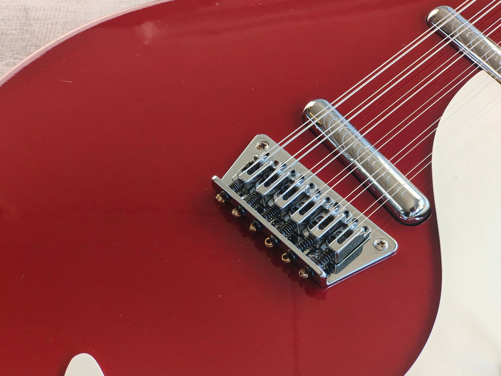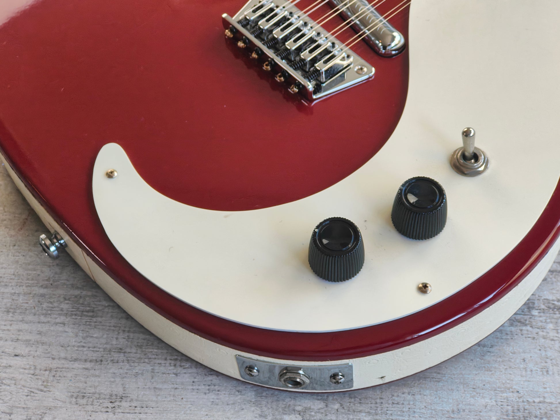 Made in the 2010's, this is a very well made Korean reissue of the '59 12-String. Comfortable double cutaway design with white vinyl binding around the sides, bolt on maple neck with a 21 fret rosewood fingerboard (46mm nut width,  25" scale length), it weighs just under 3kg's. All original including a pair of Danelectro Lipstick single coils.