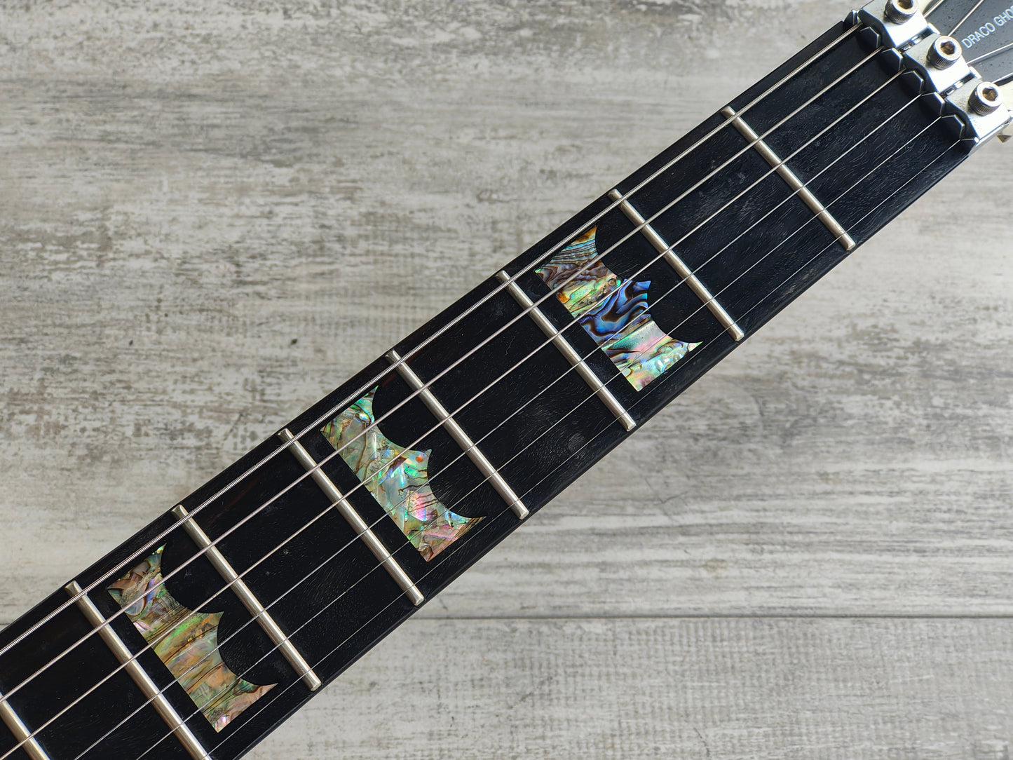 Like a spirit rising from a dying fire's burning embers, the Draco Ghost Flame offers a form that is simply untouchable. B.C. Rich has always been known for its distinctive guitar shapes but the Draco takes this art work to a higher level. Do you dare touch the flame?