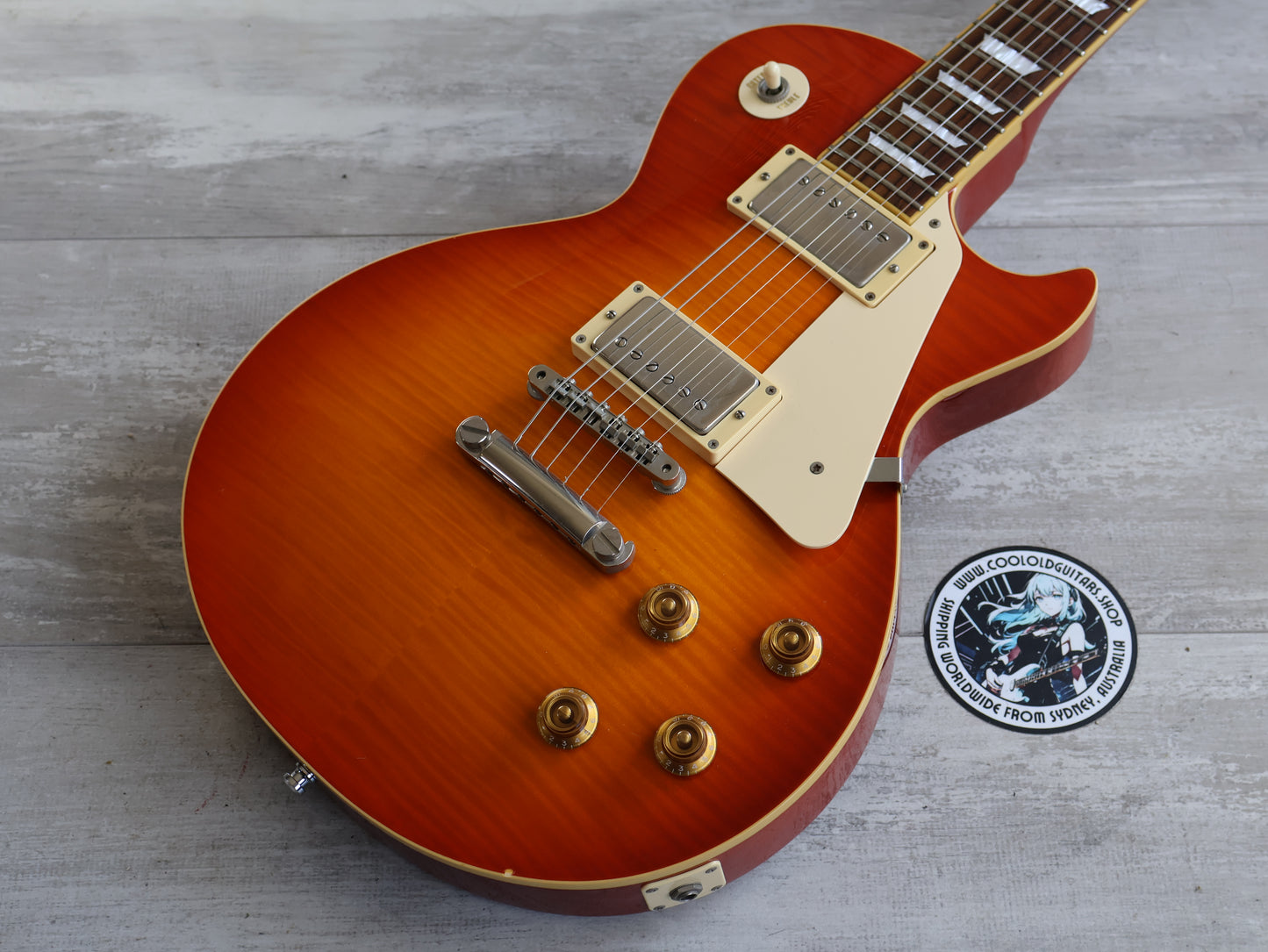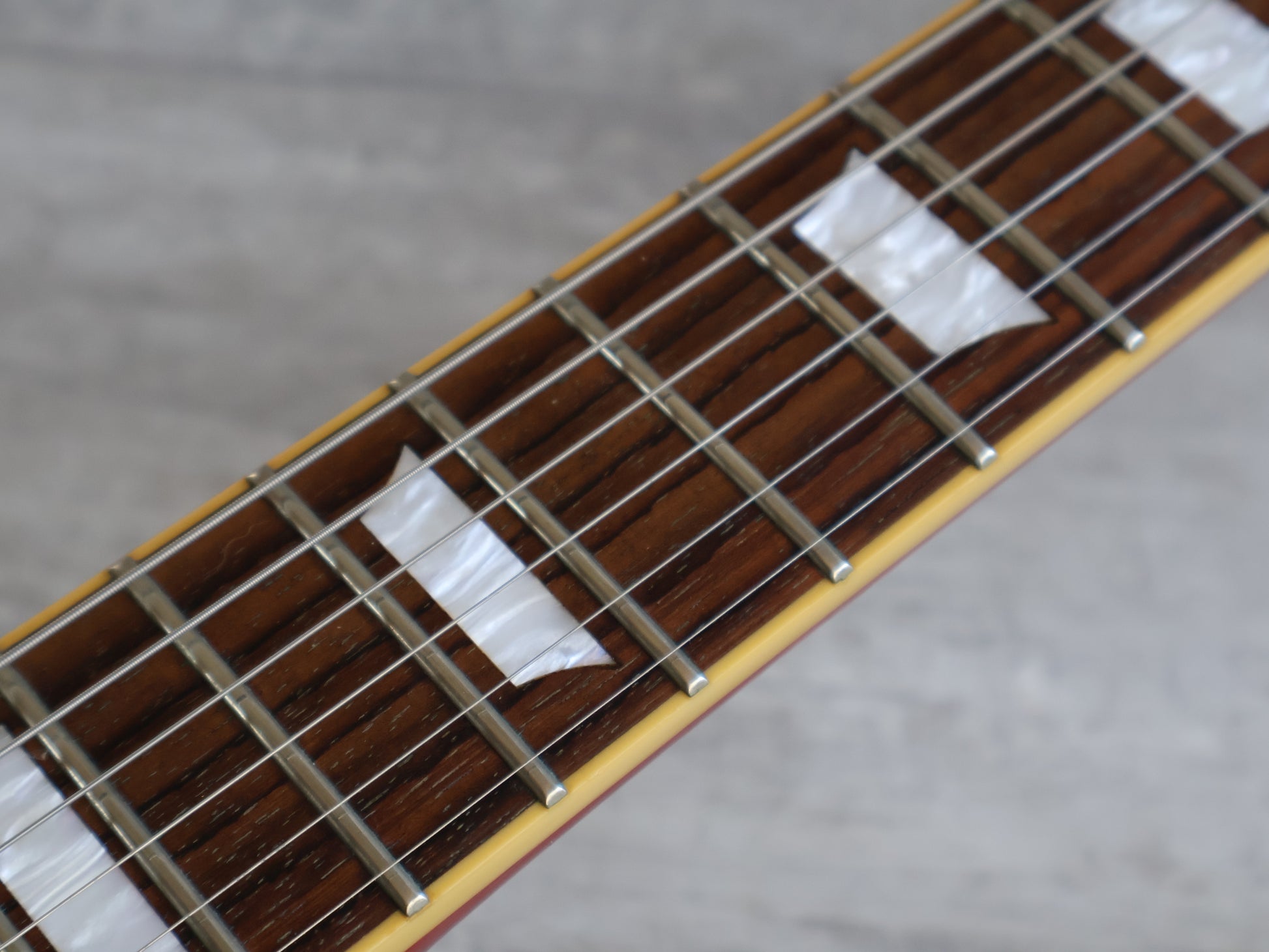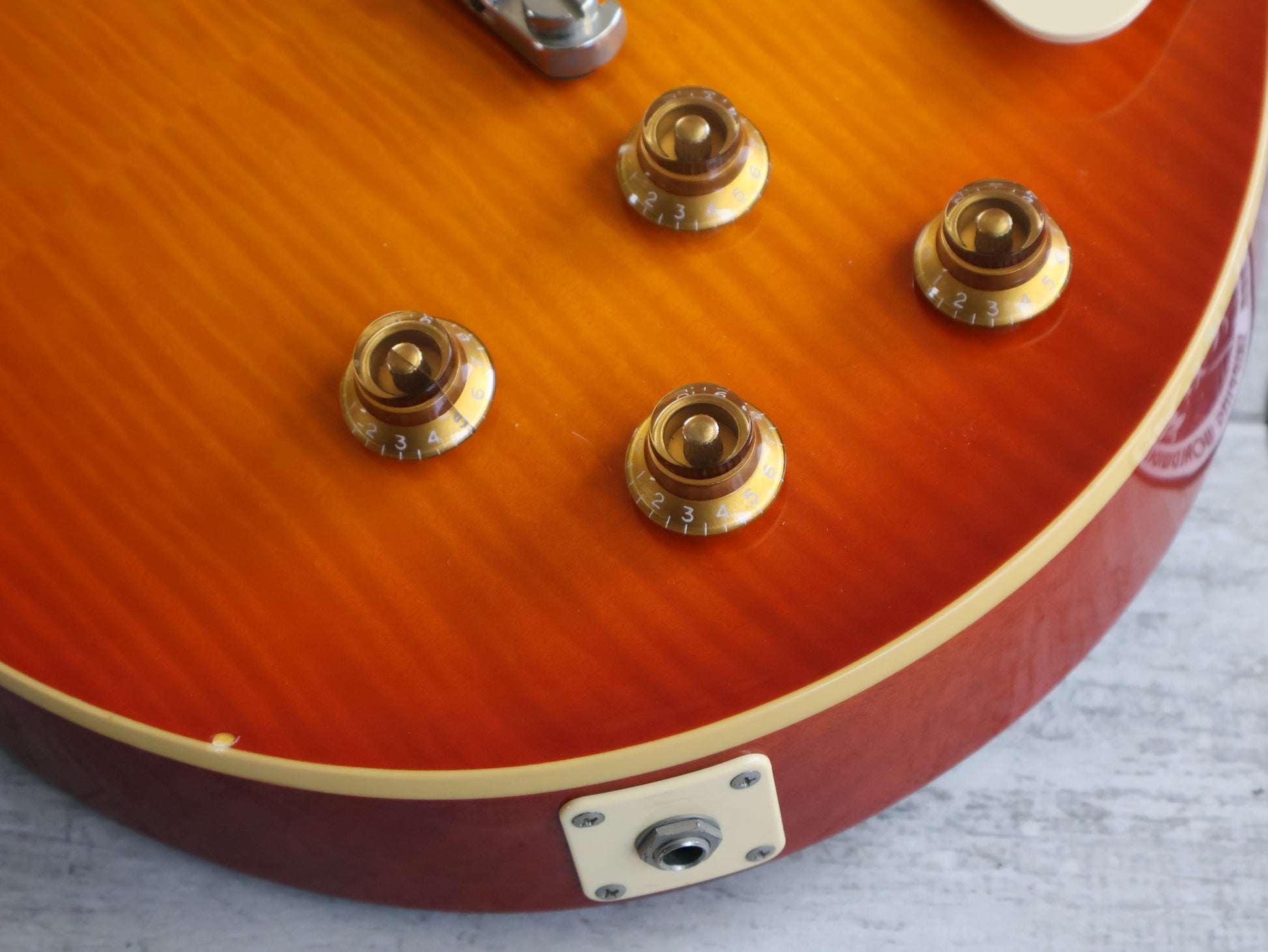 Made in Japan by Edwards in 2011, the E-LP-108SD is a super classy Les Paul from the more modern era of Japanese guitars. Mahogany body with a laminate maple flame top, slim 60's mahogany neck with a rosewood fingerboard (43mm nut, 12" radius), it weighs 3.4kg's. Factory loaded with a pair of Seymour Duncan SH-1n/4 pickups and Gotoh hardware including upgraded Gotoh locking tuners.
