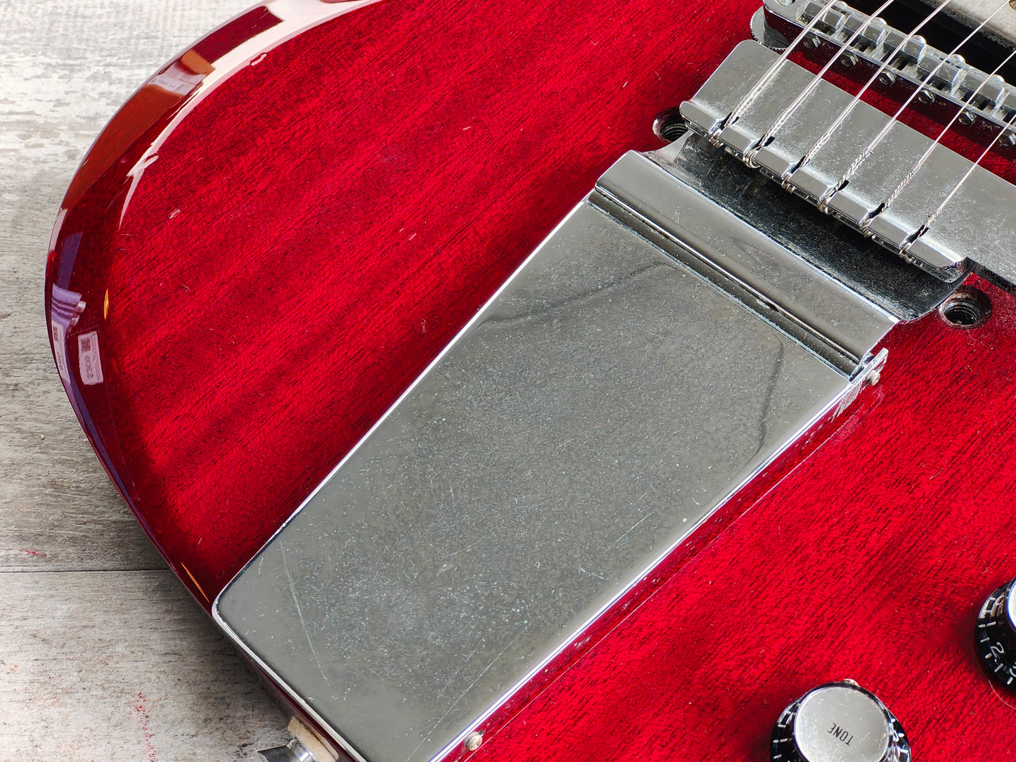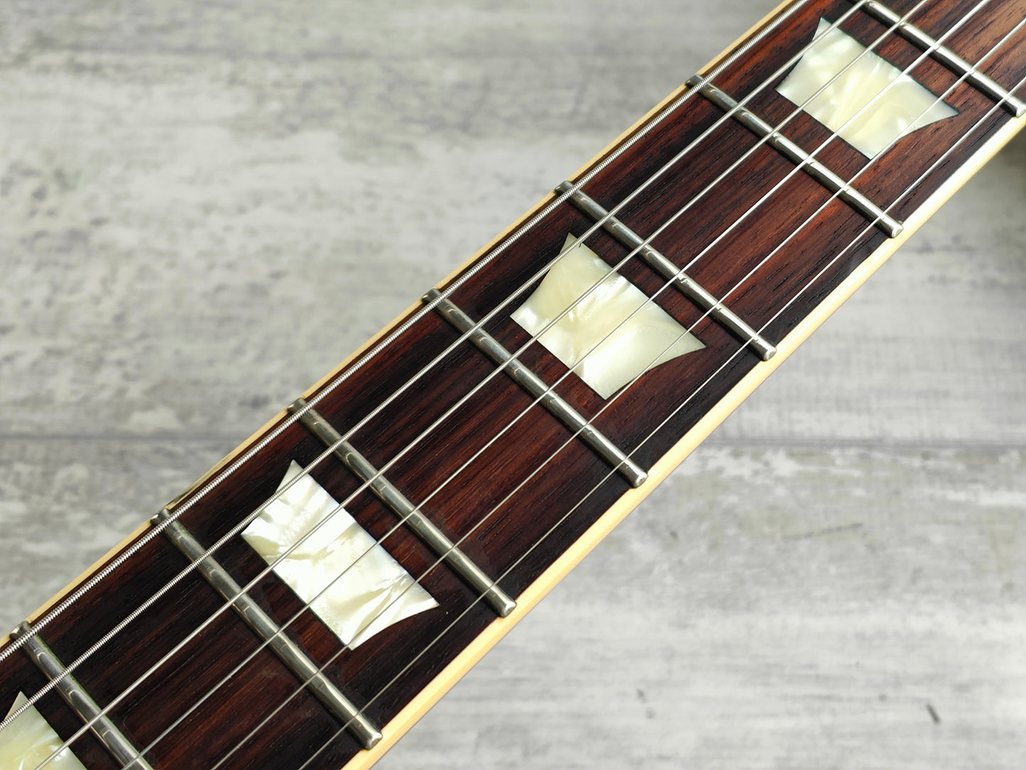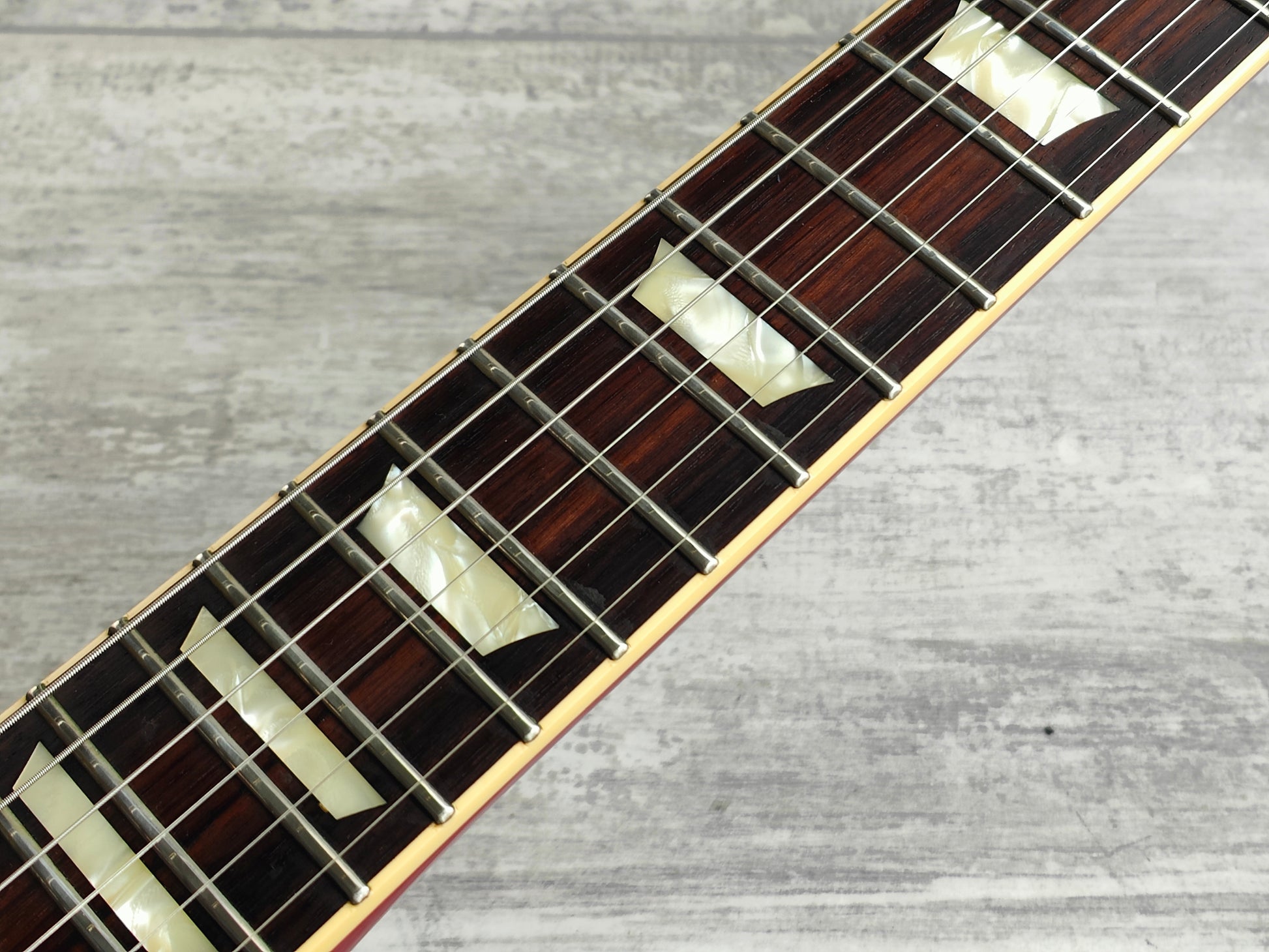 Two piece mahogany body wearing a Heritage Cherry finish bolted to a "Heritage Wood" Hard Maple neck with a rosewood fingerboard (44mm nut width, 12" radius), it weighs 3.4kg's. High end components including CTS pots, a Switchcraft jack, Gotoh tuners and an aftermarket Vibrola system added by the previous owner.
