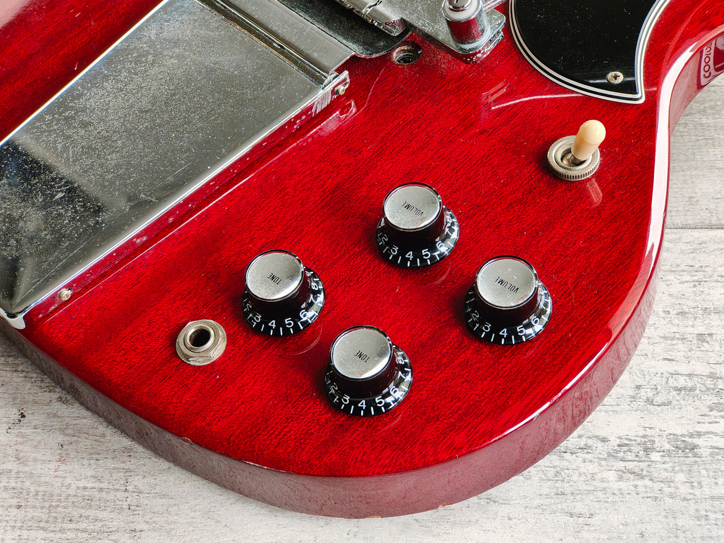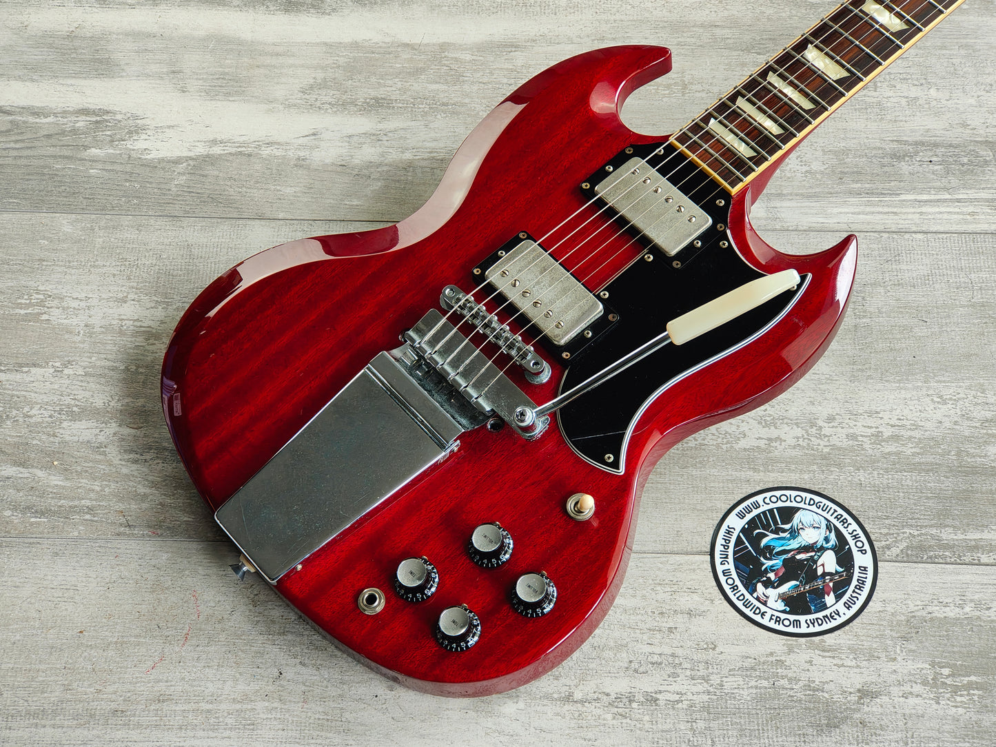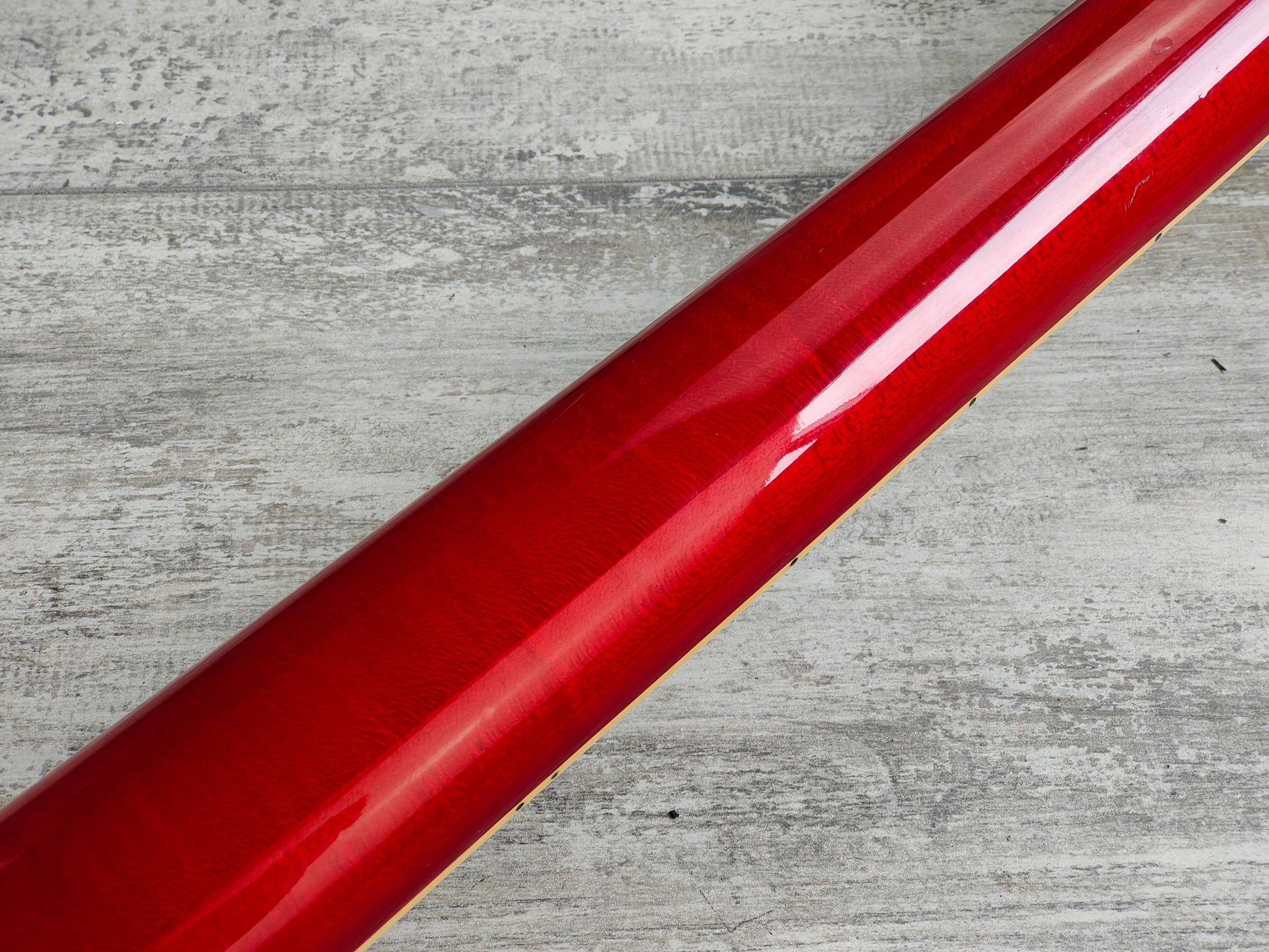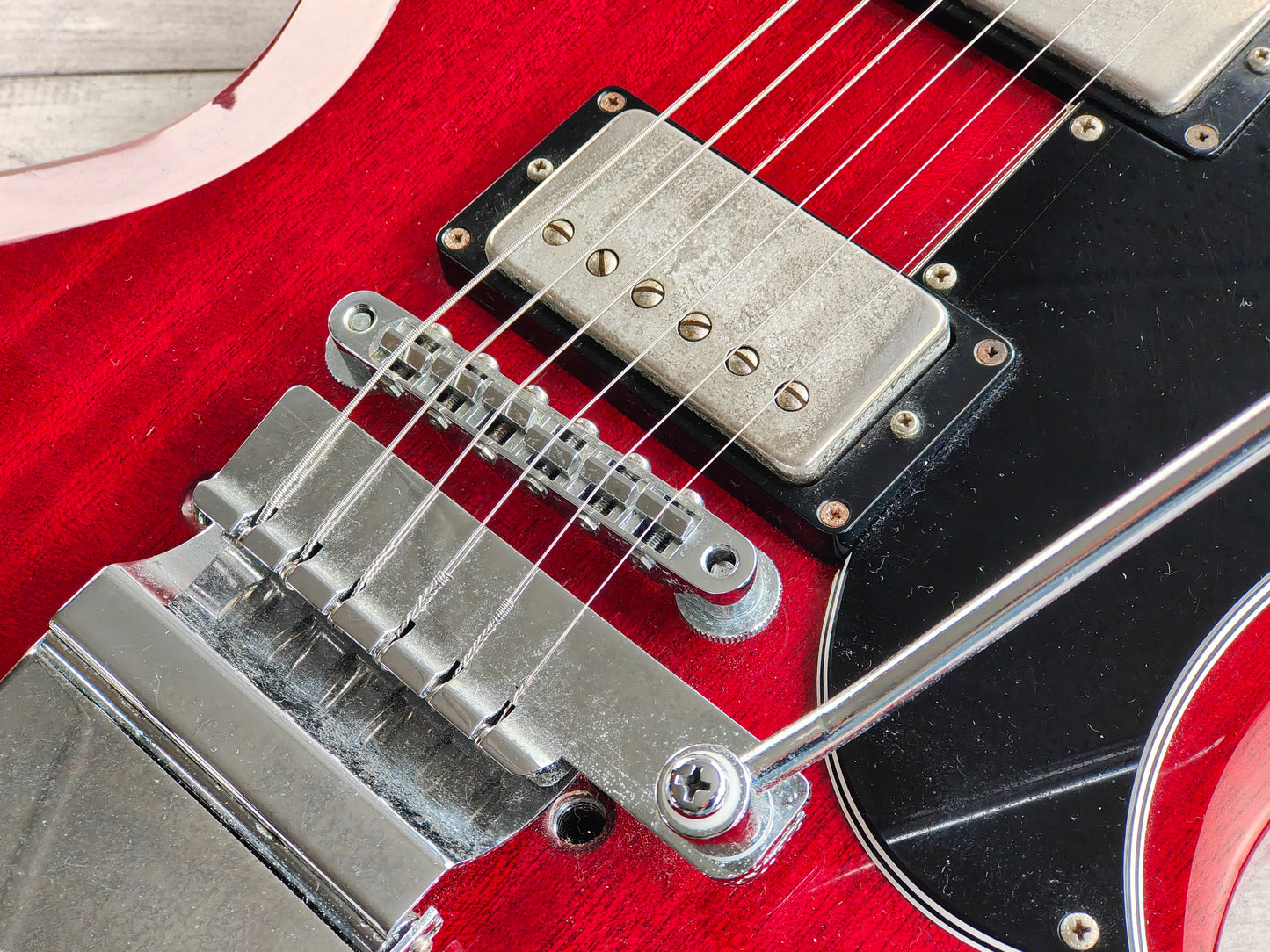 Two piece mahogany body wearing a Heritage Cherry finish bolted to a "Heritage Wood" Hard Maple neck with a rosewood fingerboard (44mm nut width, 12" radius), it weighs 3.4kg's. High end components including CTS pots, a Switchcraft jack, Gotoh tuners and an aftermarket Vibrola system added by the previous owner.