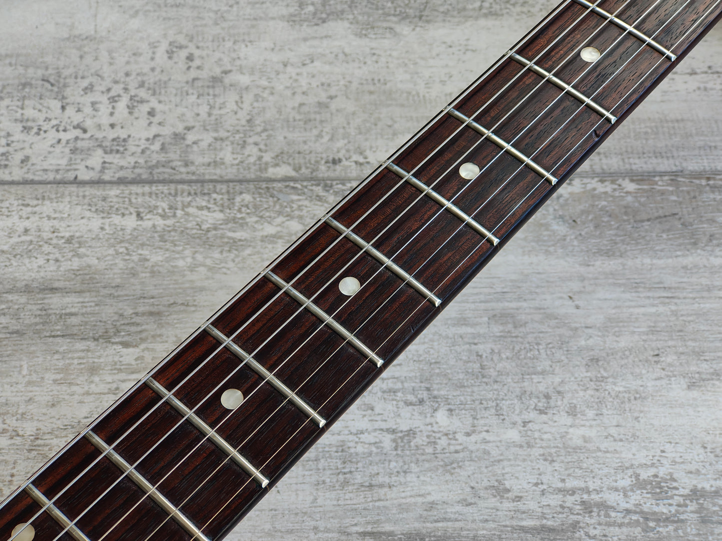Good used condition as pictured. The previous owner upgraded the pickups to a set of Fender USA Texas Specials and the tuners to a set of Fender locking tuners. Weighs 3.6kg's.
