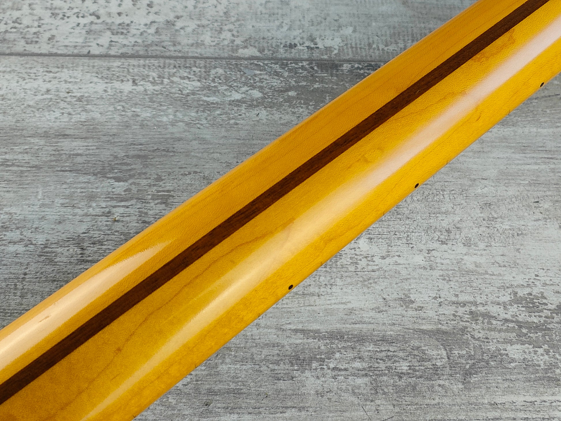 Featuring their famous Lacquer Taste finish (a soft nitro style overcoat over a poly finish) to give it a satin look and feel), this one's built with an alder body bolted to a one-piece maple neck (9.5" radius, 42mm nut width) and weighs 3.9kg's.
