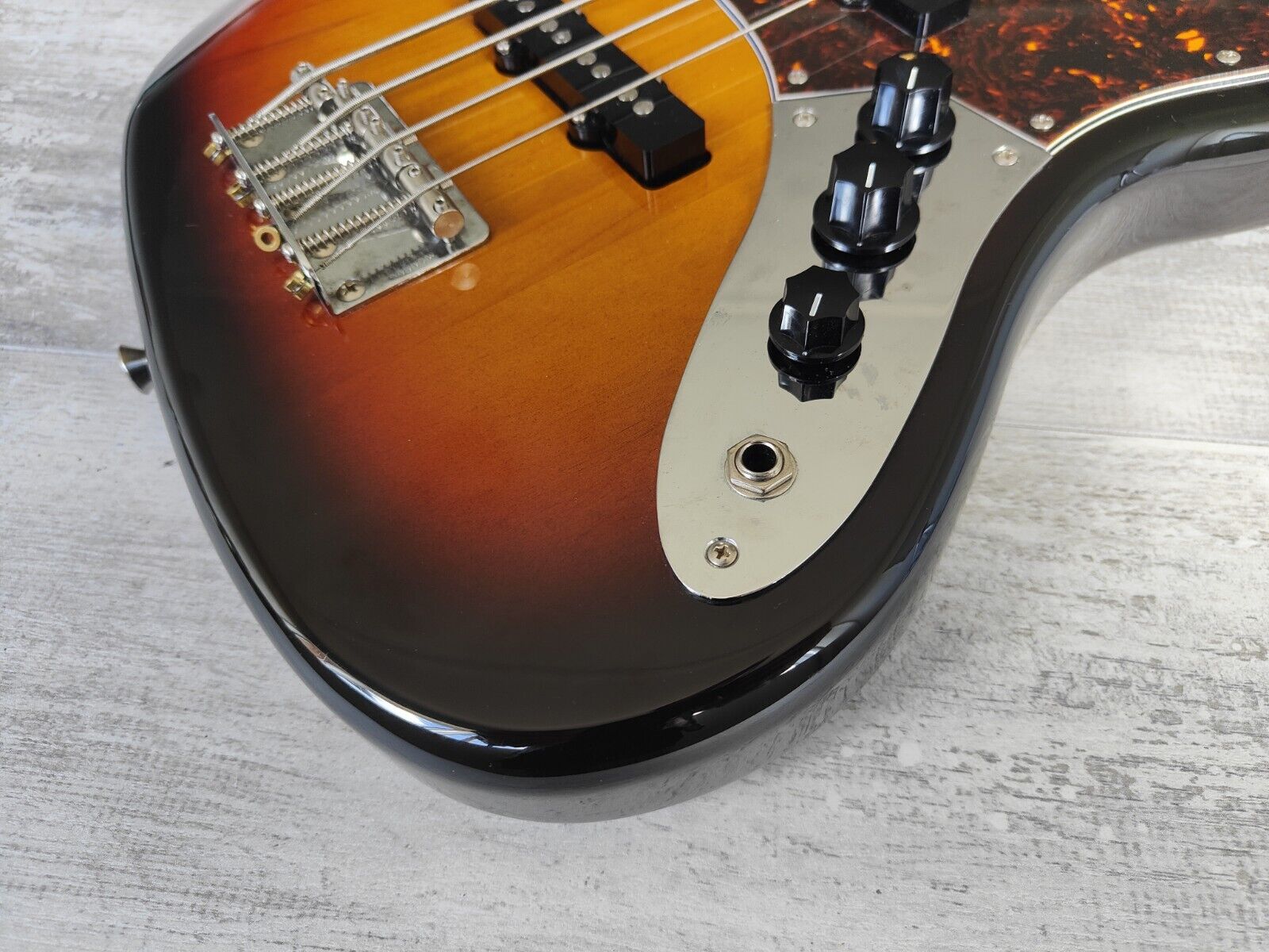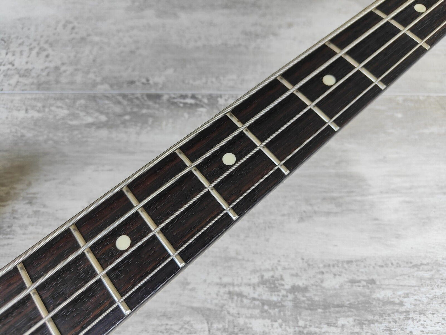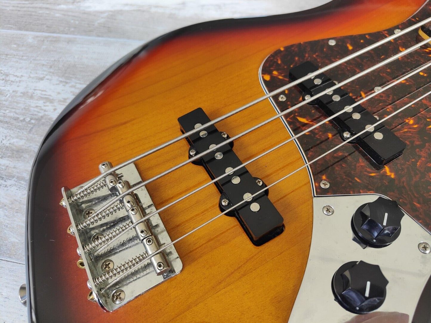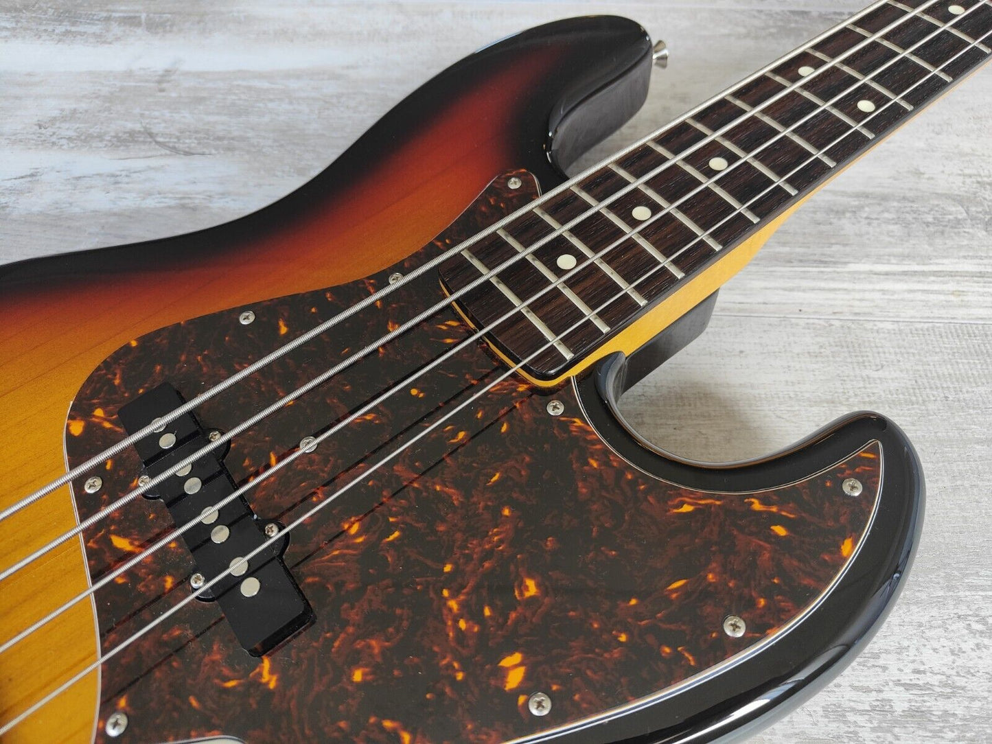 Made in Japan by the Fujigen factory in 2012, this was Fender's medium scale version of the 1962 model Jazz Bass. Sunburst finish on a basswood body with a maple neck and rosewood fingerboard (39m nut width), it weighs 4kg’s. Factory Japanese hardware and electronics, appears to be all stock. 820mm scale length with a slightly smaller body size.