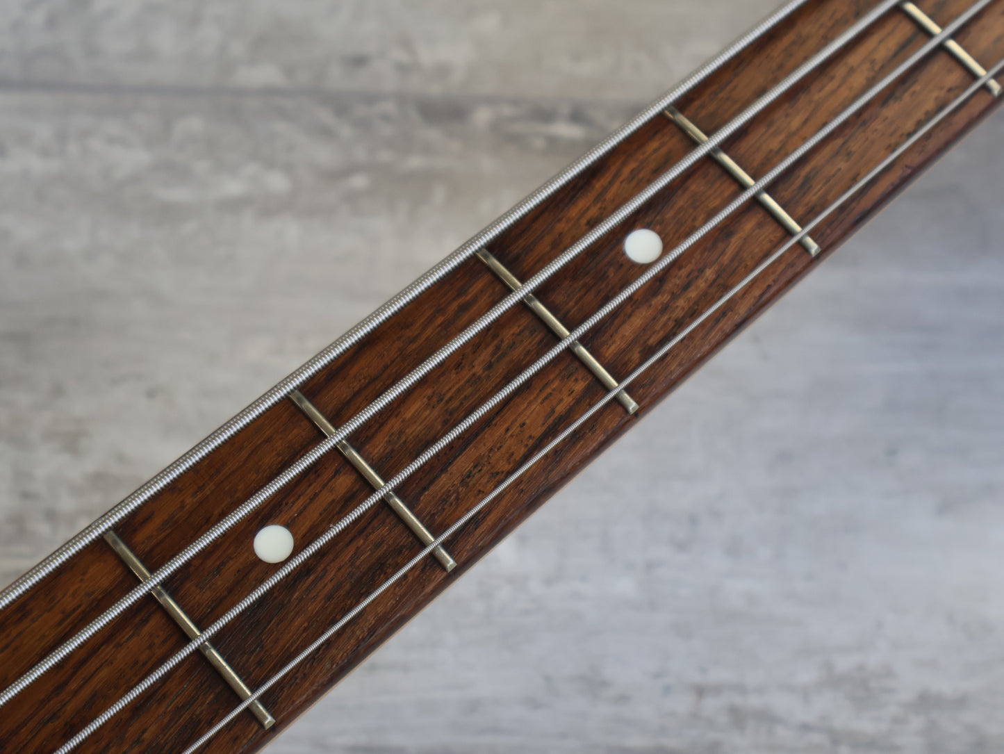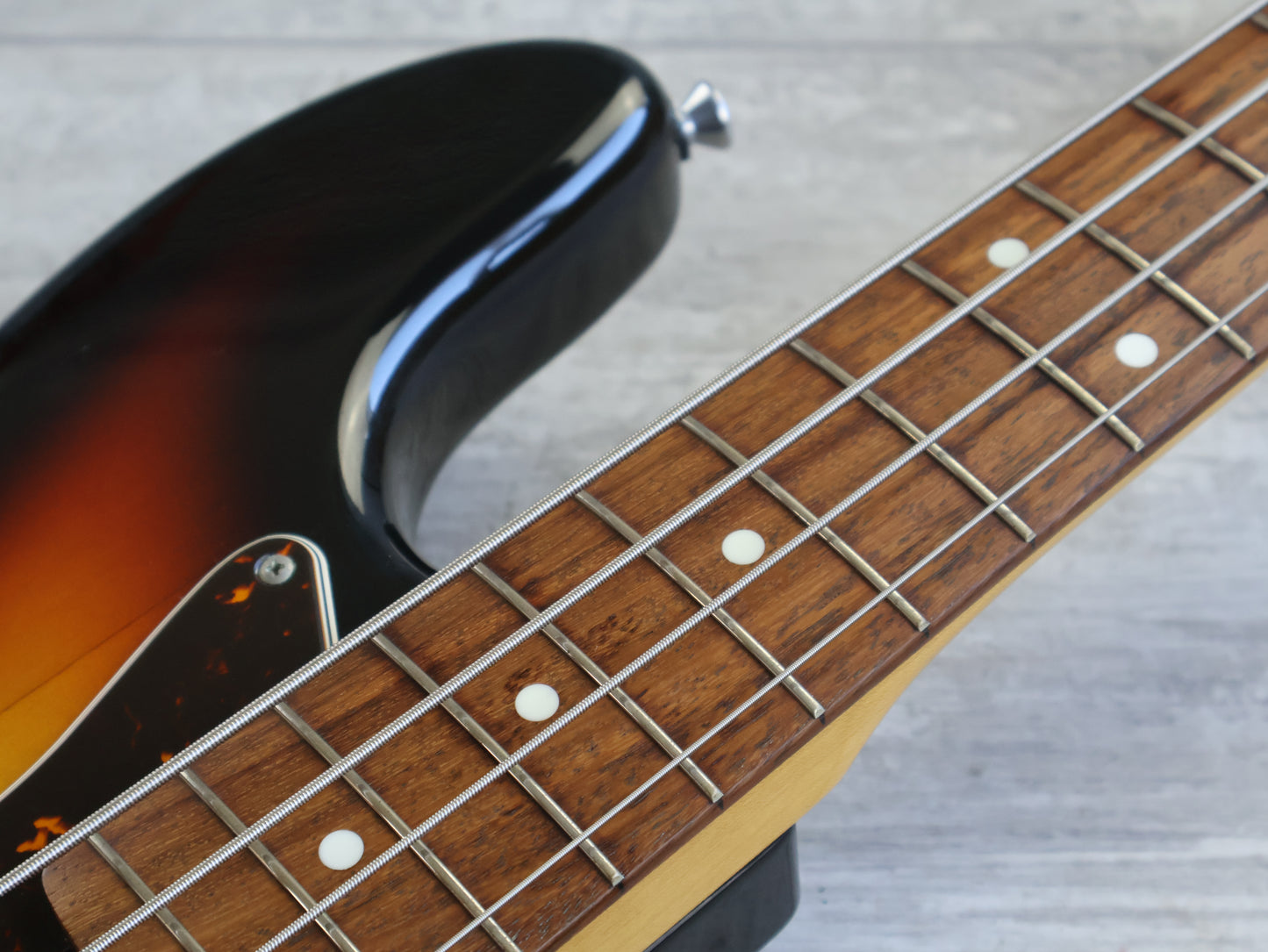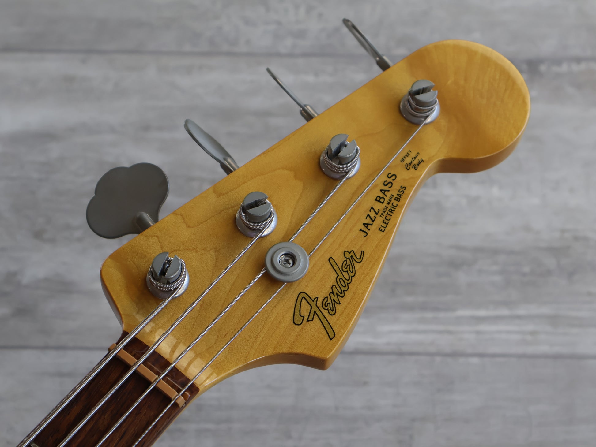 Built in 2012, this is Fender Japan's '62 Reissue Jazz Bass wearing a classic Sunburst finish. Basswood body with a maple neck and rosewood fingerboard (38mm nut width, 7.25" radius), weighs 3.8kg's. Appears to be all original as pictured.