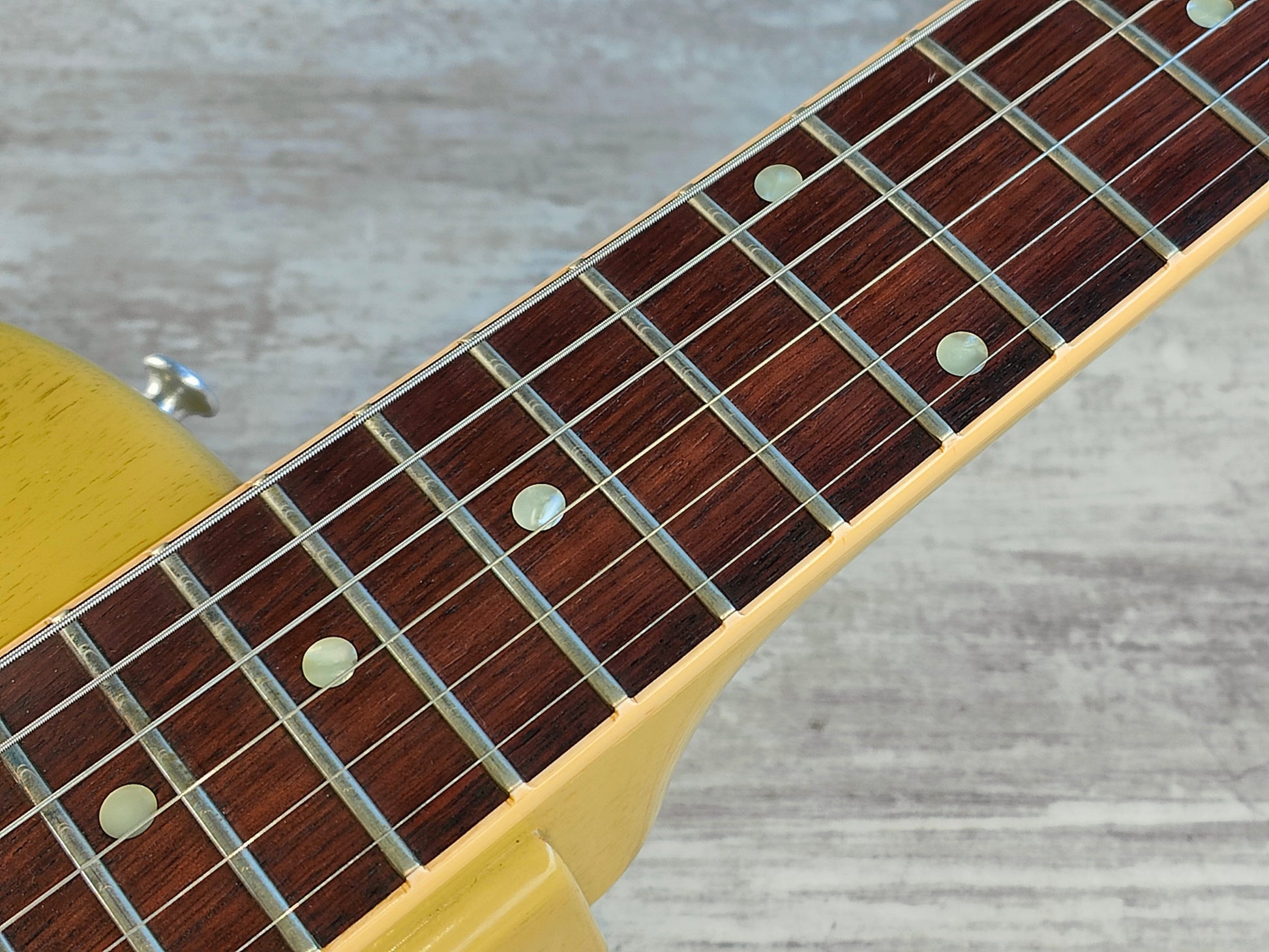 Made by the Gibson Custom Shop in 2012, this was a Japanese market release "LPSPSC" model late 50's Les Paul Special in nitro TV Yellow. Mahogany body with a reasonably thick style mahogany neck (44mm nut width) with comfortable shoulders, 22 fret bound rosewood fingerboard (with dot inlays) and Gibson branded P90's, weighs just over 3.6kg's.