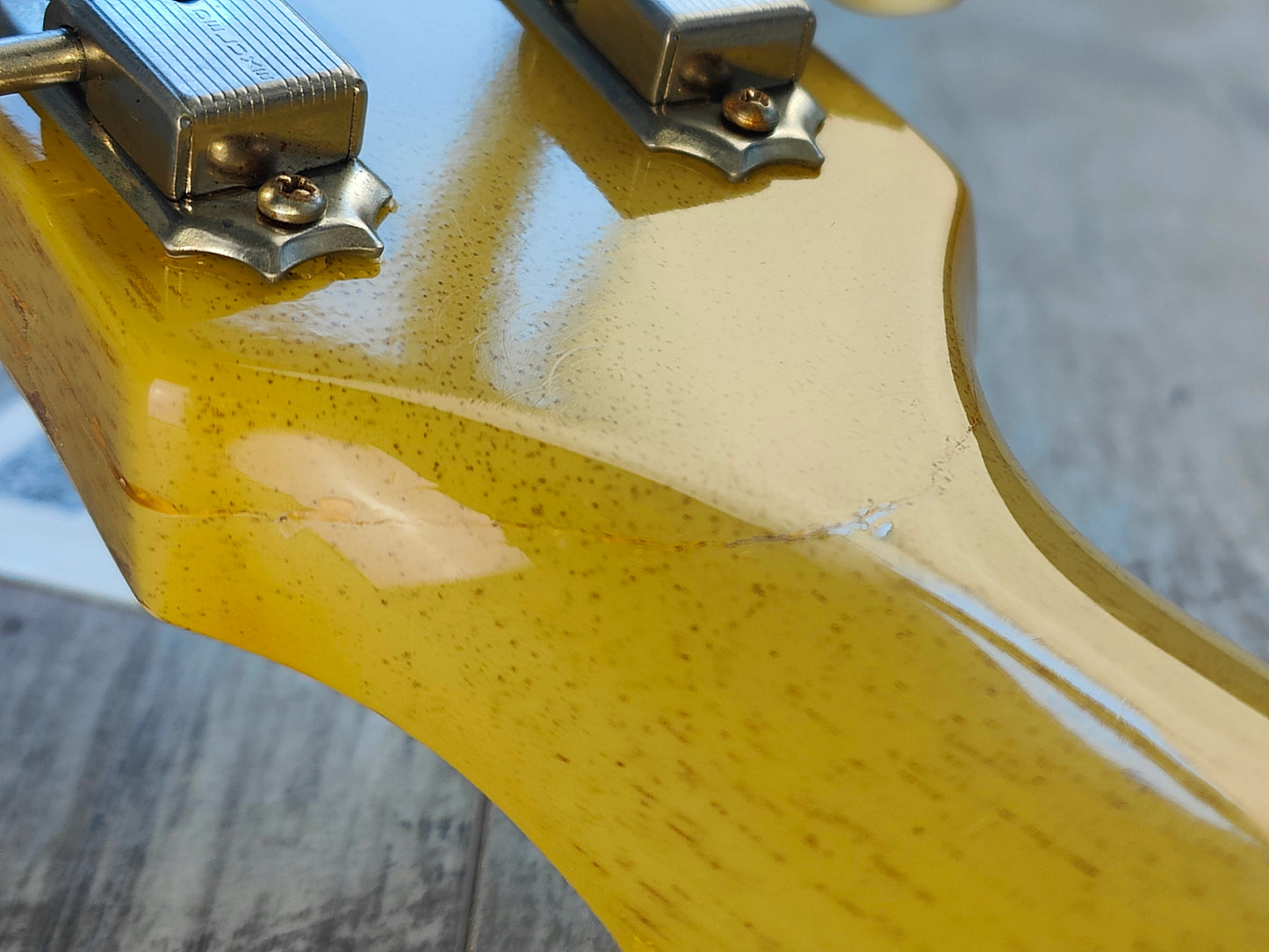 Overall it's in very clean condition cosmetically with a fresh professional headstock repair as pictured (done in house by our tech). It's smooth to the touch and rock solid, could be hidden with a nitro spot-refinish in the area (although we thought this was a waste of money as it's purely cosmetic).