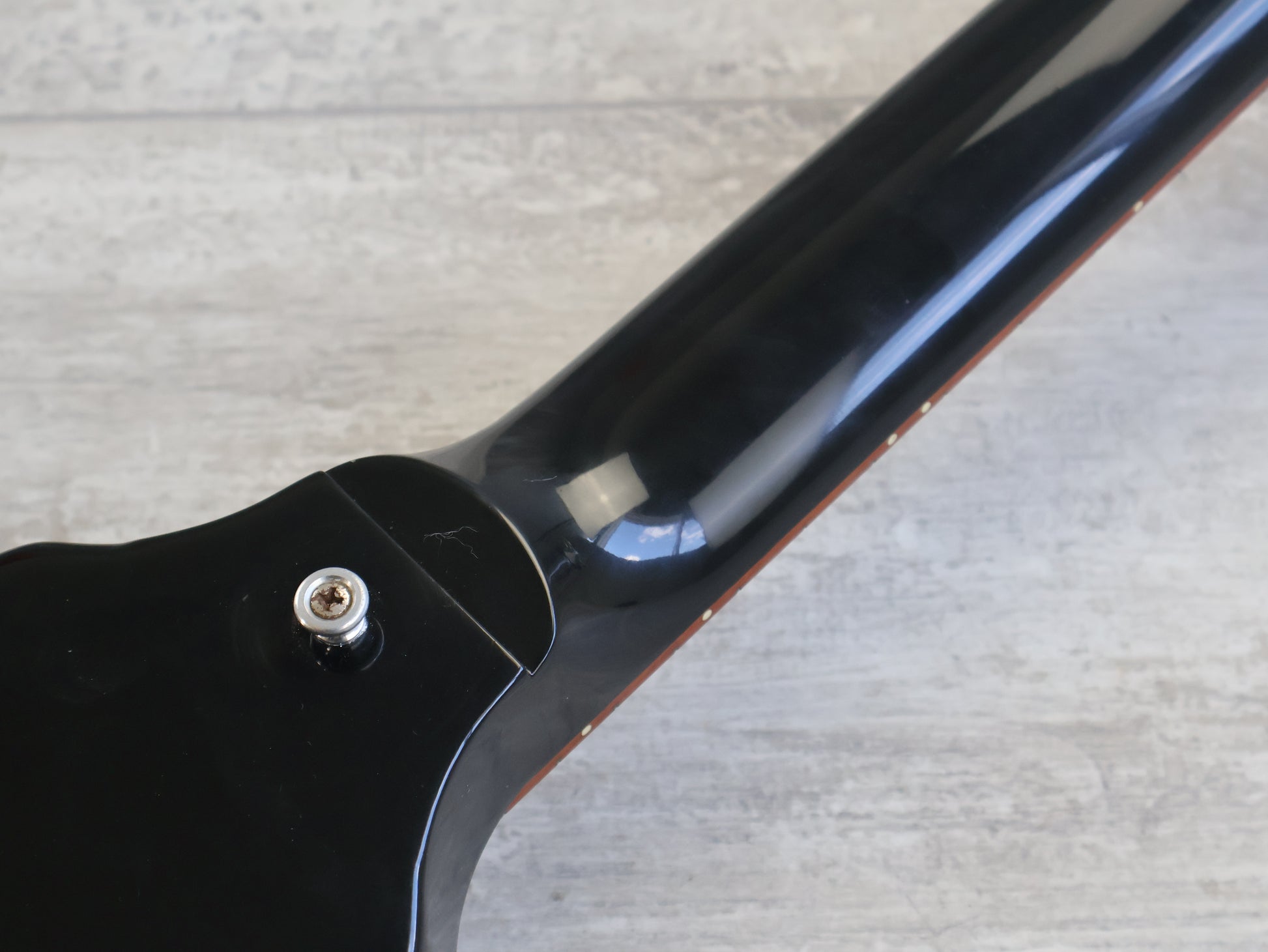 Reintroduced to the Gibson range in 2009 (after a few years of experimenting with the Factor X model), this 2012 model is a classic '67 Reissue. Gloss Black finish on a mahogany body with a slim 60's style neck profile and 22 fret rosewood fingerboard, it weighs 3.5kg's. This one appears all original except for some aftermarket Gibson pickups (seemingly 490R/498T's).