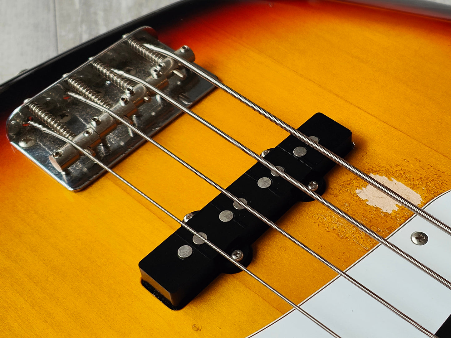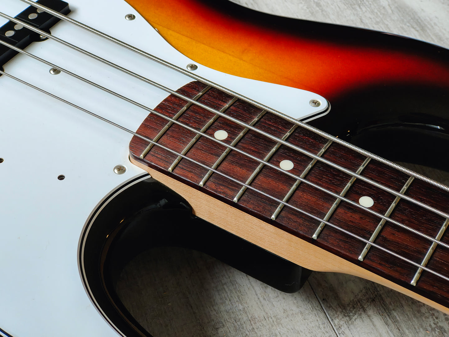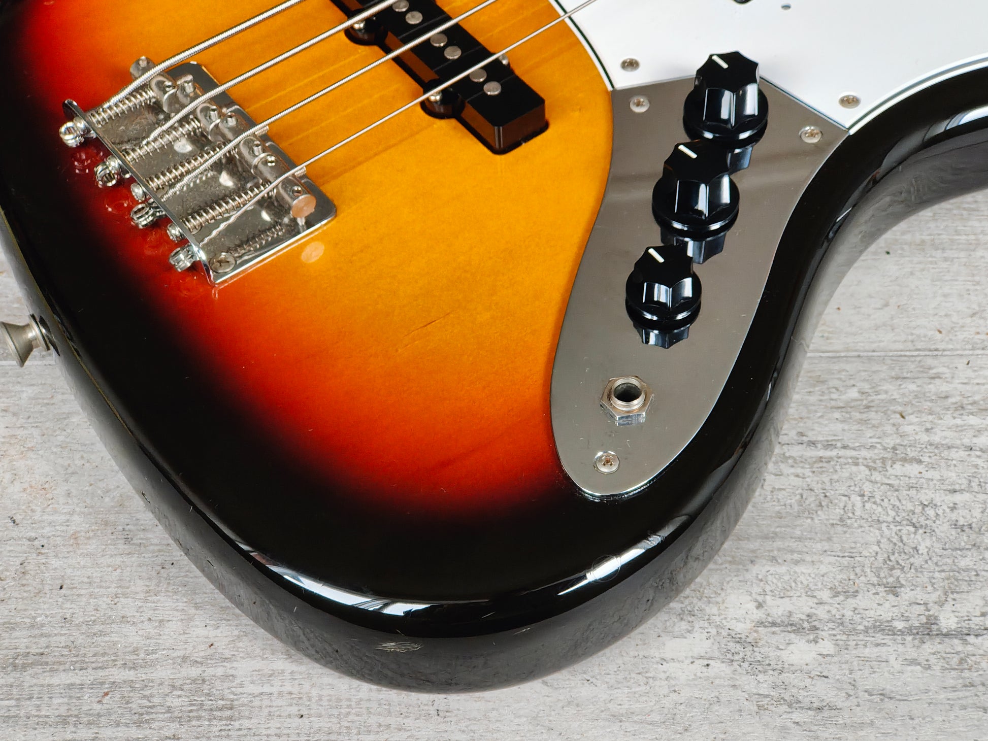 Made in Japan in 2013, this is the Japanese version of the American Standard Jazz Bass. Sunburst finish on a basswood body with a maple neck and rosewood fingerboard (39mm nut width), it weighs 3.6kg’s.