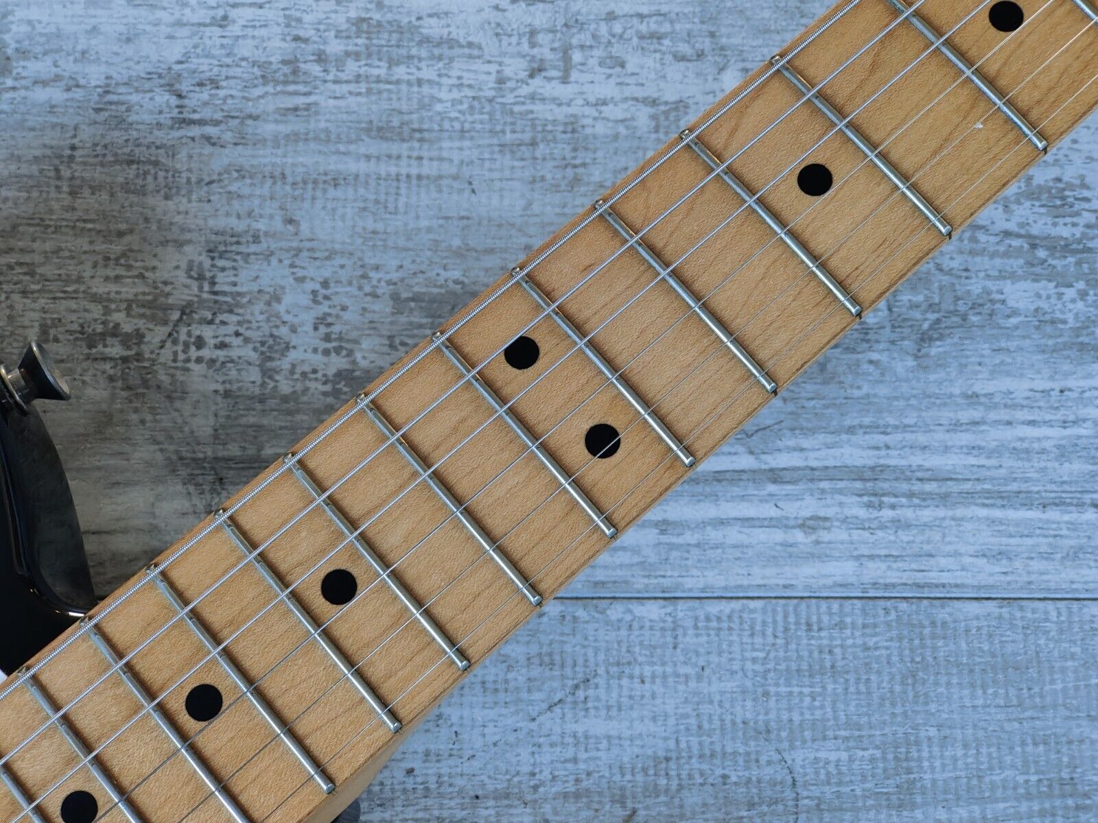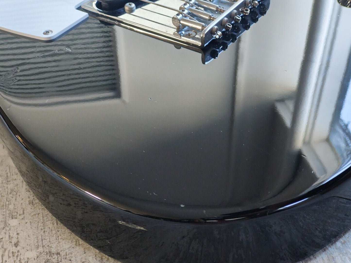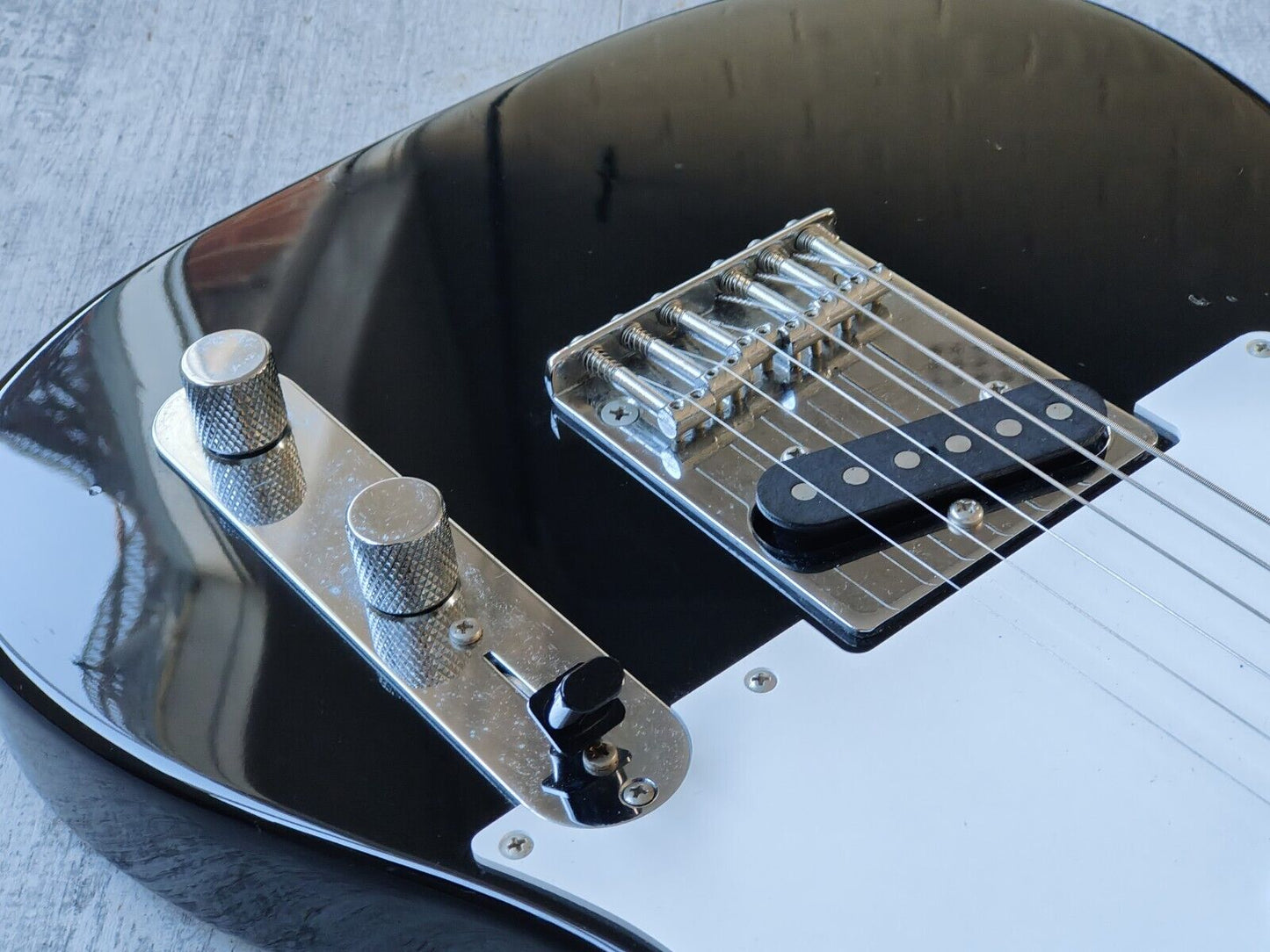 Made in Japan in 2013, this Fender TL-STD was the Japanese version of a American Standard. 21 frets on a maple neck with a basswood body that wears a gloss black finish, it weighs 3.4kg's. Fender Japan pickups with Gotoh tuners and a toploader bridge.