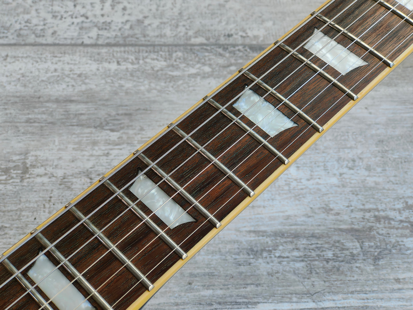 The basic model from Tokai's 2013 catalog is a great alternative to most Epiphone models on the market. Chinese made with supervision from Tokai Japan, it's built with a mahogany body with a laminate flame sycamore top, maple slim 60's neck and a 22 fret rosewood fingerboard, weighs 4.3kg's. Appears to be all original.