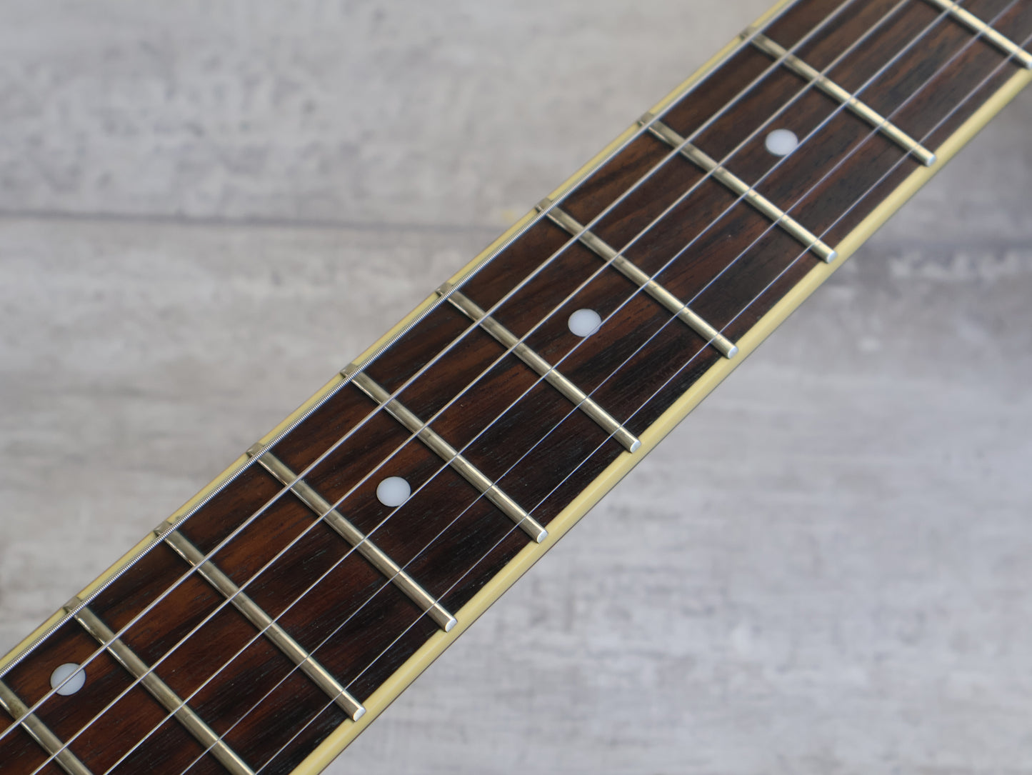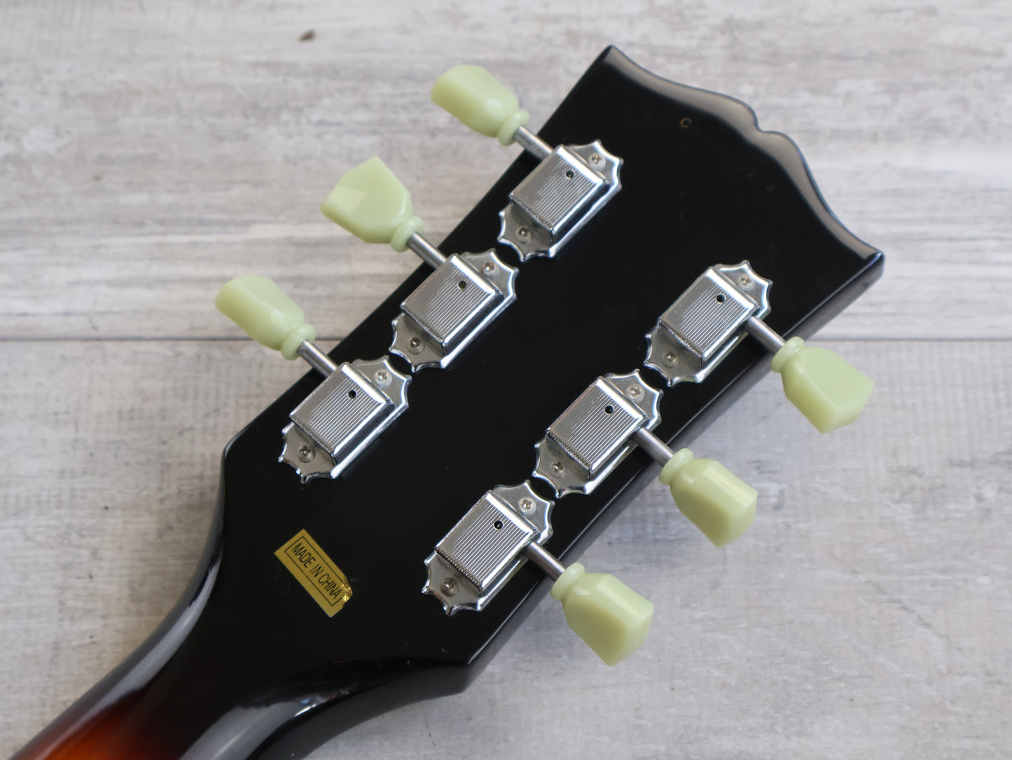 Made in China by Tokai and sold to the international market. Arched maple top with a maple back and sides, slim 60's profile on a maple set-neck, rosewood fingerboard and factory PAF Vintage pickups, it weighs 4kg's.
