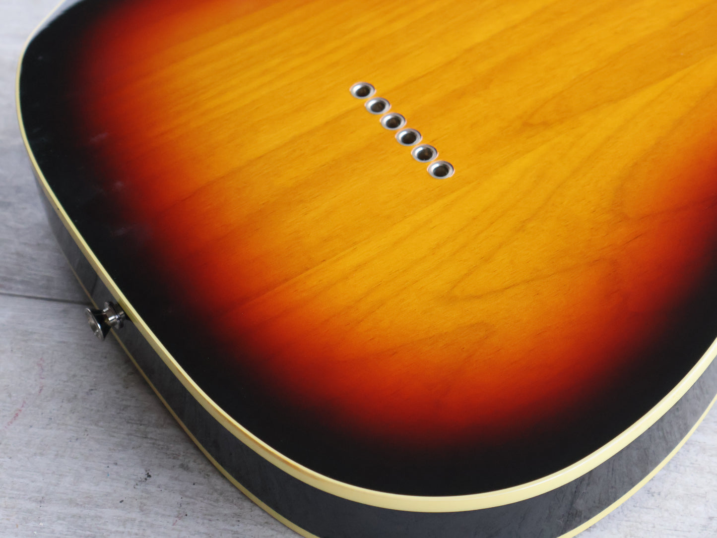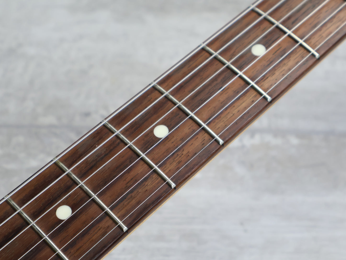 Made in Japan in 2014, the TL62B was made to replicate the famously classy 1962 Fender Telecaster. Three piece alder body with a sunburst finish and cream binding on the top and back, the neck is an oval medium C profile and plays comfortably with a 43mm nut width and a 7.25" radius on the rosewood fretboard.