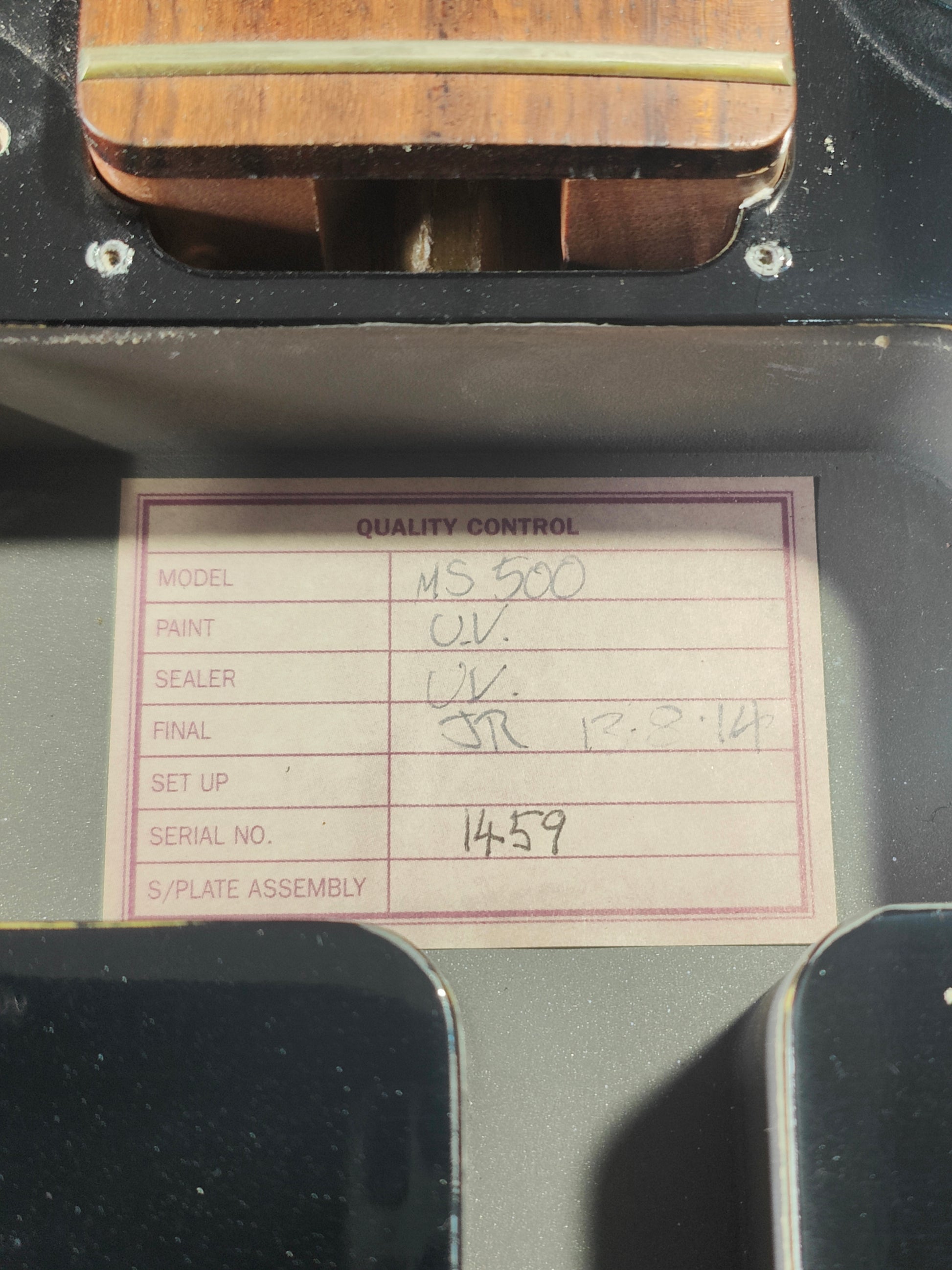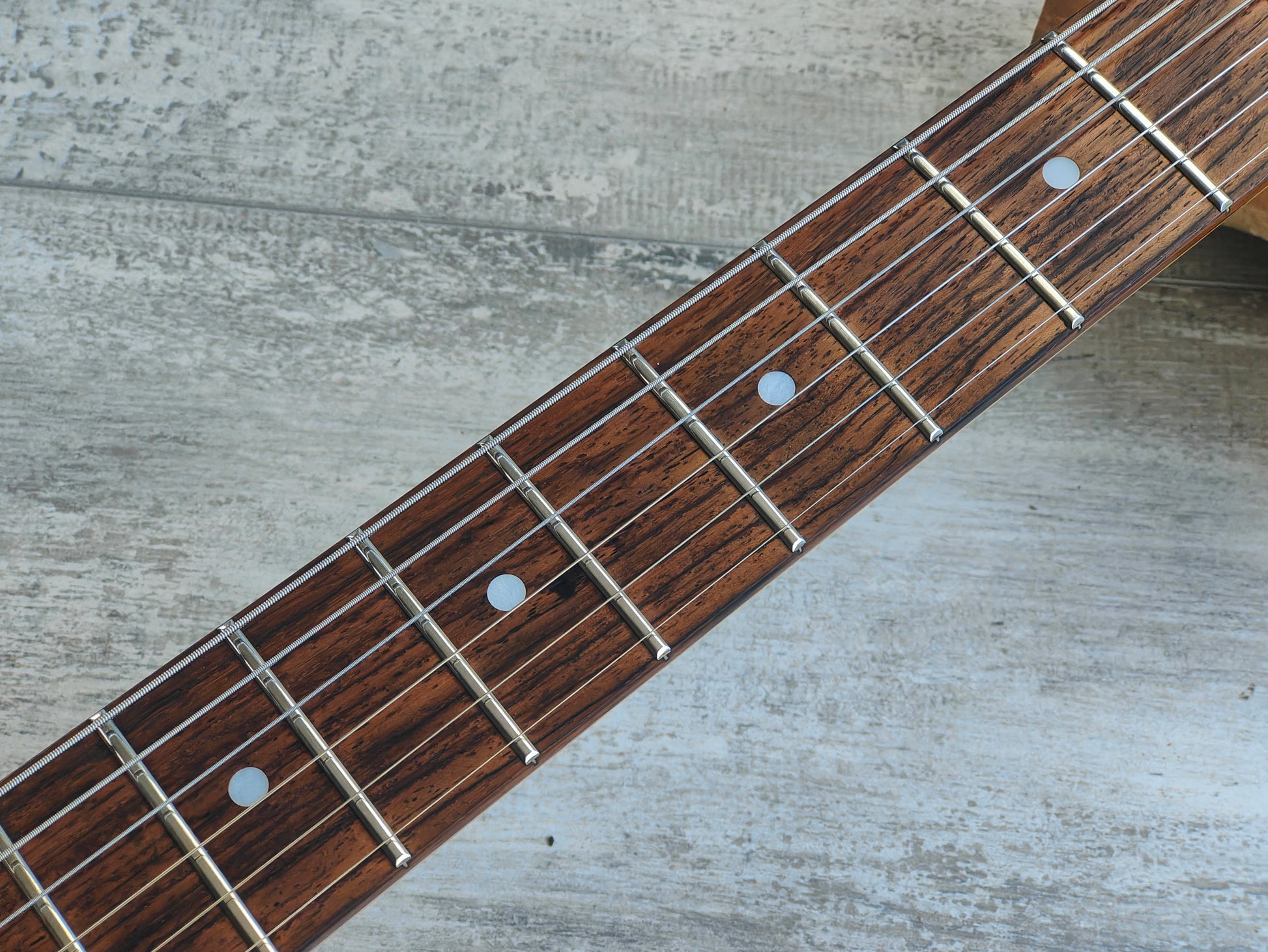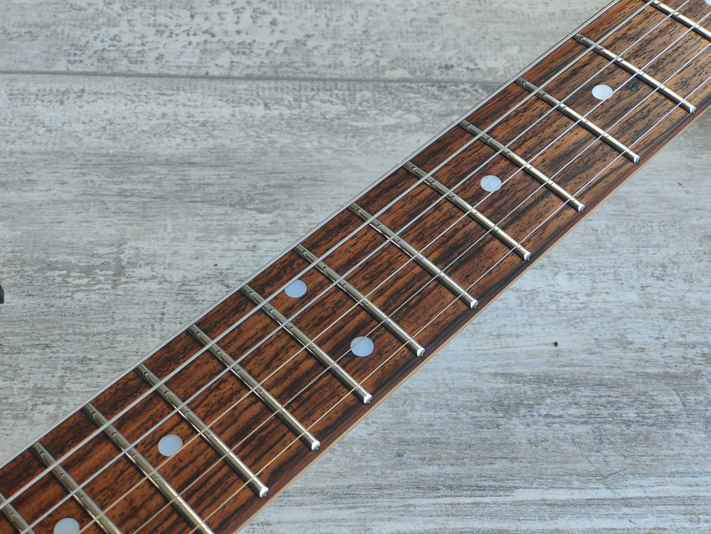 Made in 2014 from a solid body bolted to a Queensland maple neck with rosewood fingerboard (43mm nut width, 648mm scale), it weighs 3.7kg's. Appears to be all original as pictured.