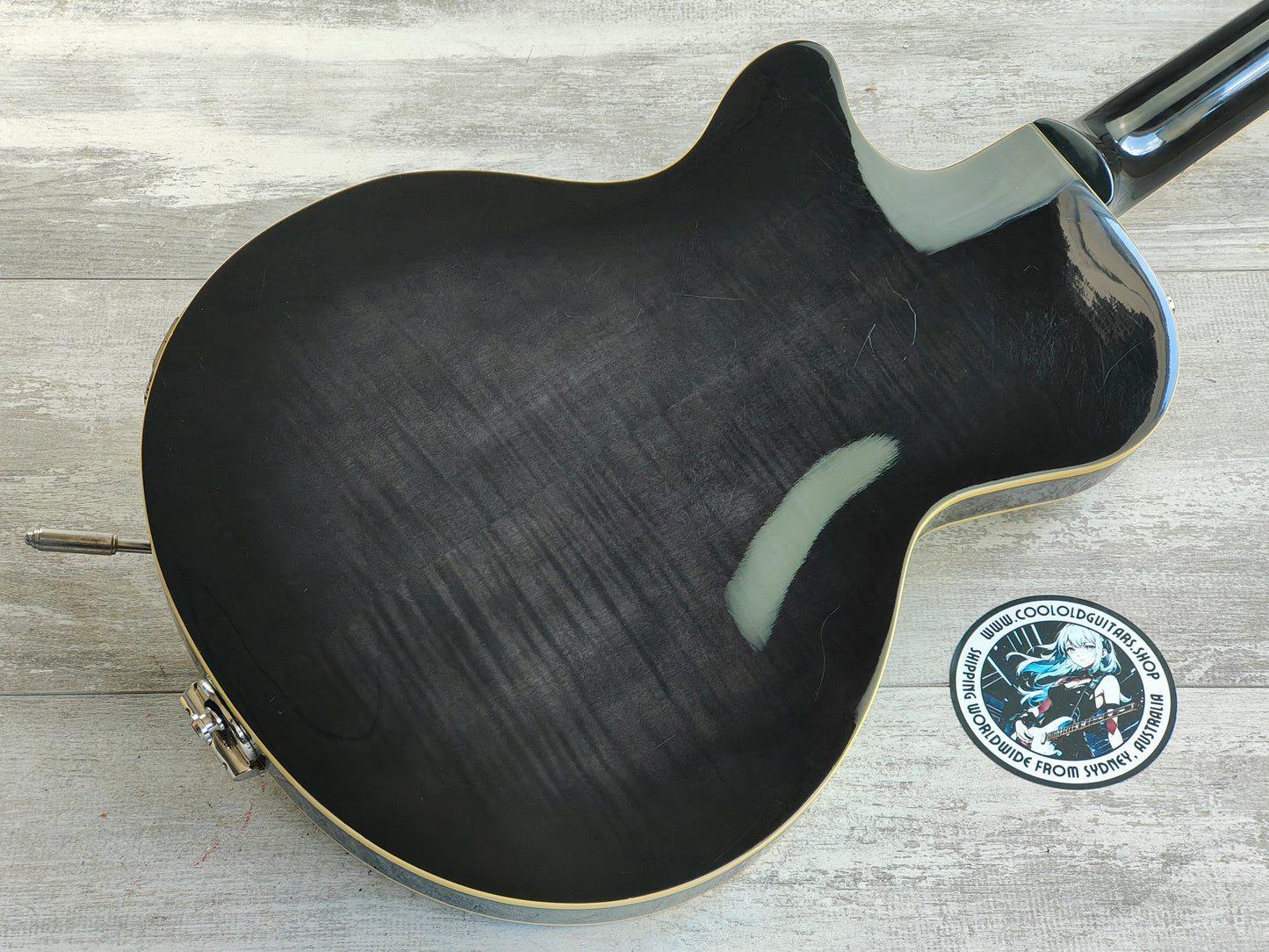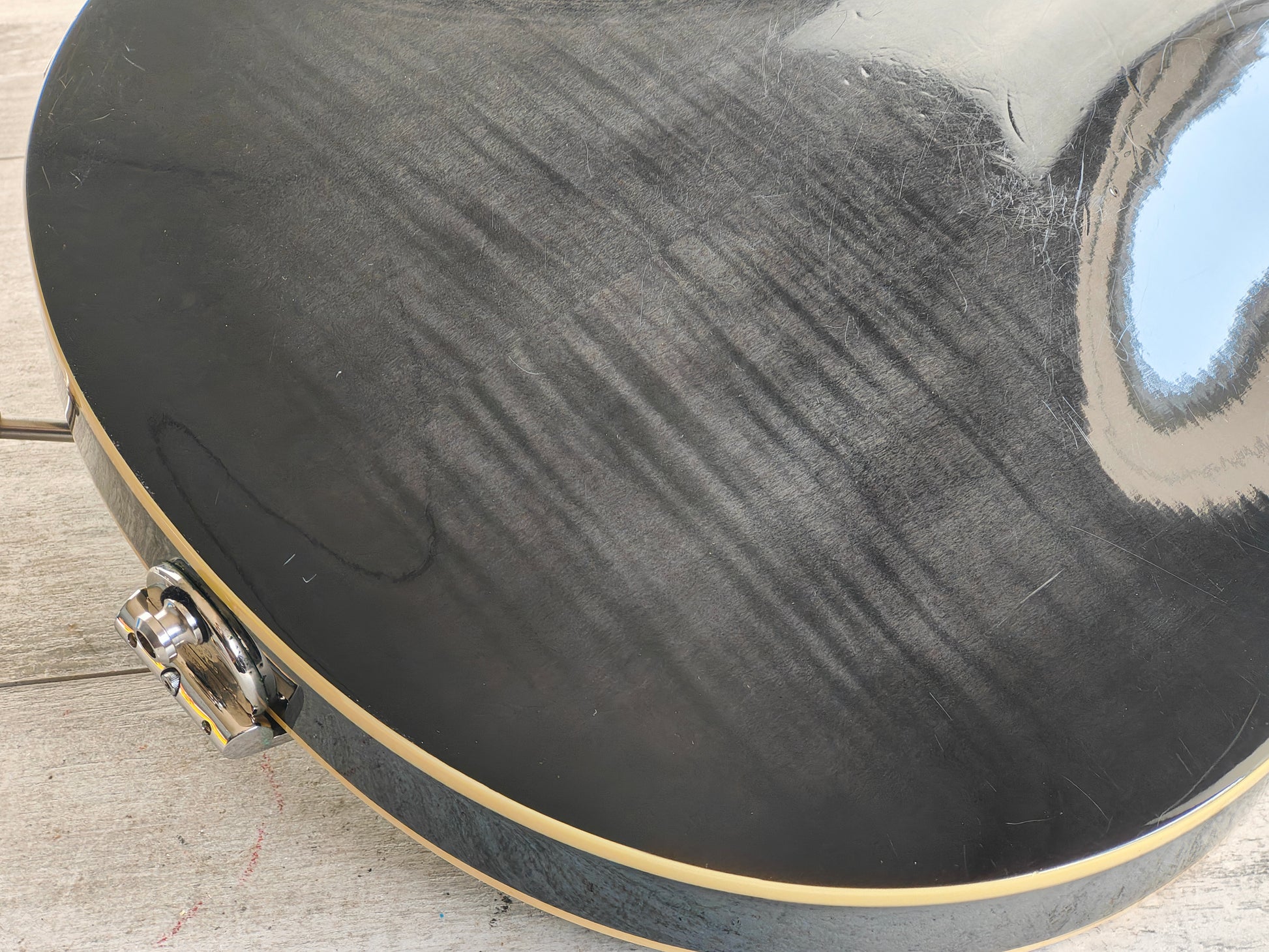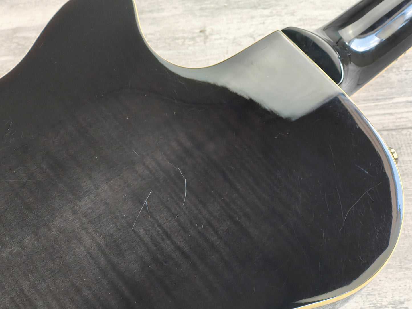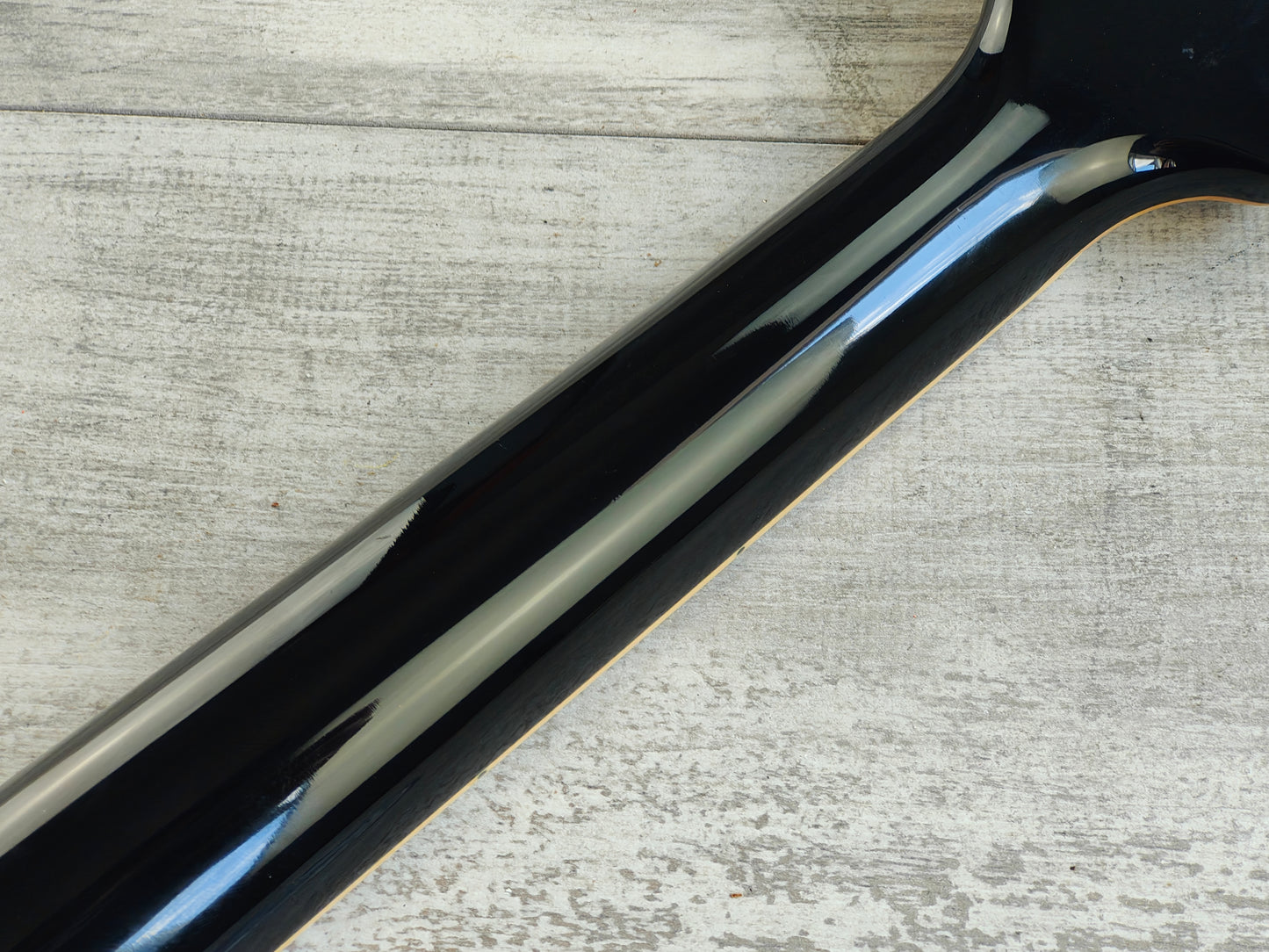 Finish: PUR lacquer (Polyester used on Sparkle, Pearl and Pearloid tops). Back and sides Trans-Black, except for special models.