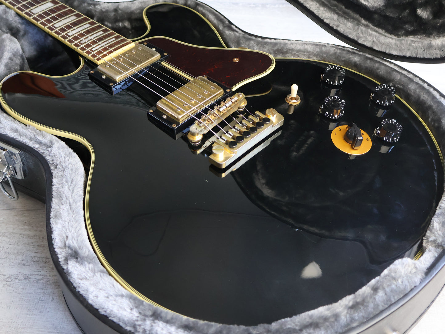 Unlike most semi-hollowbody guitars, the B.B. King Lucille’s top doesn’t have any f-holes; B.B. himself requested this feature to help further reduce the possibility of feedback. The electronics are equally impressive, with a six-position Varitone switch, a pair of Alnico Classic PRO™ humbucking pickups wired to CTS® potentiometers, and stereo and mono output jacks for maximum flexibility.