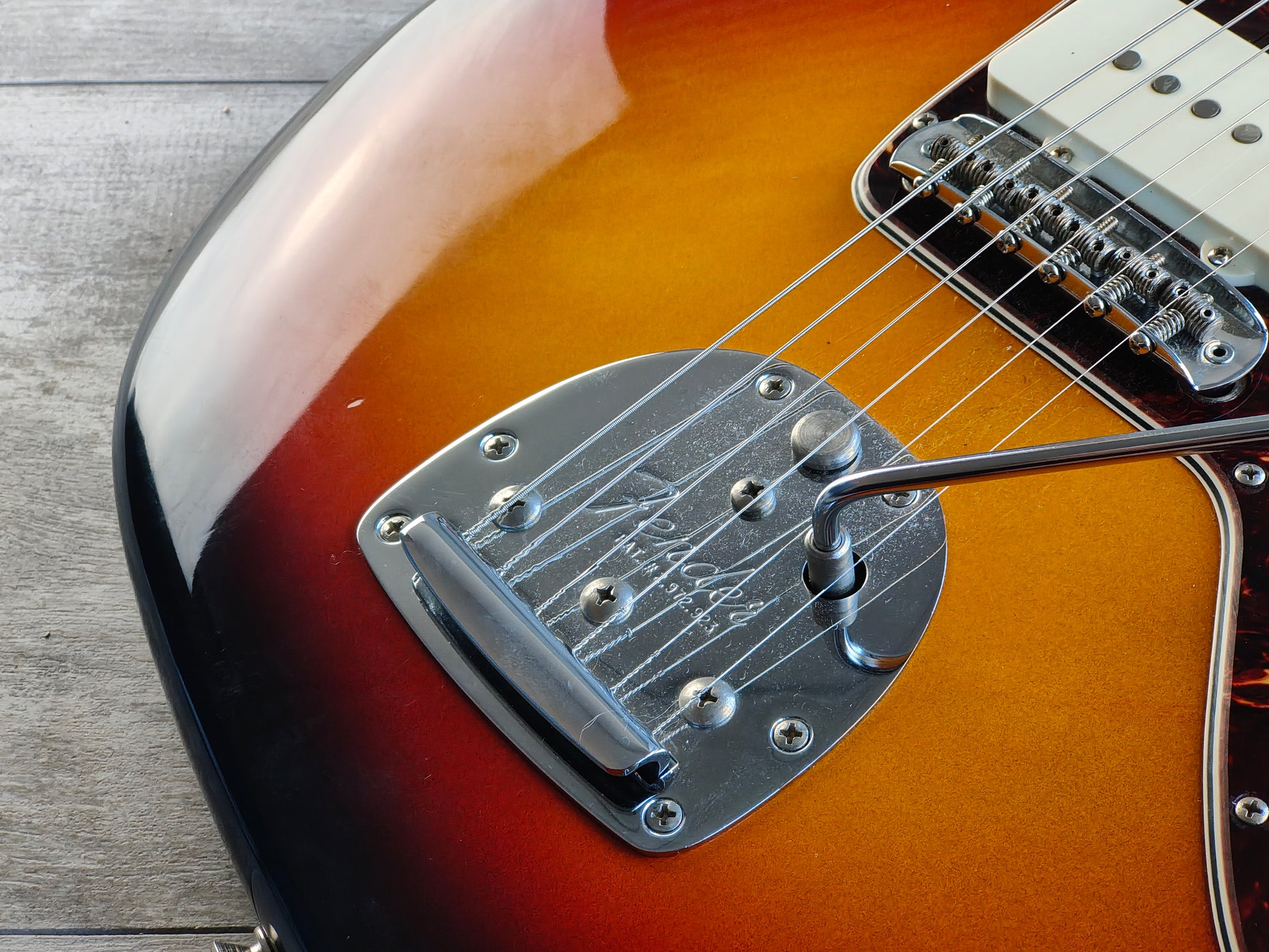 With Fender's American Vintage '65 Jazzmaster, there's genius in the details. This beloved guitar's beauty, tone, and playability are no accident. It starts with the lightweight alder body, the classic 4-ply shell pickguard, and a thin Fender Flash Coat nitrocellulose lacquer finish. Then, there's the highly playable C-profile maple neck with its round-laminated rosewood fingerboard and 21 vintage-style frets, unique sounding single-coil pickups, floating tremolo with lock button, intricate switching system, and more. If you're a fan of '60s Jazzmasters, the Fender American Vintage '65 Jazzmaster is one drool-worthy axe.
