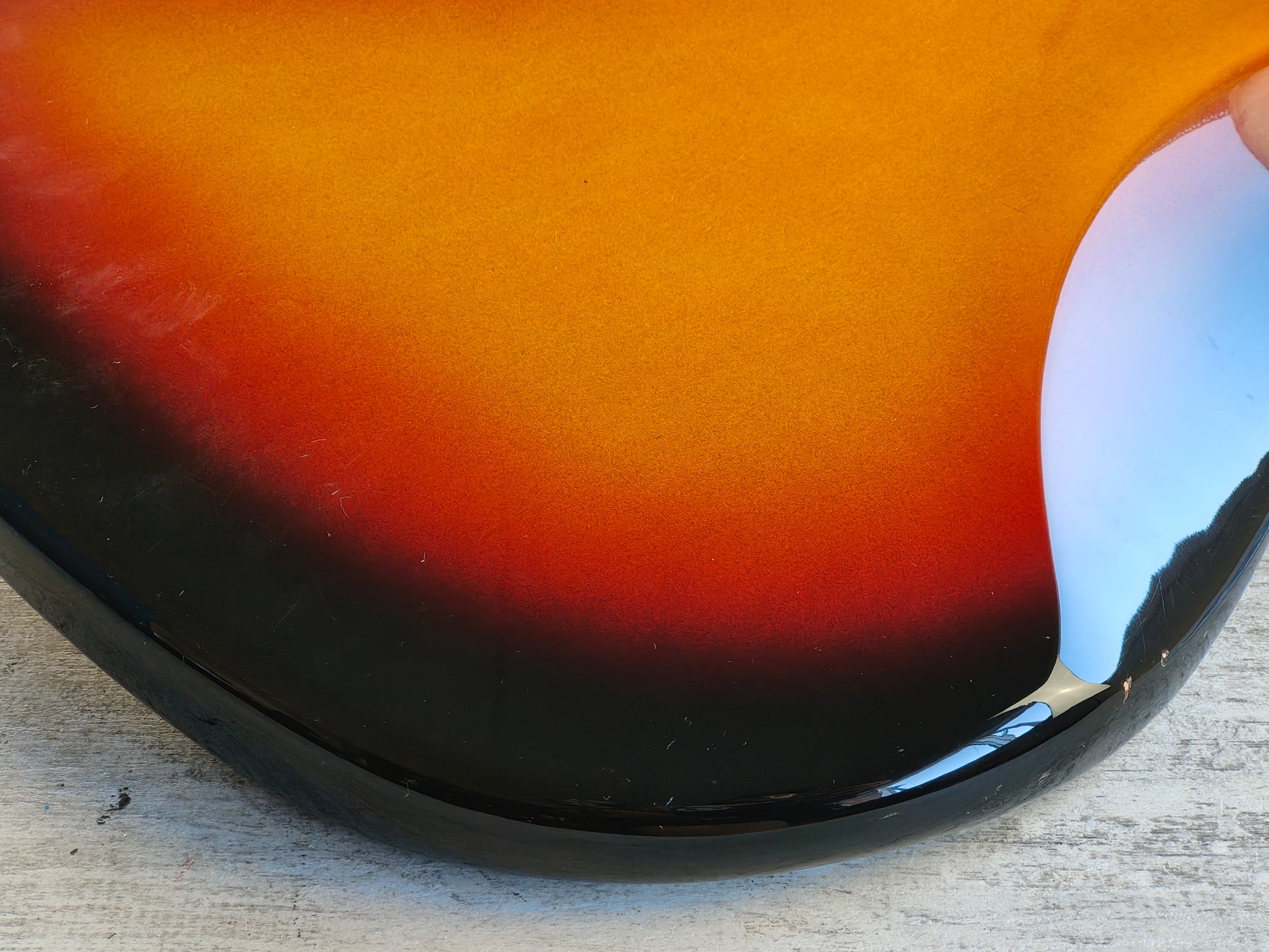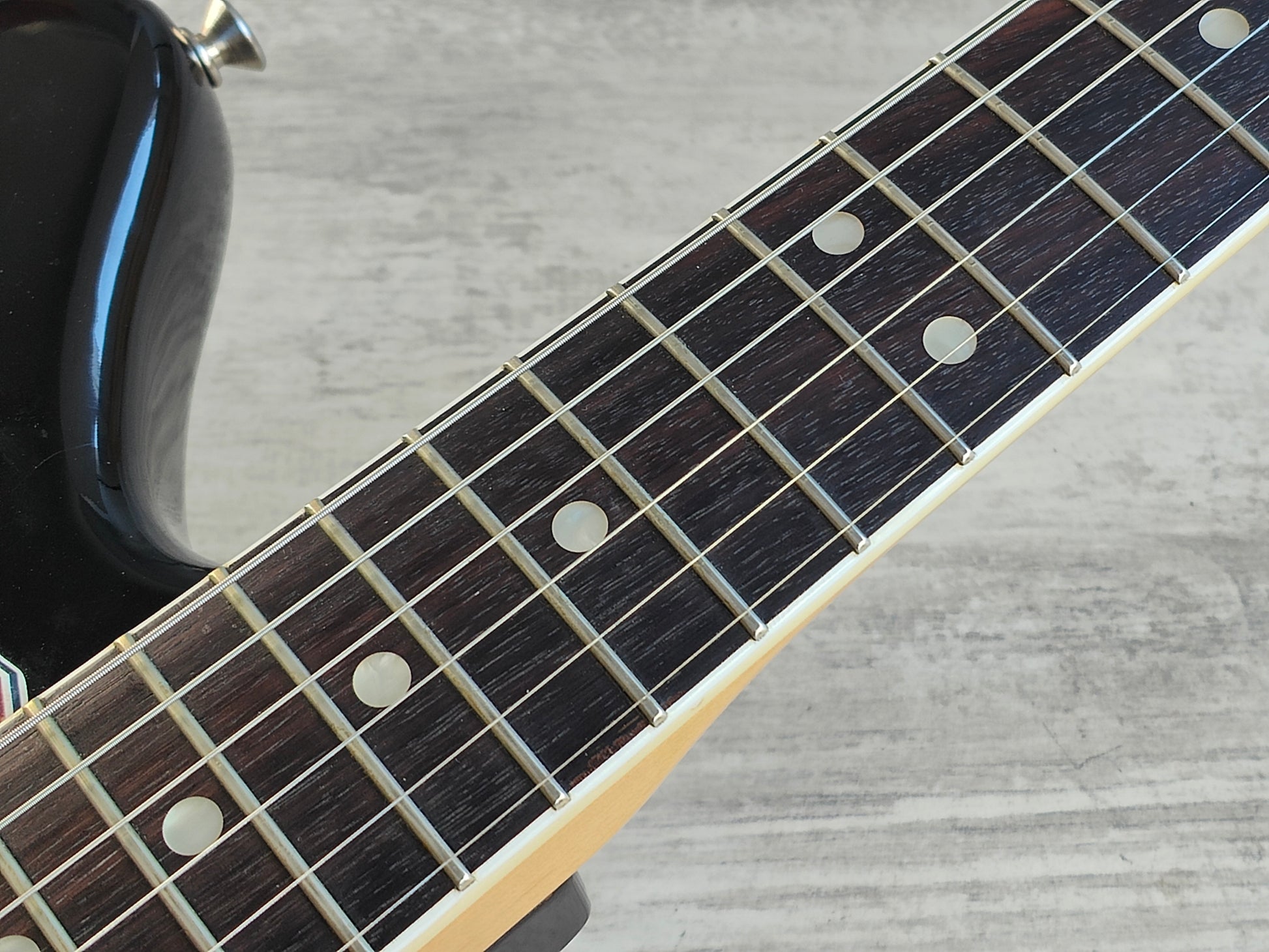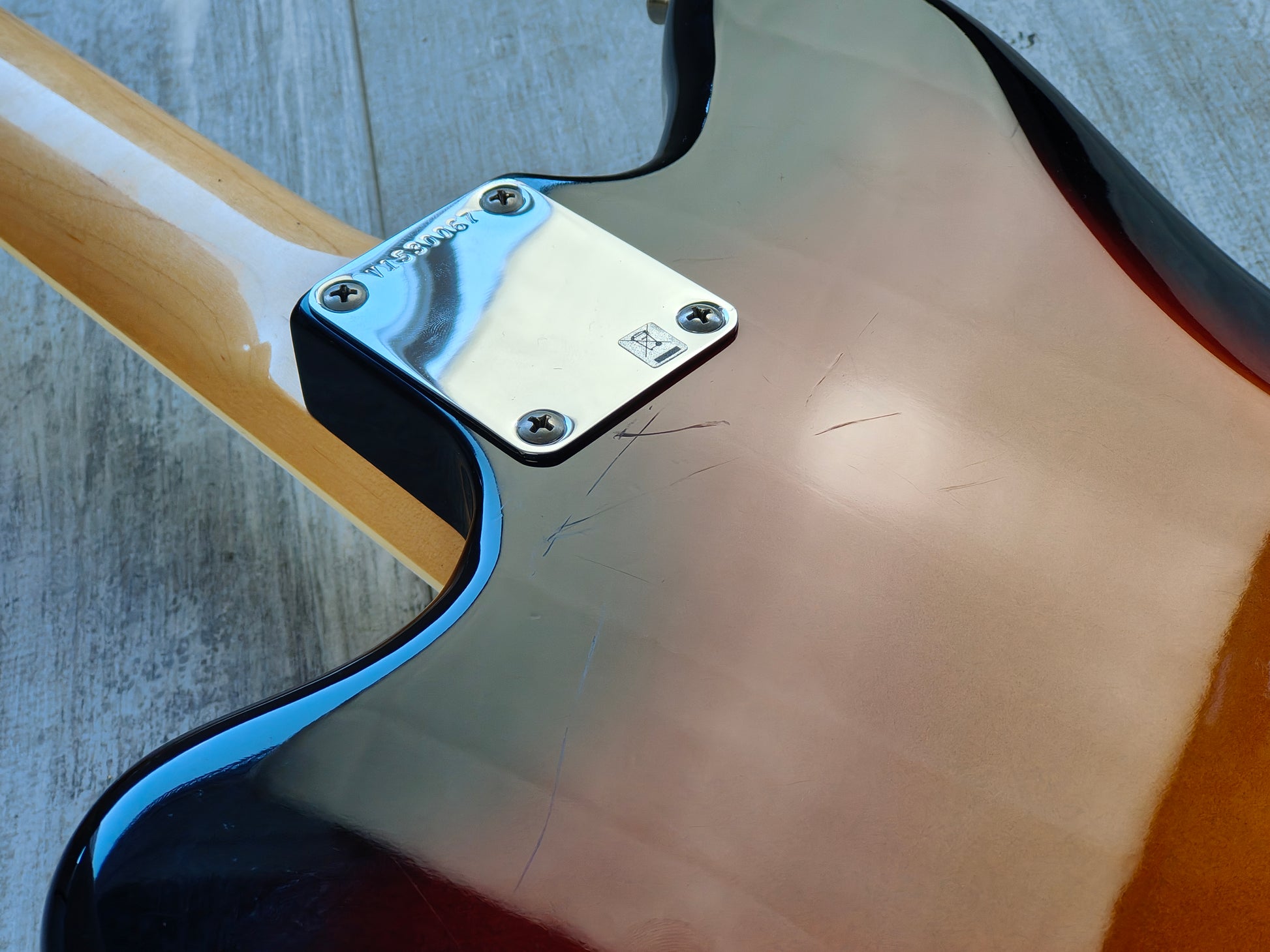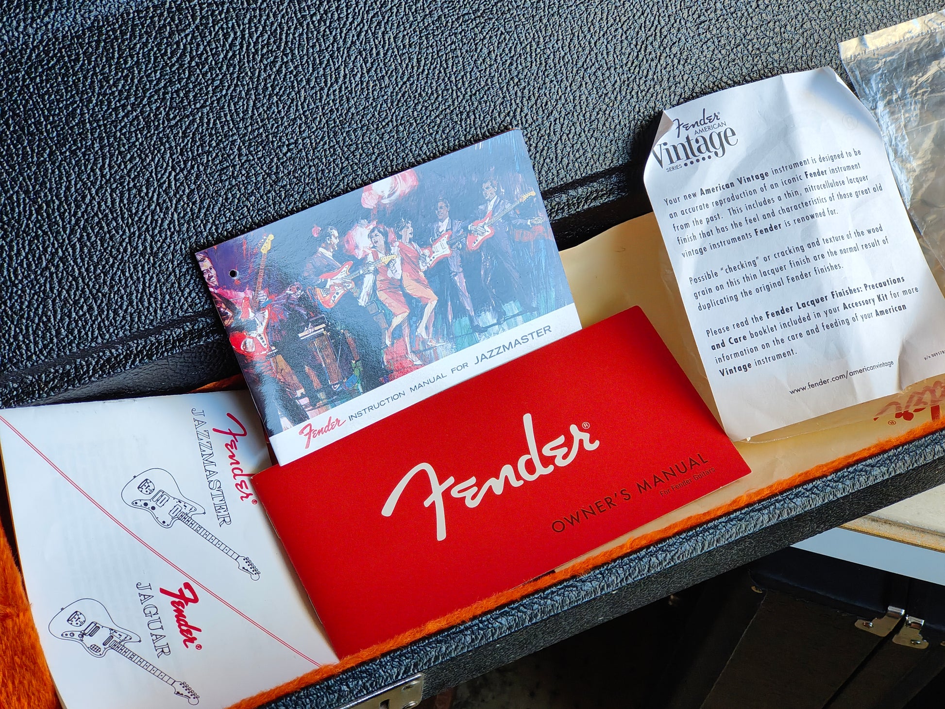 A beautiful '65 Reissue American Vintage Series Jazzmaster made in the USA by Fender in 2015 (and since discontinued). Lightly used condition as pictured with some slight nitro checking on the body and a few small dings here and there. The frets are shiny and the neck is straight with a full functional truss rod. Includes the original hard case and paperwork. Weighs 3.7kg's.