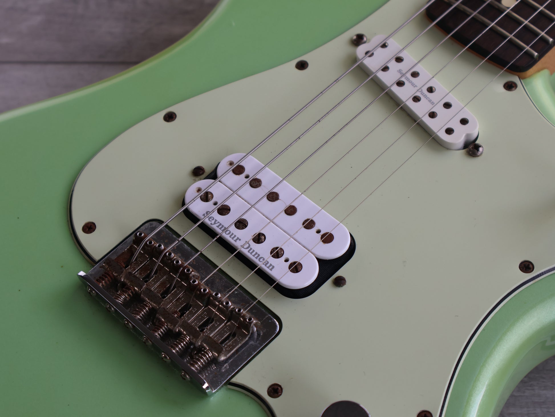 Traded in at our Gladesville store, good overall condition as pictured with an upgraded Seymour Duncan JB/Lil 59 set. Weighs 3.4kg's and wears the discontinued "Surf Pearl" finish on the body.