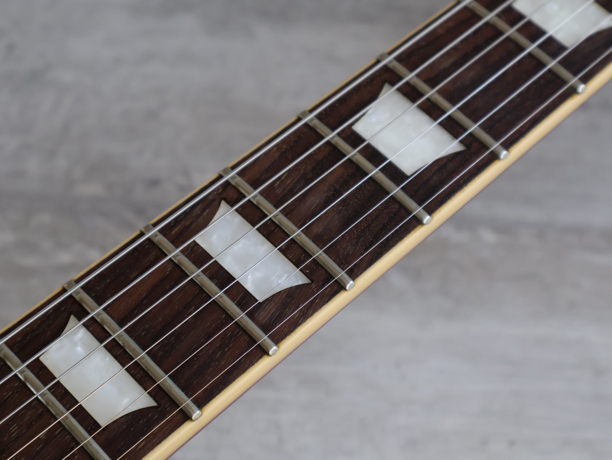 Made in Japan in 2018, the E-LPS is the current Les Paul Standard from Edwards (although they may be discontinued shortly). Flame maple top with a mahogany back, Pau Ferro fingerboard with a 12" radius and 43mm nut width, weighs 3.7kg's. Gotoh tuners and hardware, loaded with the Edwards EH-1G humbuckers (modelled after the Seymour Duncan's they used for 20+ years).