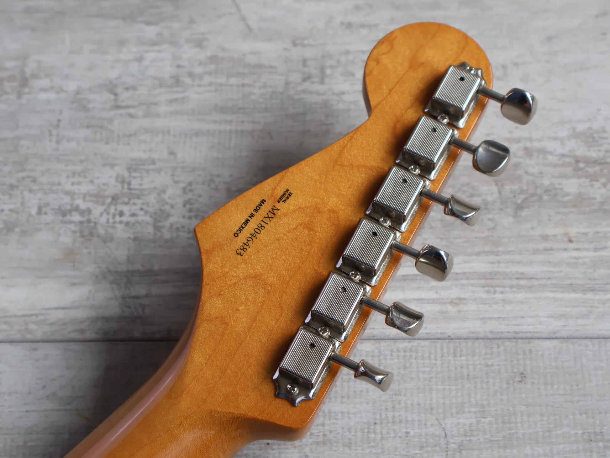 Looks to be a 2018 Fender Classic Player series neck (with a nice soft V profile) on a Fender USA body from 2005 (with a satin lacquer sunburst finish). Plays great and is in nice overall condition, weighs 3.6kg's. Loaded with a Seymour Duncan neck pickup and two unbranded middle and bridge pickups.