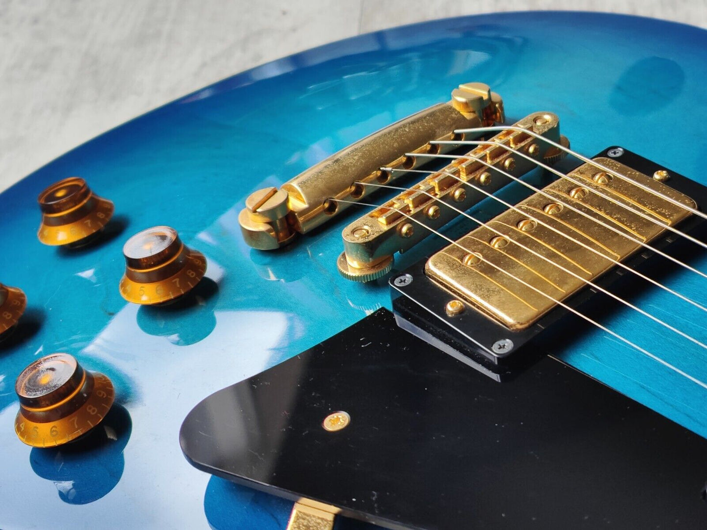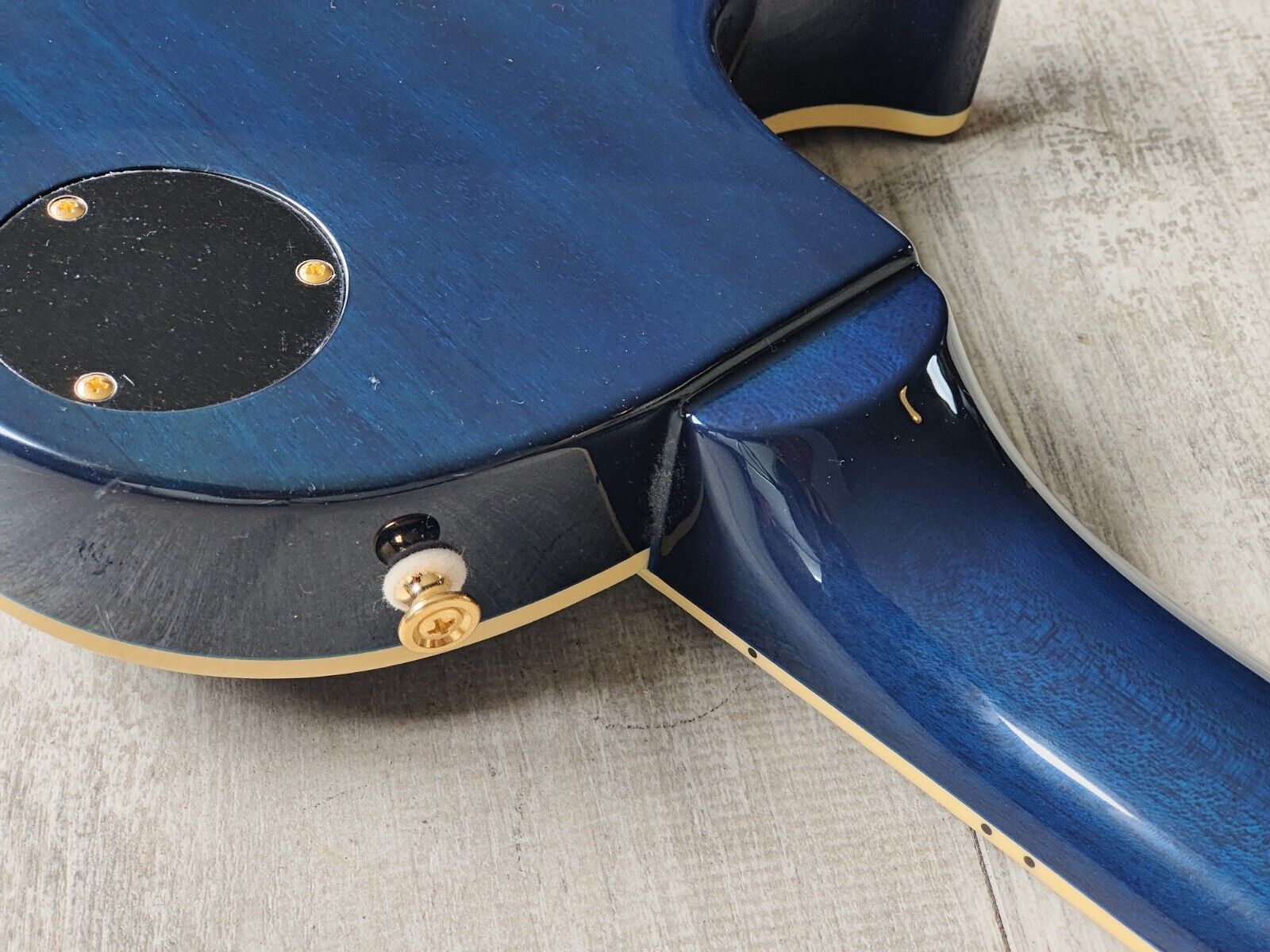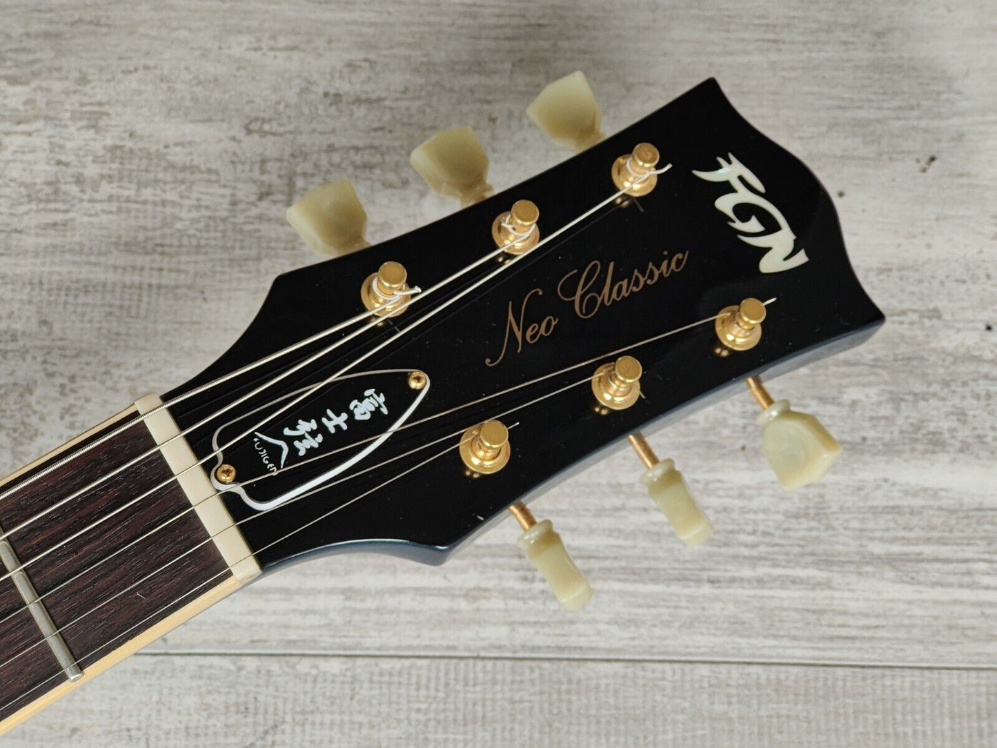 FGN guitars are the in-house models sold to the public by the Fujigen factory. These are high quality builds that show what the factory is capable of when they don't have to comply with the limitations of building for other brands and have the freedom to build the best guitars that they can. The Neo Classic NLS series are modernised versions of the classic LP design. Weighing in at a hefty 4.4kg's, it looks stunning in a beautiful blue-burst plaintop finish. Near new condition with only light signs of wear.