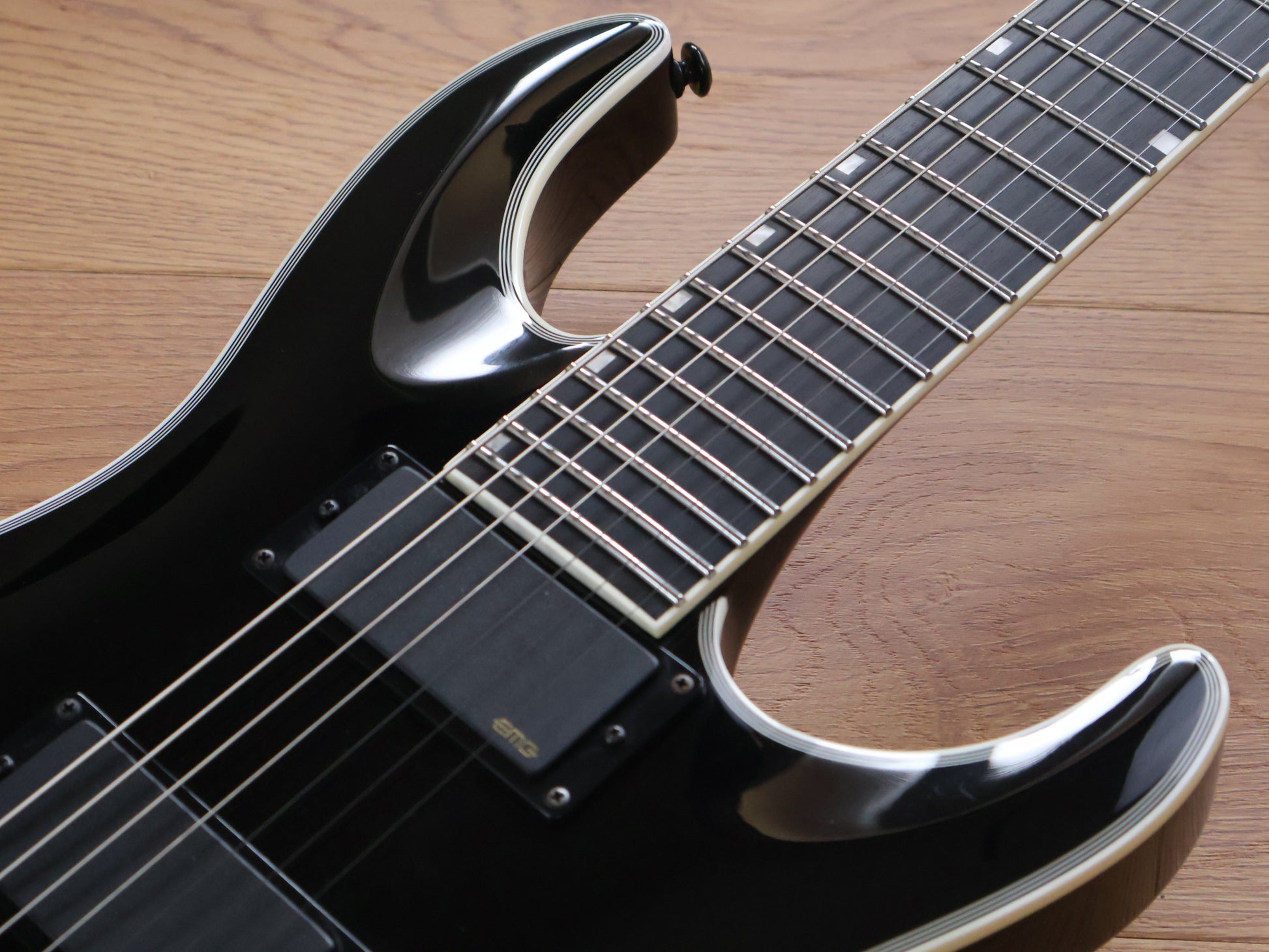 If you're looking for a serious 7-string guitar, you've found it. As part of the LTD Deluxe Series designed for professional musicians, the LTD MH-1007 EverTune offers a slew of amazing features that you won't find on other guitars. It offers set-thru construction, meaning the neck extends deeply into the guitar's body cavity, offering unparalleled access to the upper frets with a smooth heel joint. It has a mahogany body with a maple cap, along with a three-piece extra thin U-shaped maple neck, and an ebony fingerboard with 24 extra-jumbo frets. High-class touches are included, like its multiple white binding and Grover tuners. But the MH-1007 takes things a step further with the inclusion of active EMG 85-7H (neck) and EMG 81-7H (bridge) pickup for tones that range from dark and menacing through screaming and aggressive. Finally, the EverTune constant tension bridge ensures that almost any conditions, your guitar will stay in perfect tune, and have incredibly accurate intonation at every point on the fingerboard. Available in Black finish.