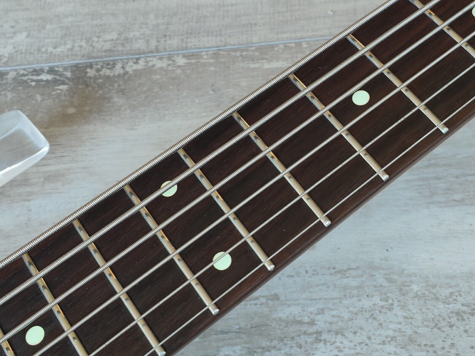Received a restring and basic service prior to listing, fretboard was oiled and the frets were polished along with a truss adjustment. Has a battery compartment where there were LED's installed at some point if you want to re-visit that..