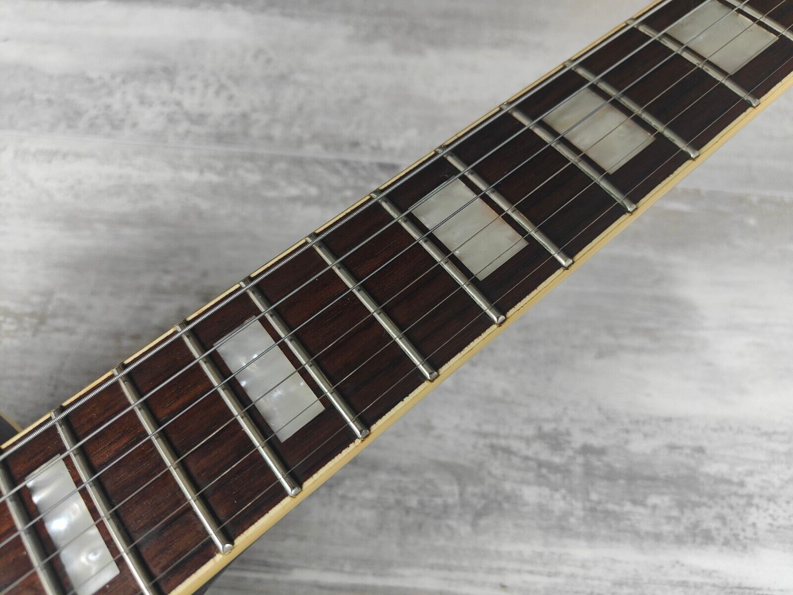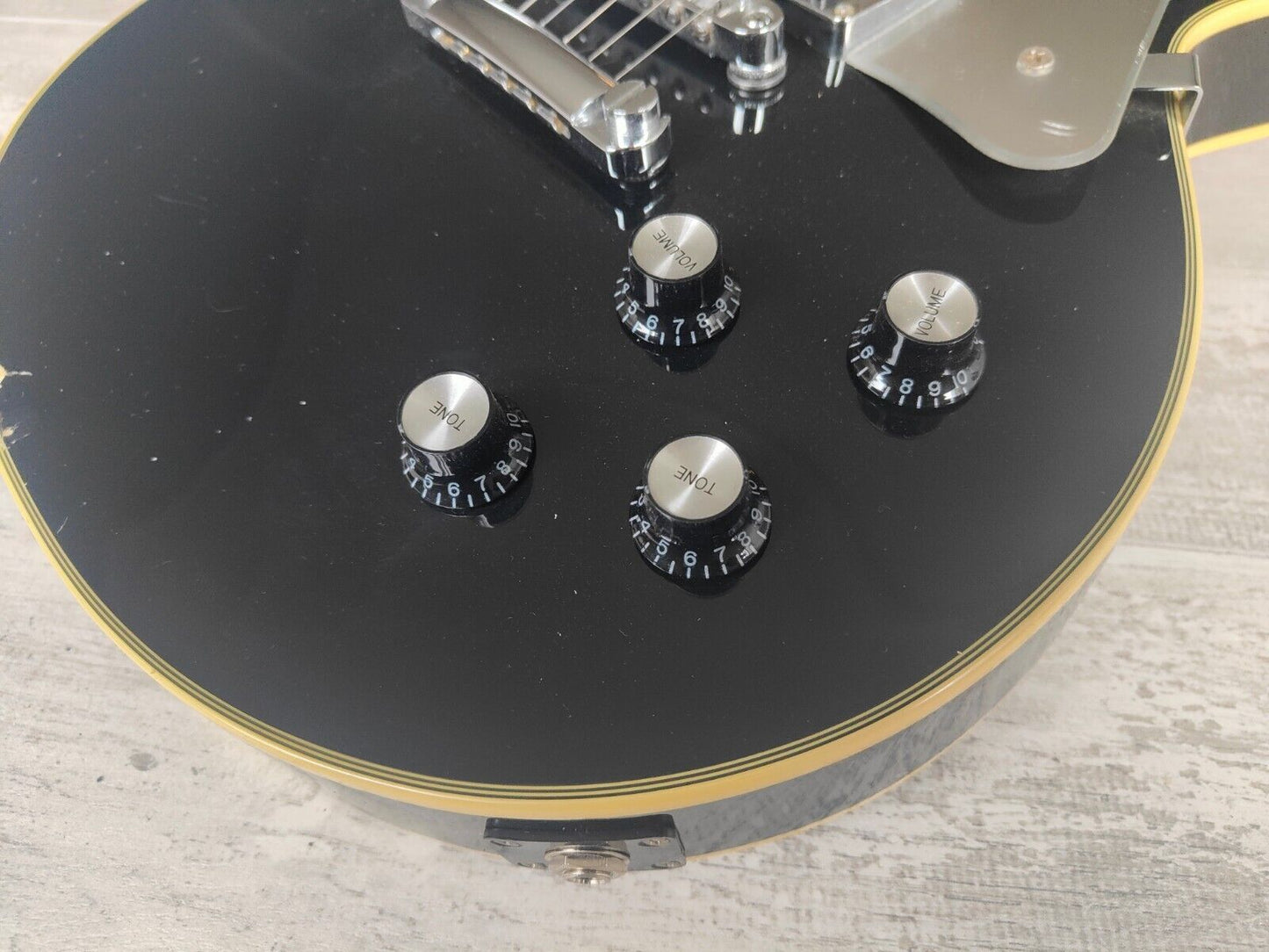 Made in Korea and sold primarily within Japan, these were an affordable release from Aria Pro II. Weighs 3.8kg's and appears to be all original as pictured, slim 60's style neck is comfortable and smooth. Modified with black pickup covers (passive humbuckers) and a Sykes style pickguard.